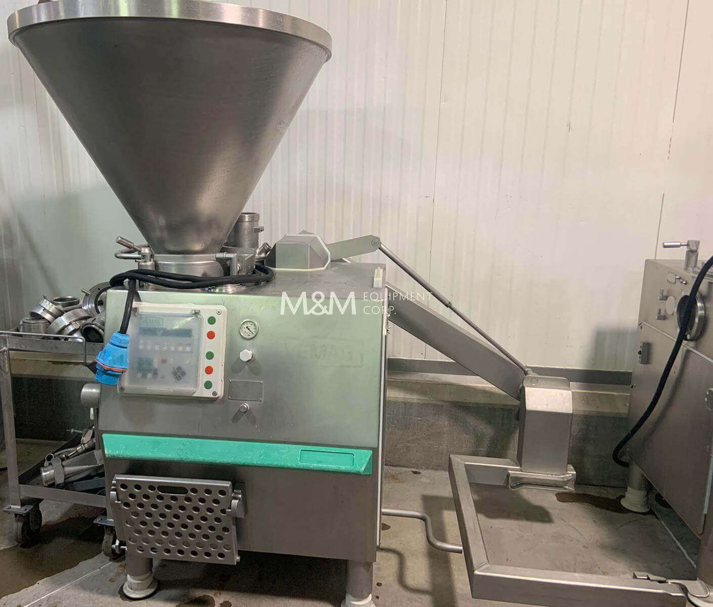 Refurbished Handtmann VF 608 Plus Continuous Vacuum Stuffer. 10″ digital color screen display. 100 liter split hopper. 5 to 100,000 G filling range. Fill volume up to 2000 kg/hour. Includes Twist link drive, Gear Box, HV 414 Holding Device, straight and Link stuffing horns, machine can be set for 220V/440V/480V/575V3PH/60HZ.