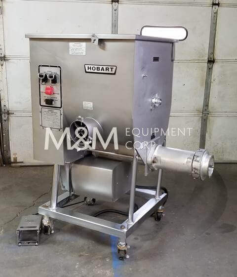 Refurbished HOBART MG2032 Mixer Grinder. 200 Lbs. Capacity hopper, 8.5 HP total Grind Motors. Grind rate of 55 to 60 Lbs./minute. The inclined hopper permits lower, easier loading while the tilted worm provides a convenient output height. 208V/3ph/60hz, 30 Amps.