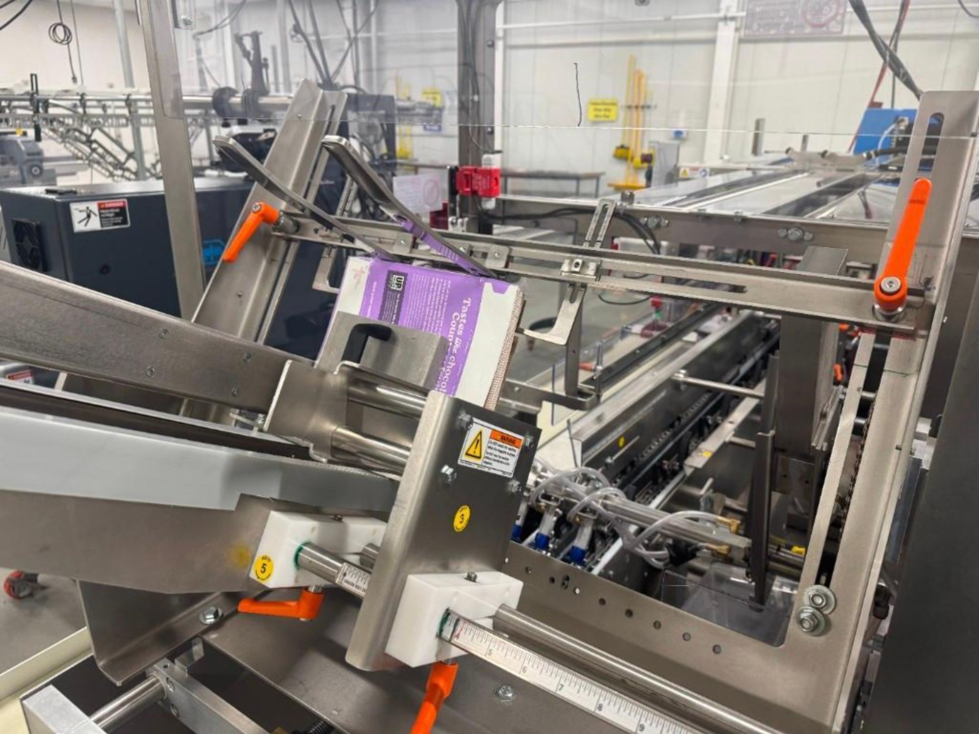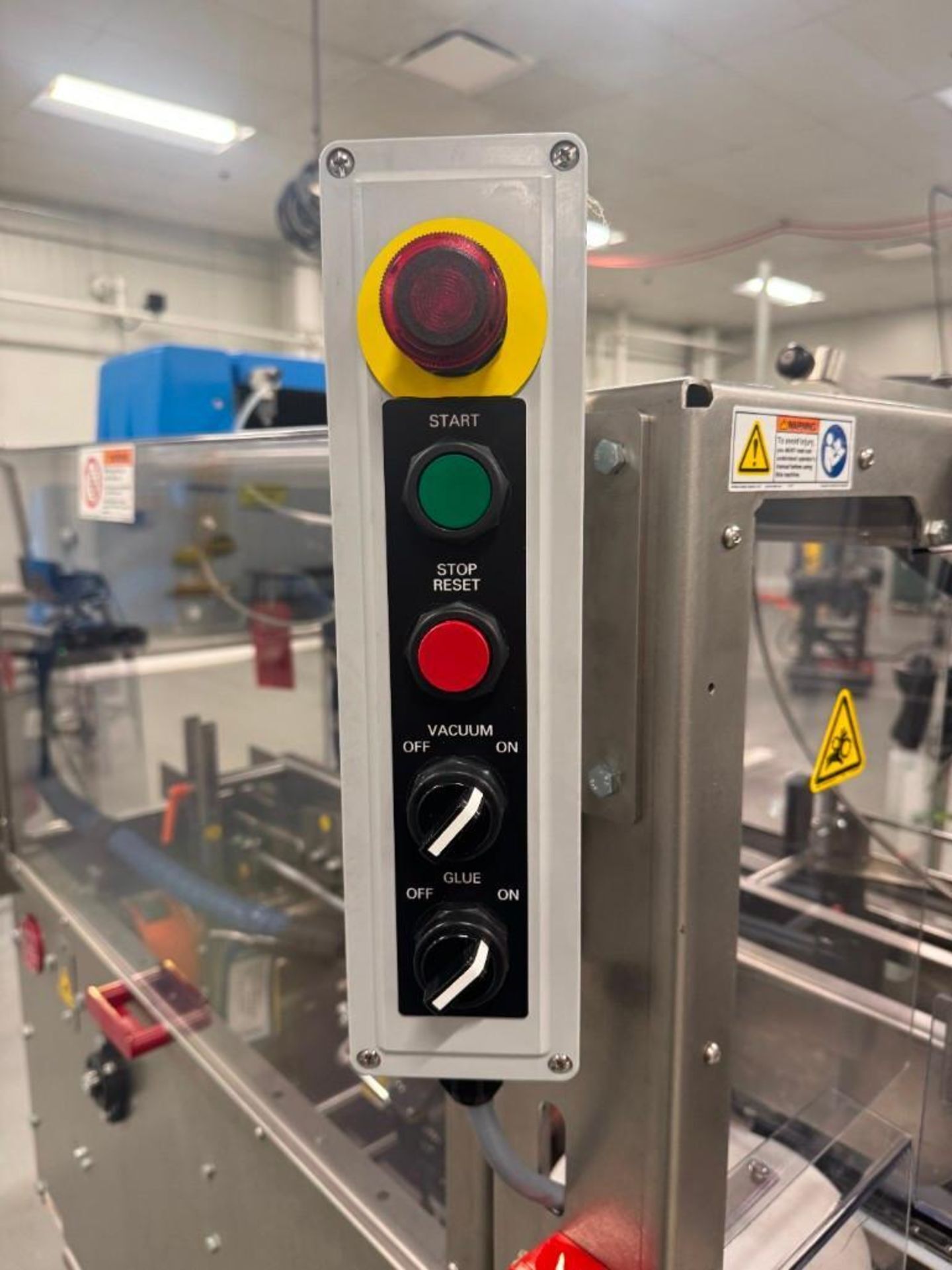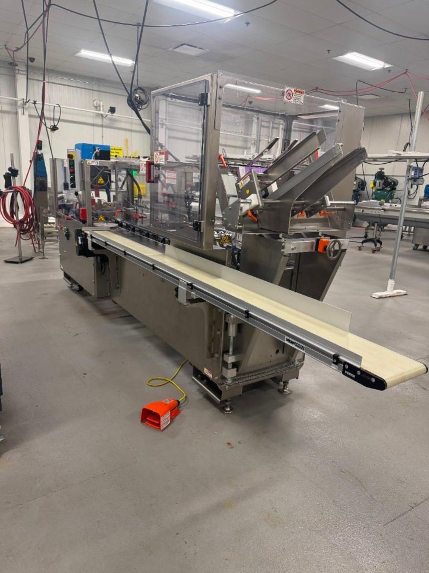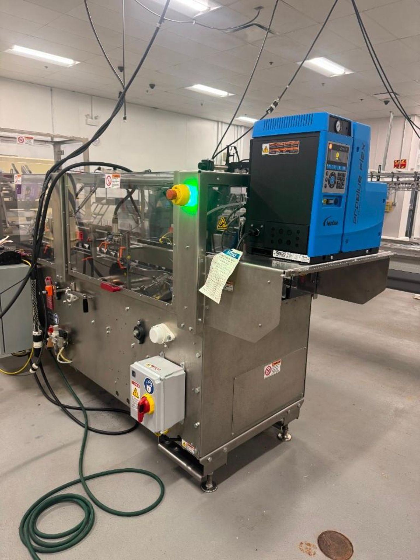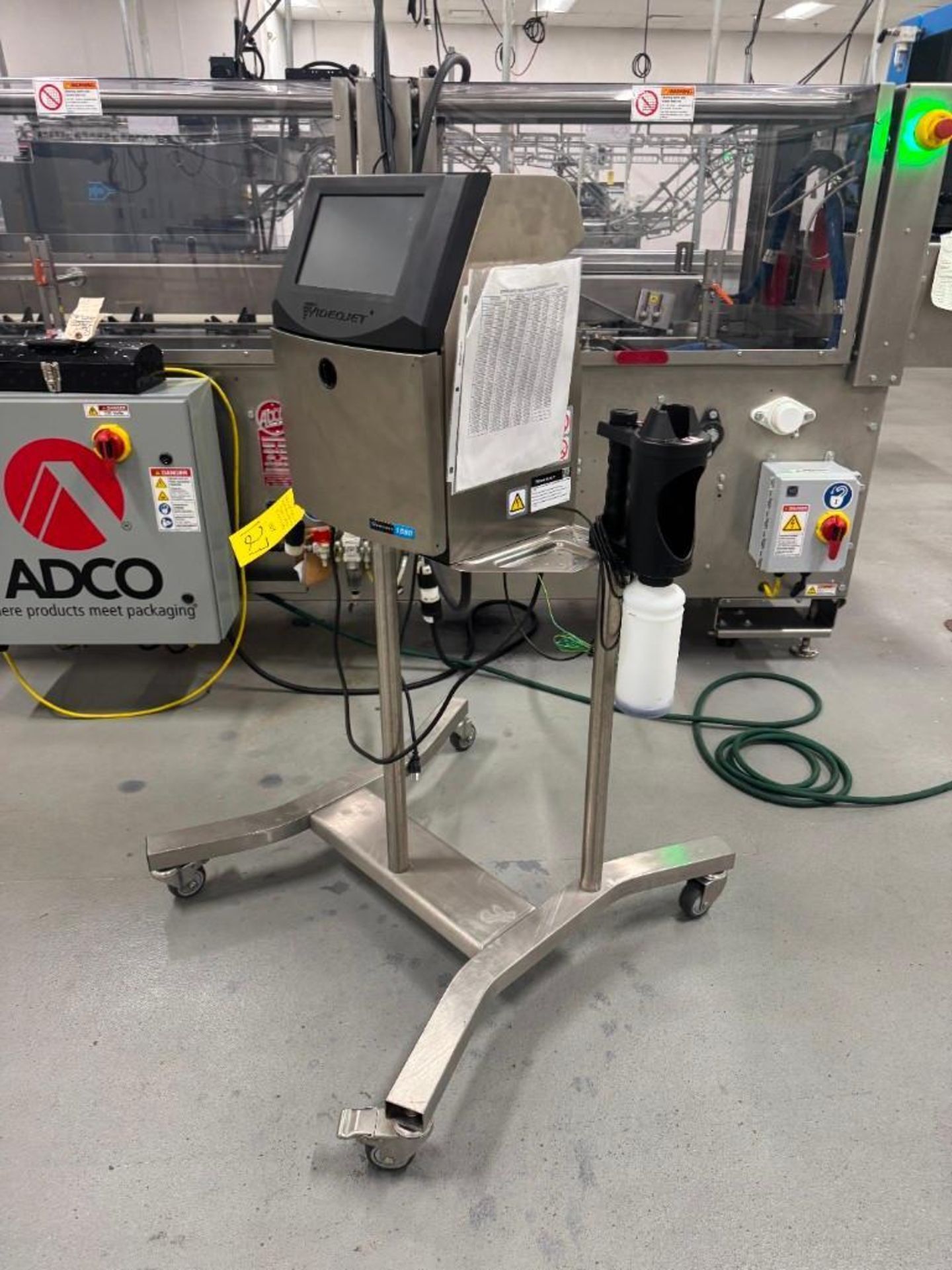 Adco 15DZ-SS Cartoner with VideoJet Ink Printer, Single-head rotary carton feeder, Nordson ProBlue FLEX hot melt glue system, Year: 2023, Simple relay logic controls, Stainless steel construction, Compact frame with leveling feet and casters, 230V/3Ph/60Hz.