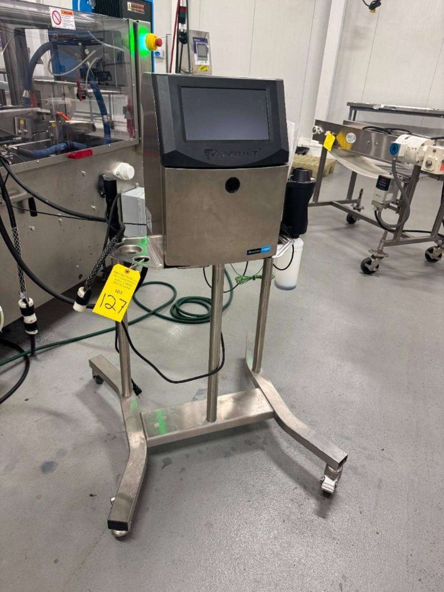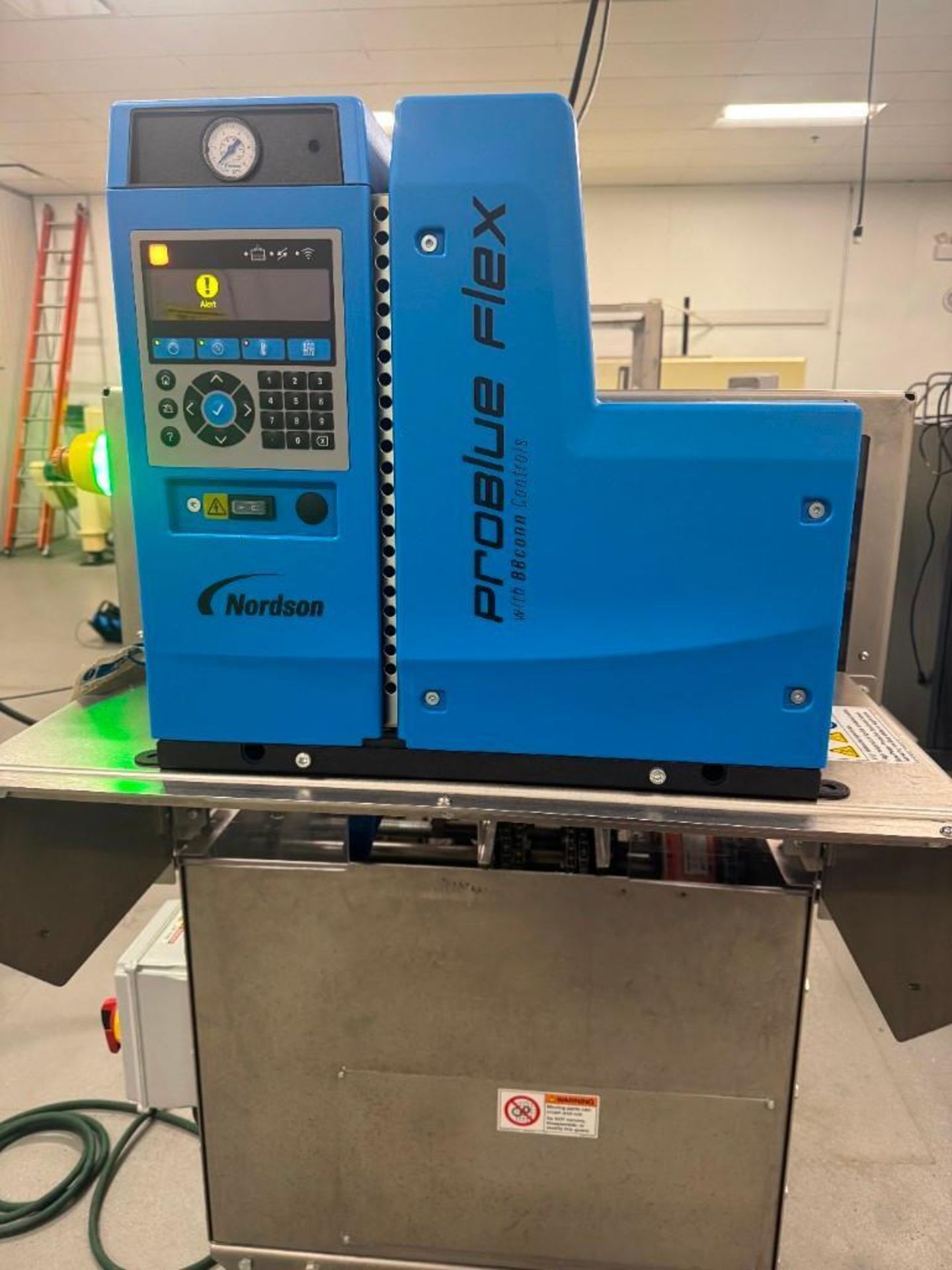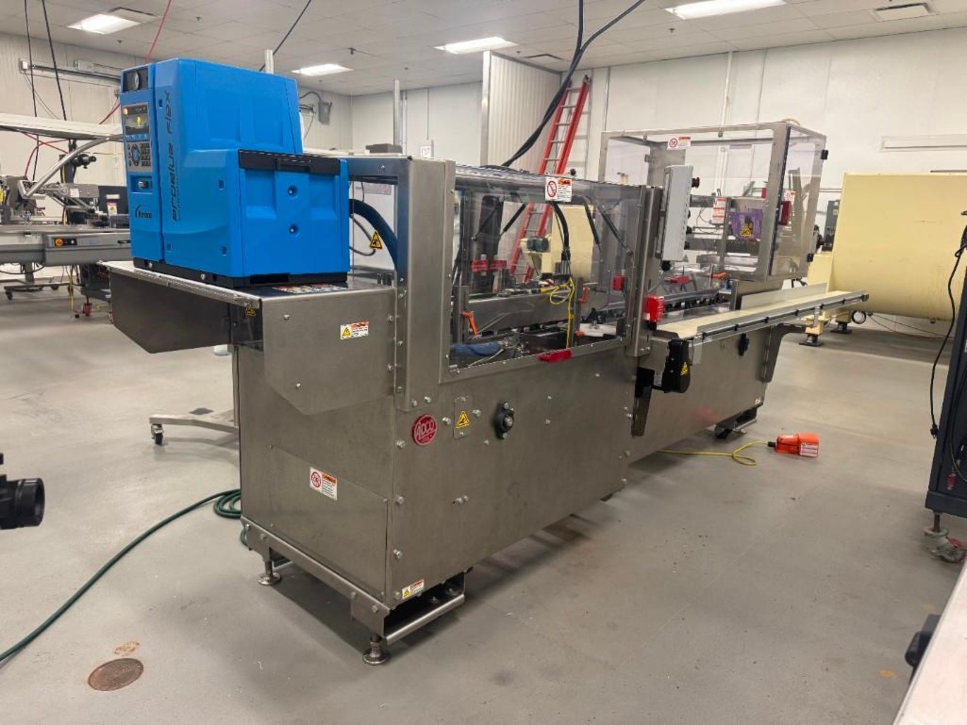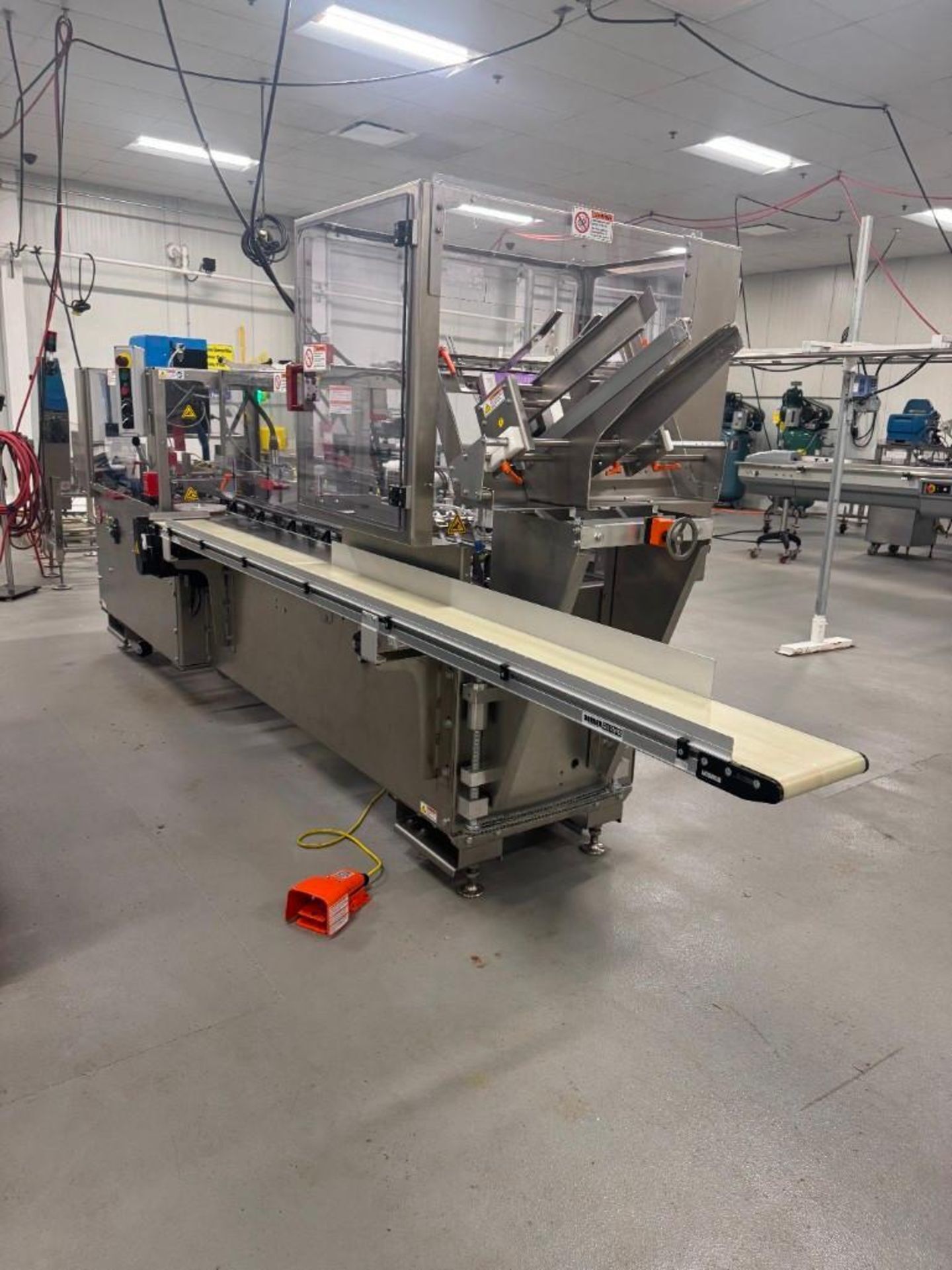 Adco 15DZ-SS Cartoner with VideoJet Ink Printer, Single-head rotary carton feeder, Nordson ProBlue FLEX hot melt glue system, Year: 2023, Simple relay logic controls, Stainless steel construction, Compact frame with leveling feet and casters, 230V/3Ph/60Hz.