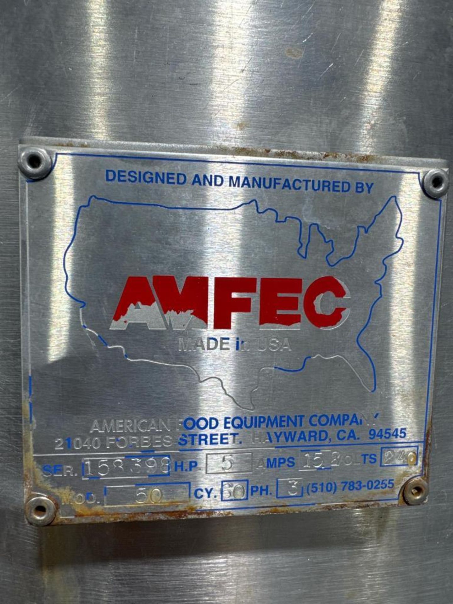 AMFEC 50 BRINE TANK. Approximately 400-gallon capacity, 5HP motor, 240V/3PH/60HZ. OD: 68″ x 48″ x 80″.
