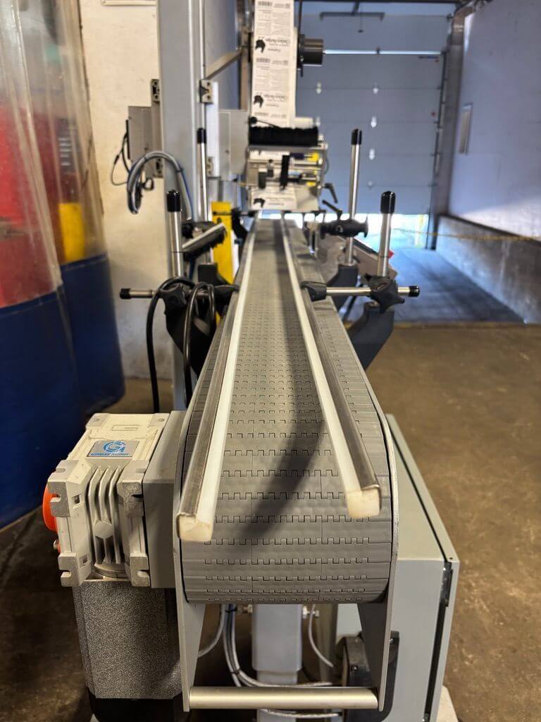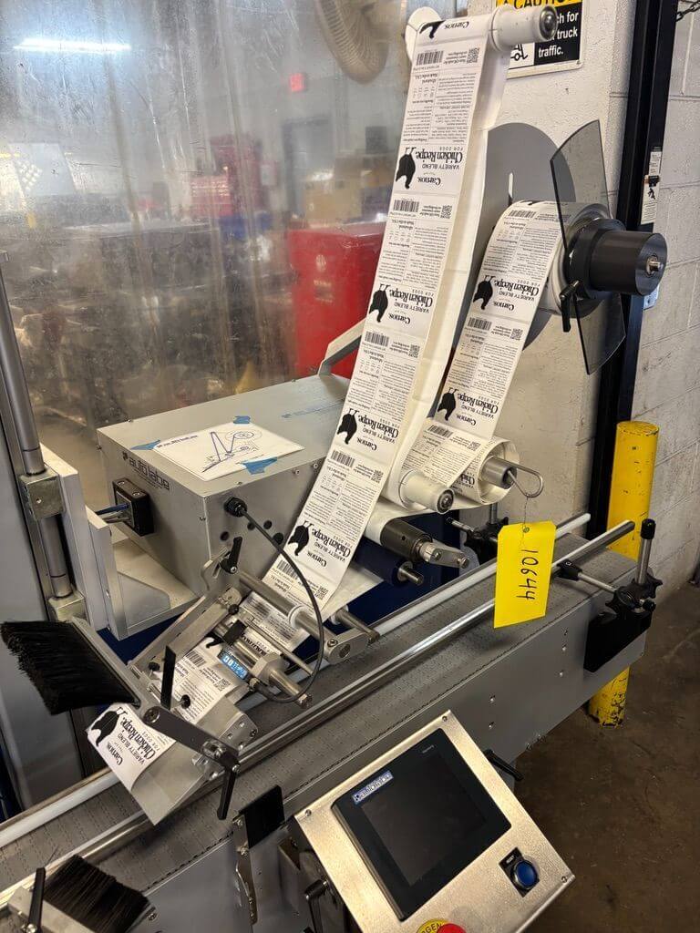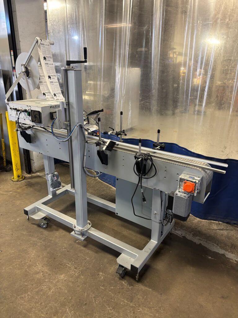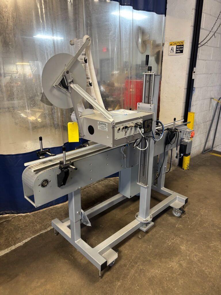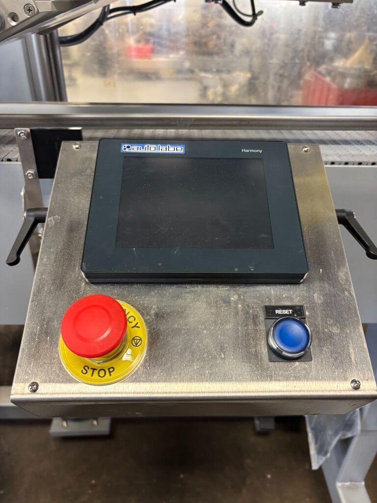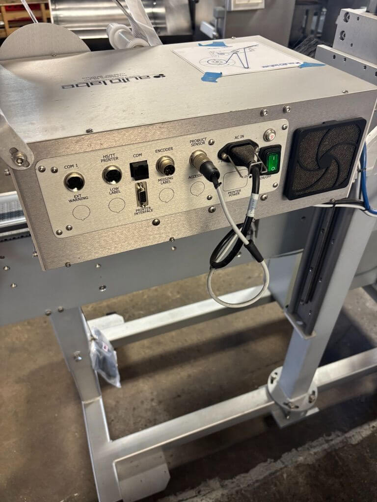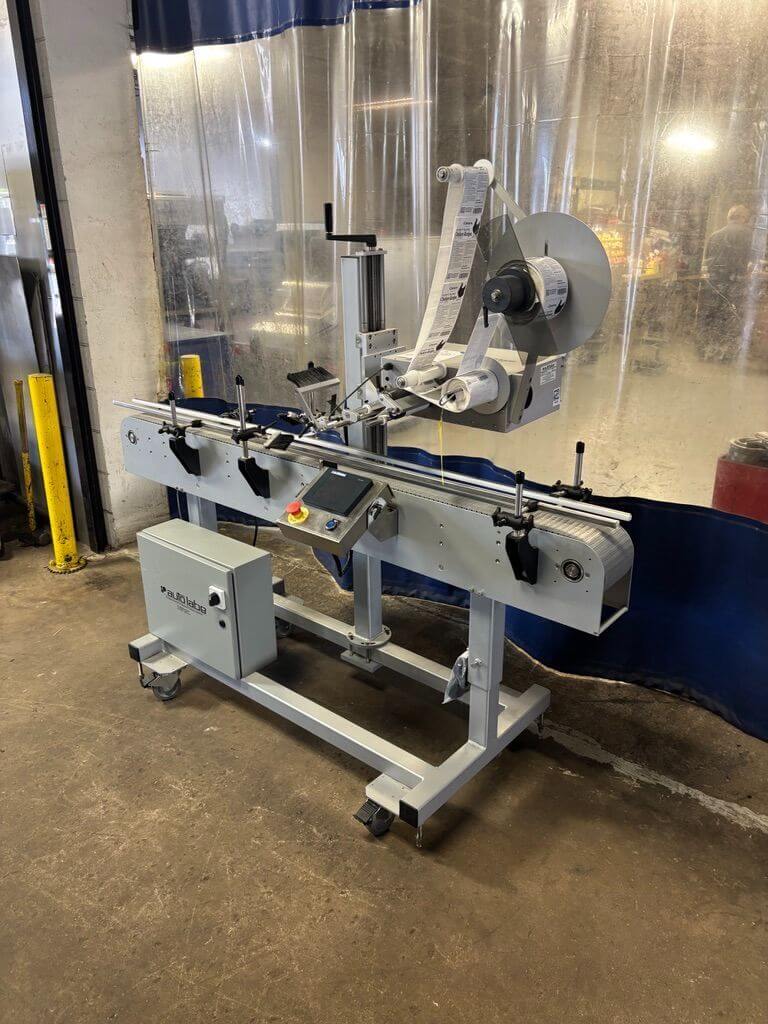 AUTO LABE 110S LH Stepper Label Applicator. Stainless steel construction, PLC Controls with SD card for upgrades, Rates to 300 ppm with +/- 1/32″ accuracy, 5.7″ HMI color touch screen with USB port, 60 programmable presets, Speed: Up to 1800″ per minute, Web Width: 6.5″, AMPS: 5, 220V/3PH/60HZ.