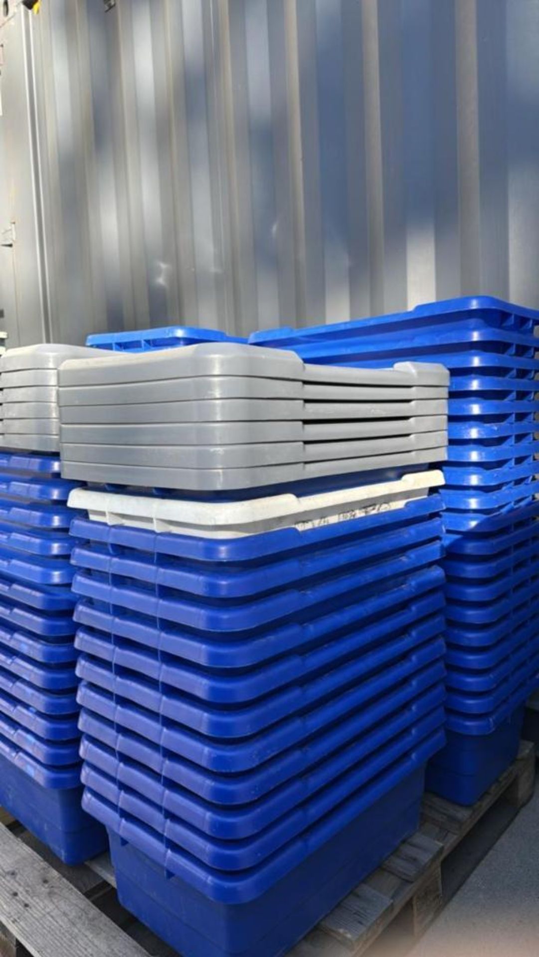 View More > Add To Quote(65) BLUE MEAT LUGS WITH (12) GRAY LIDS. The item will be available for sale in our ...