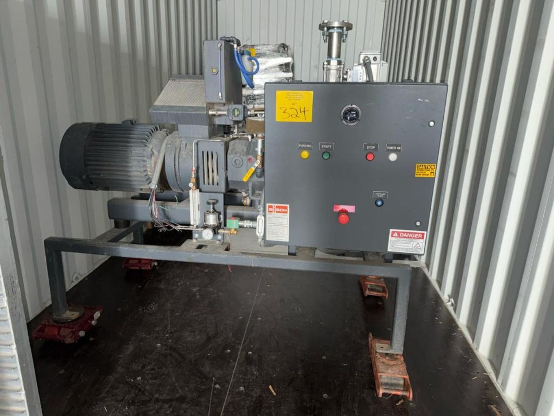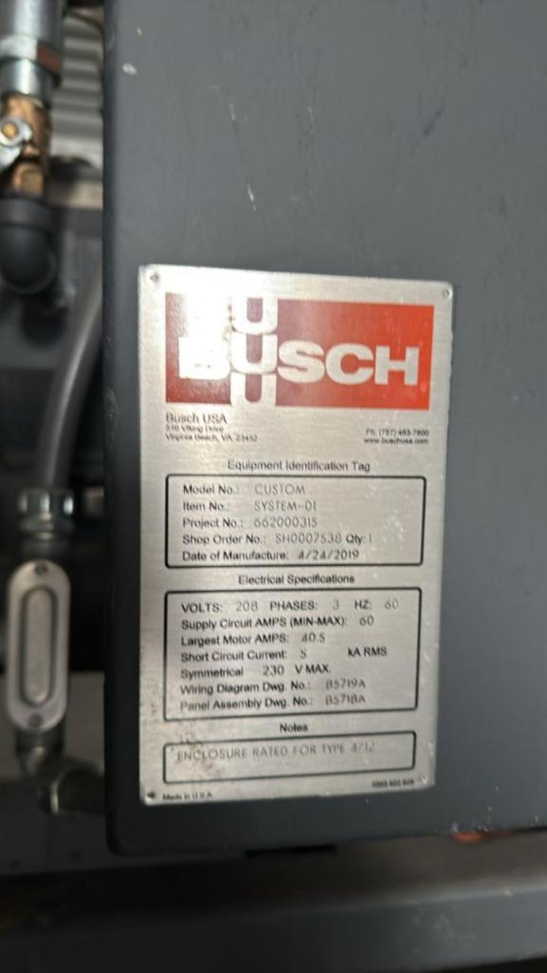 BUSCH NC0300BM06XXRA VACUUM PUMP. 15HP Motor, mounted on rolling frame. OD: 68″ x 48″ x 64″.
