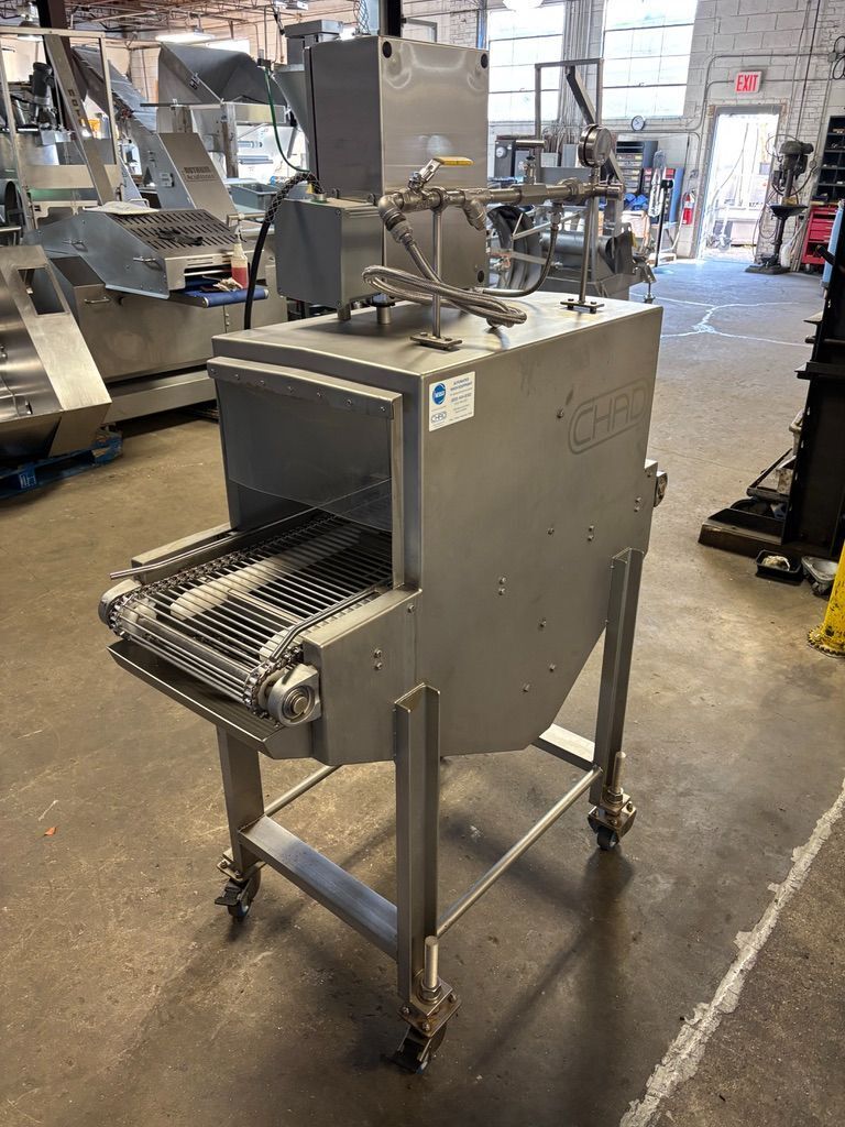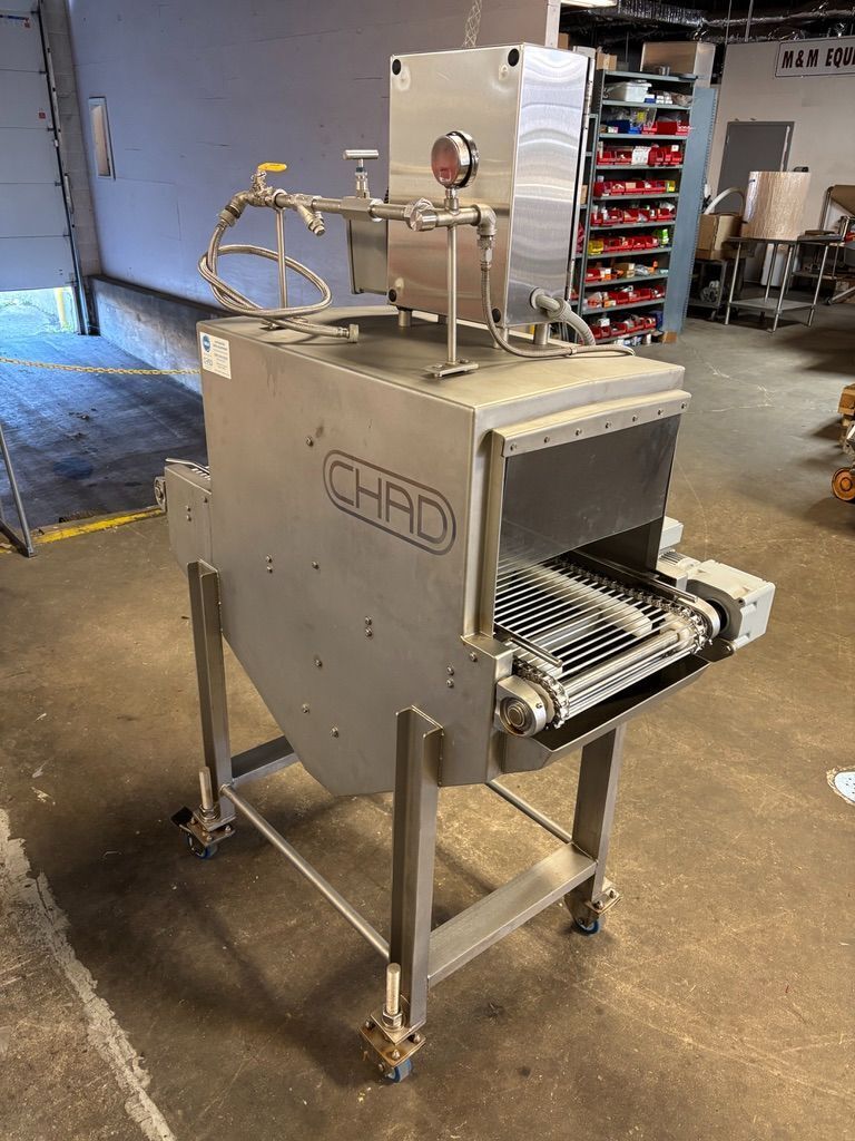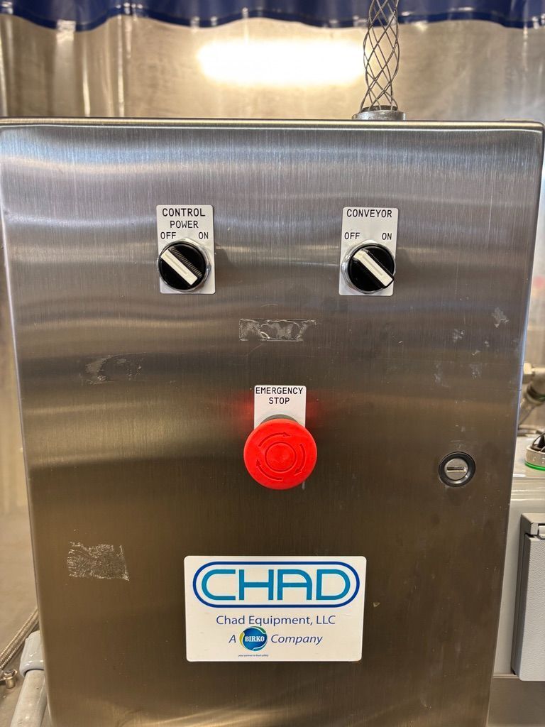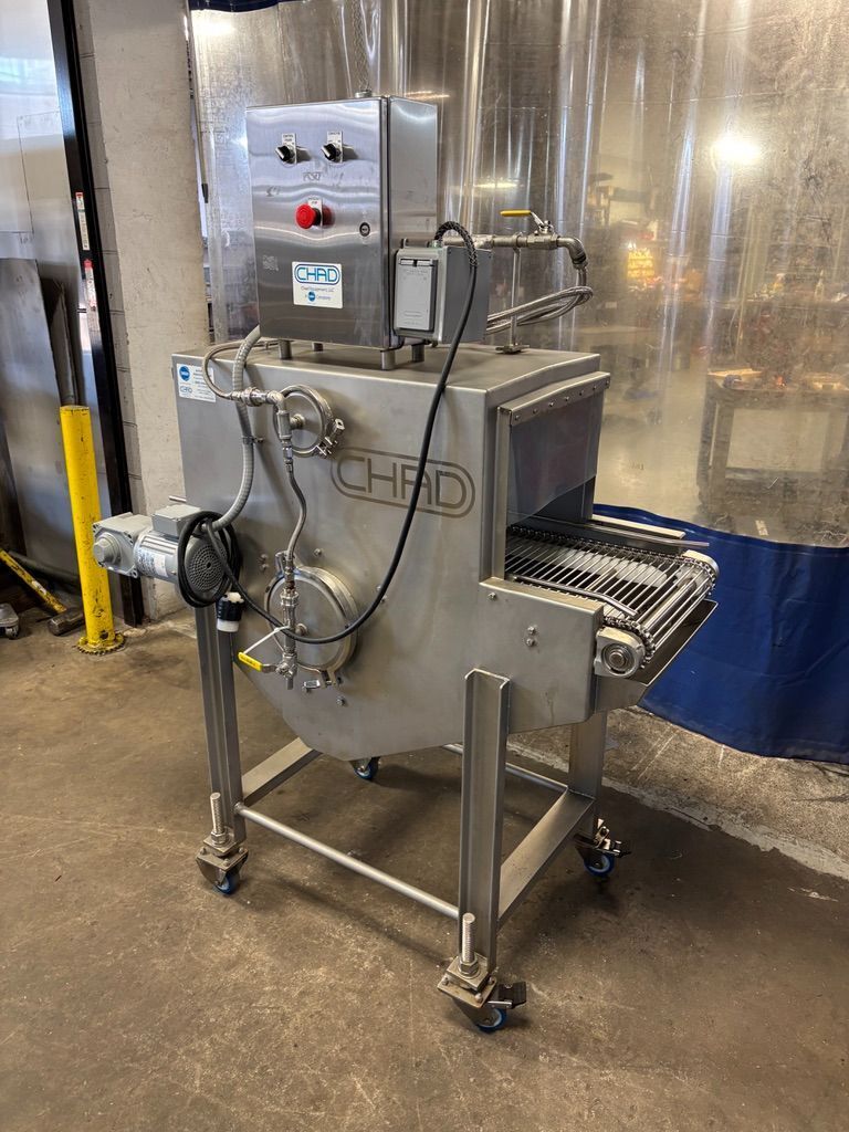 CHAD Mams-150 Automated Wash System. All stainless steel construction, 15″ Open Stainless-Steel Conveyor Belt, Automated Mixing and Dosing Module, Motor: 1/2 HP, 480V/3PH/60HZ.