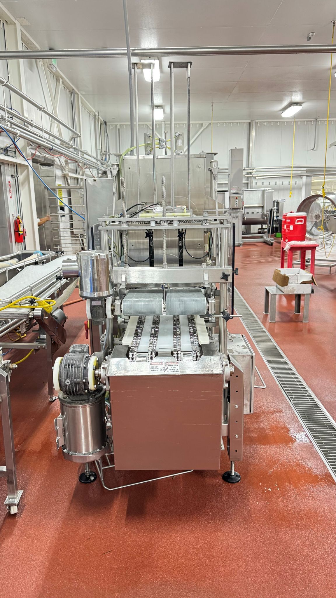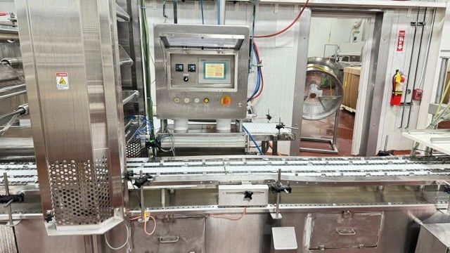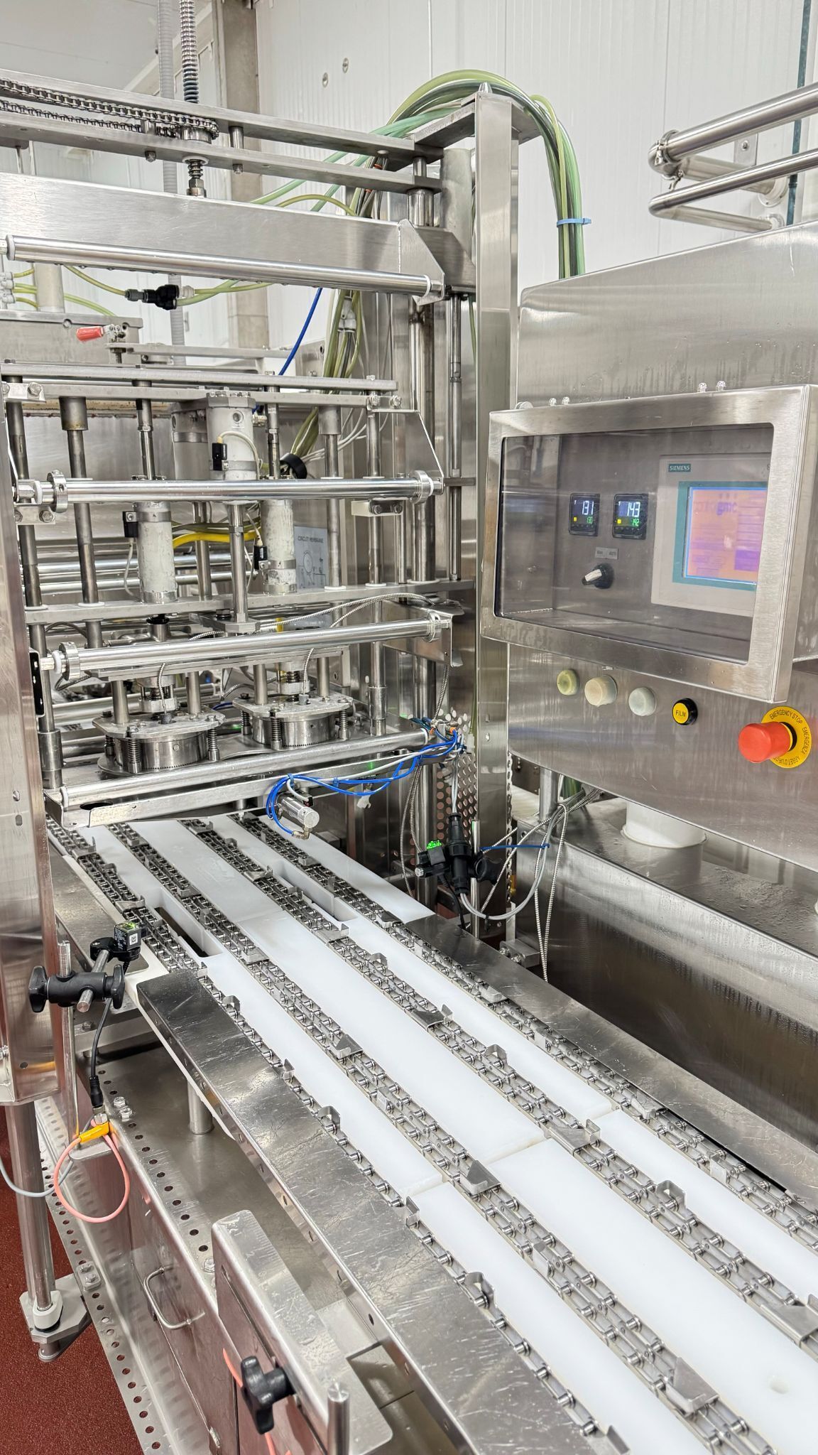 CONTROL GMC FDS4500 Dual-Lane Filling Line. All stainless steel construction, Includes: Packaging line model FDS2500, Piston filler model DVM2000, Plastic film sealer model PL500, Volume Range: from 125 ml (4.2 oz) up to 7,000 ml (approx. 1.8 US gal or 240 oz / 6.8 kg), Maximum Speeds: Up to 100 one-pound tubs (per minute) or 80 five-pound buckets (per minute), Compressed Air: Up to 4 CFM @ 80 psi, Control GMC HMI, Automatic shutdowns, 240V/1PH/60HZ. 10 A