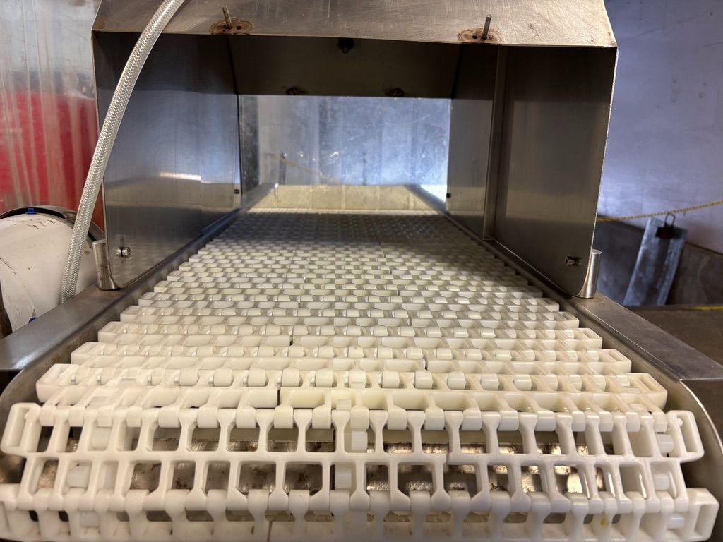 CREATIVE FOOD PROCESSING EQUIPMENT LLC GUARDIAN 186 Spray Applicator. All stainless steel construction, conveyor pulled.