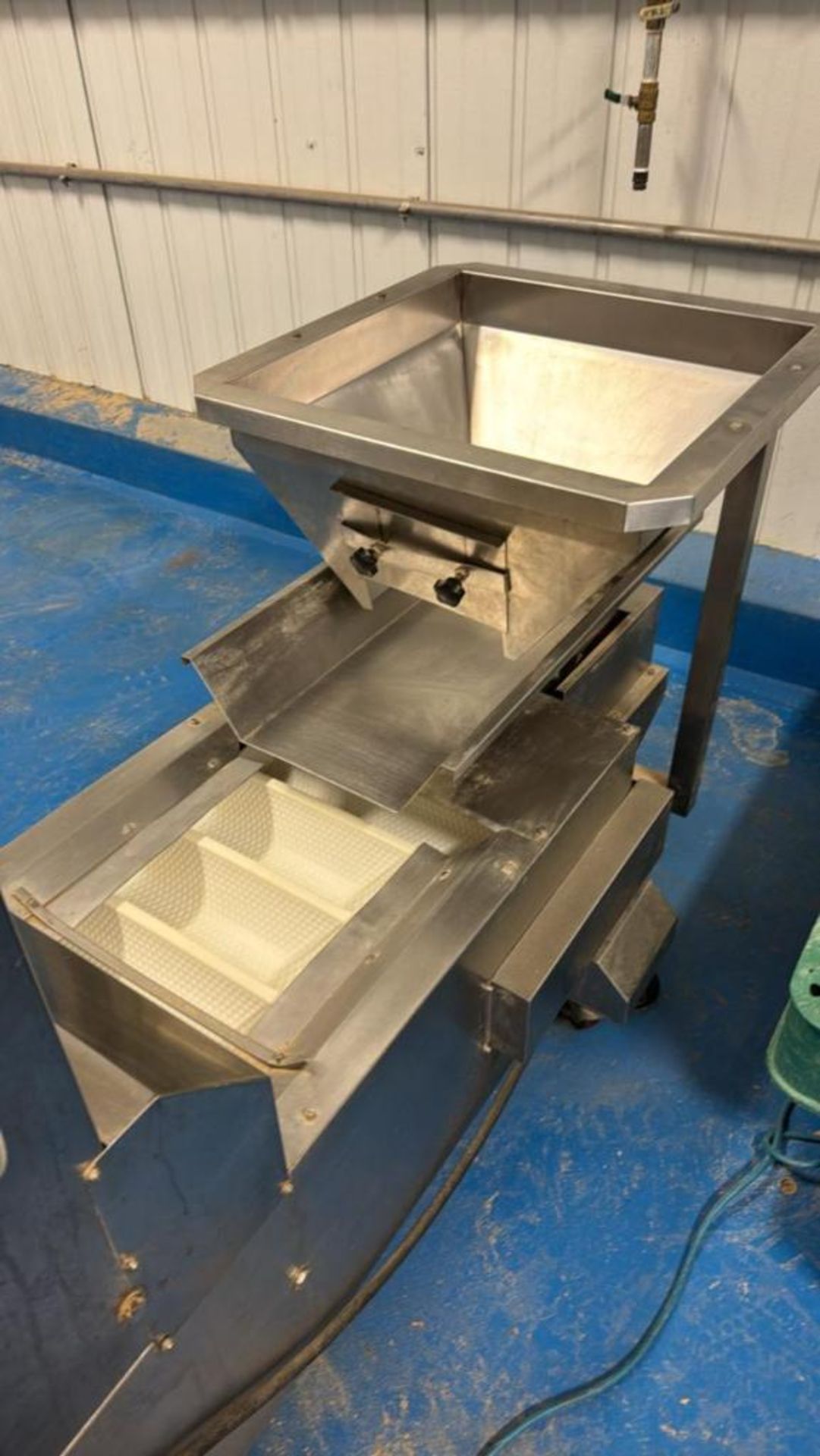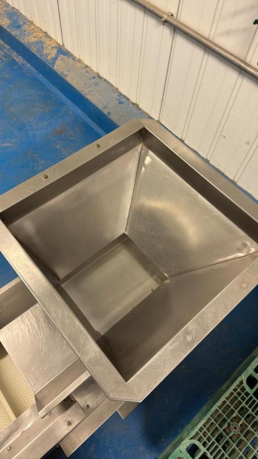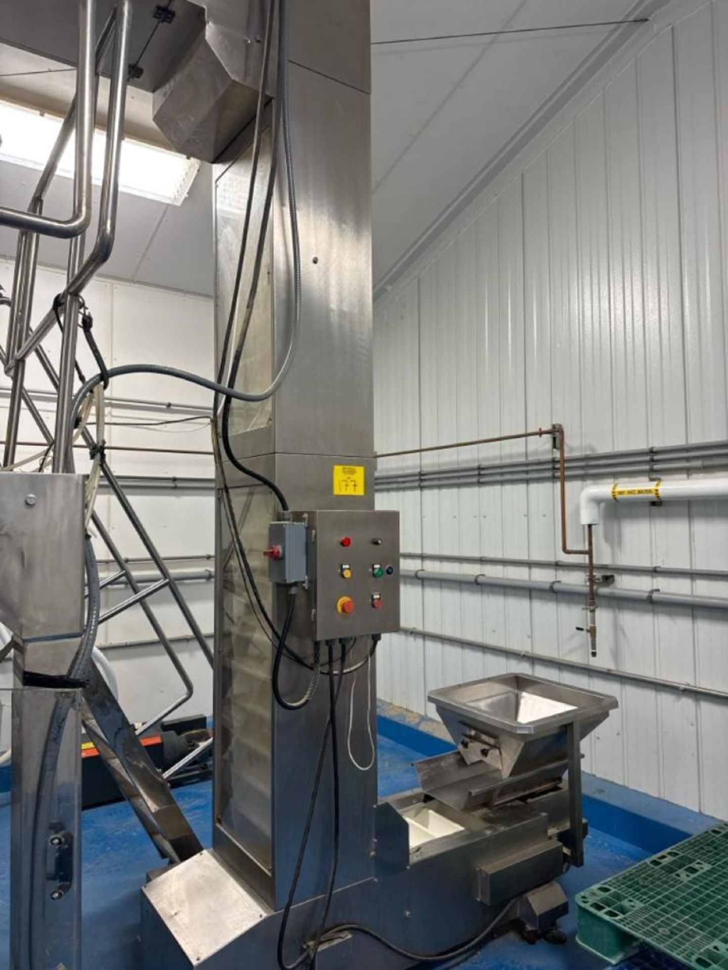 CUSTOM STAINLESS BUCKET ELEVATOR. 22″ x 22″ infeed hopper with 35″ Infeed height, 132″ discharge height.