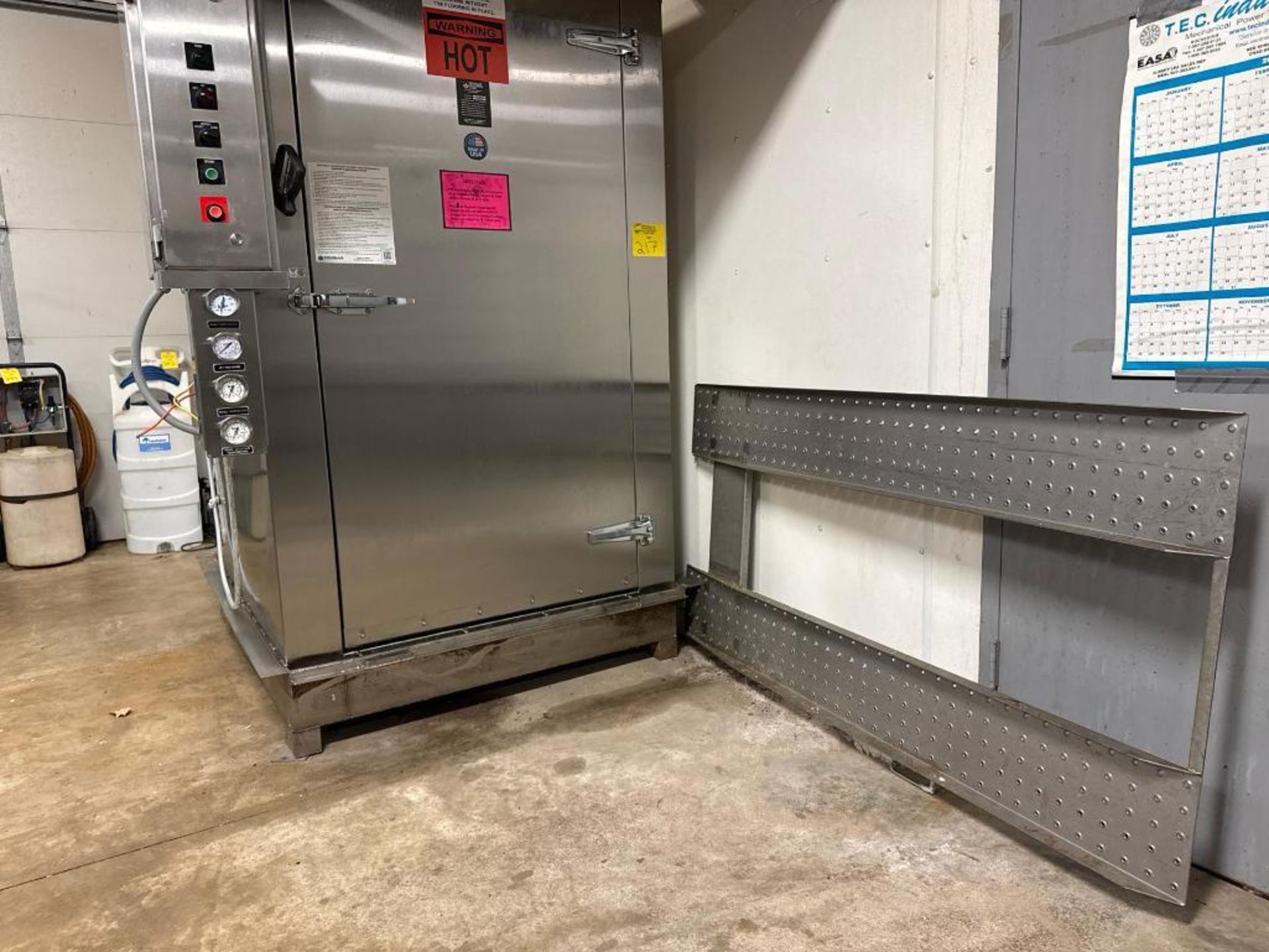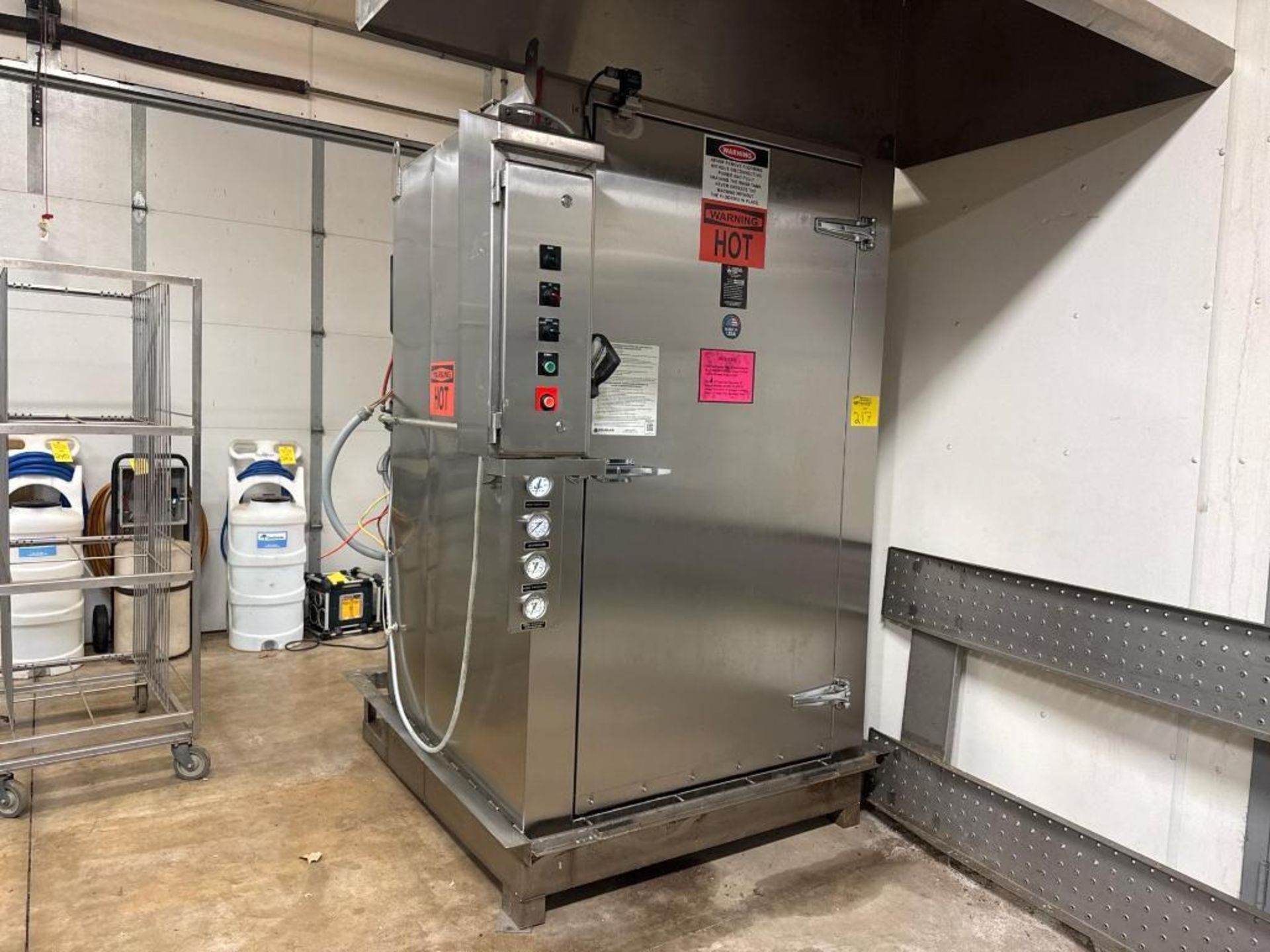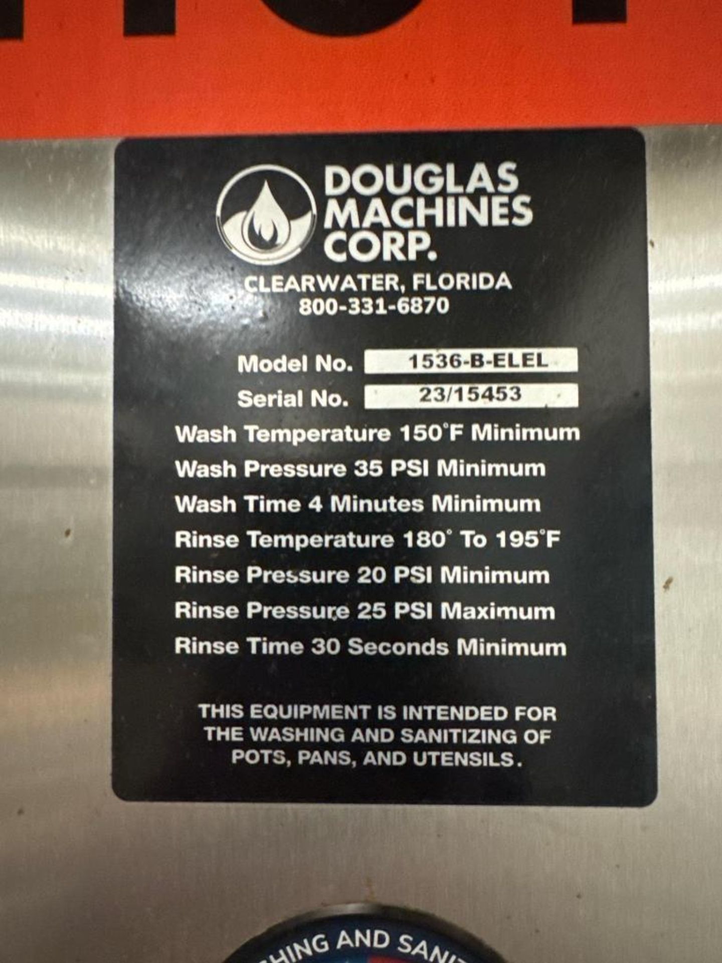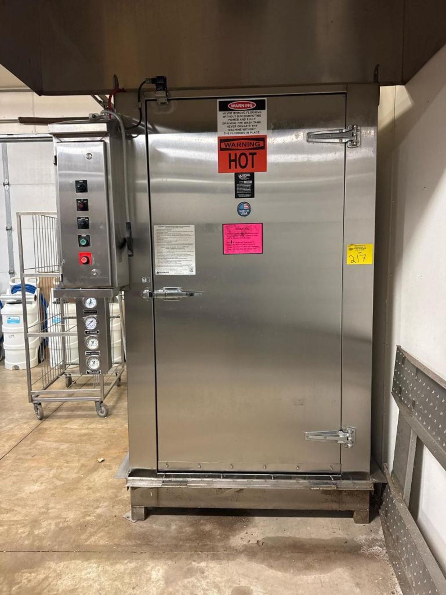 DOUGLAS 1536-B-ELEL TRUCK WASHER. 480V/3PH/60HZ. Includes ramp and (2) carts for sheet trays. OD: 80″ x 66″ x 95″.