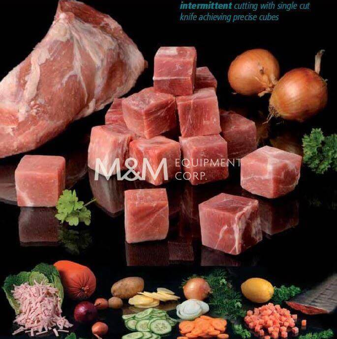 Foodlogistik 90 Classic DicR , flexible Slice, Strip and Dice cut configurations, 3.3″ X 3.3″ X 12.25″ long cut chamber, cut length 0-1-3/4″, output capacity 1,500 lbs. per hour, up to 560 cuts per minute, 220V/3PH/60HZ.