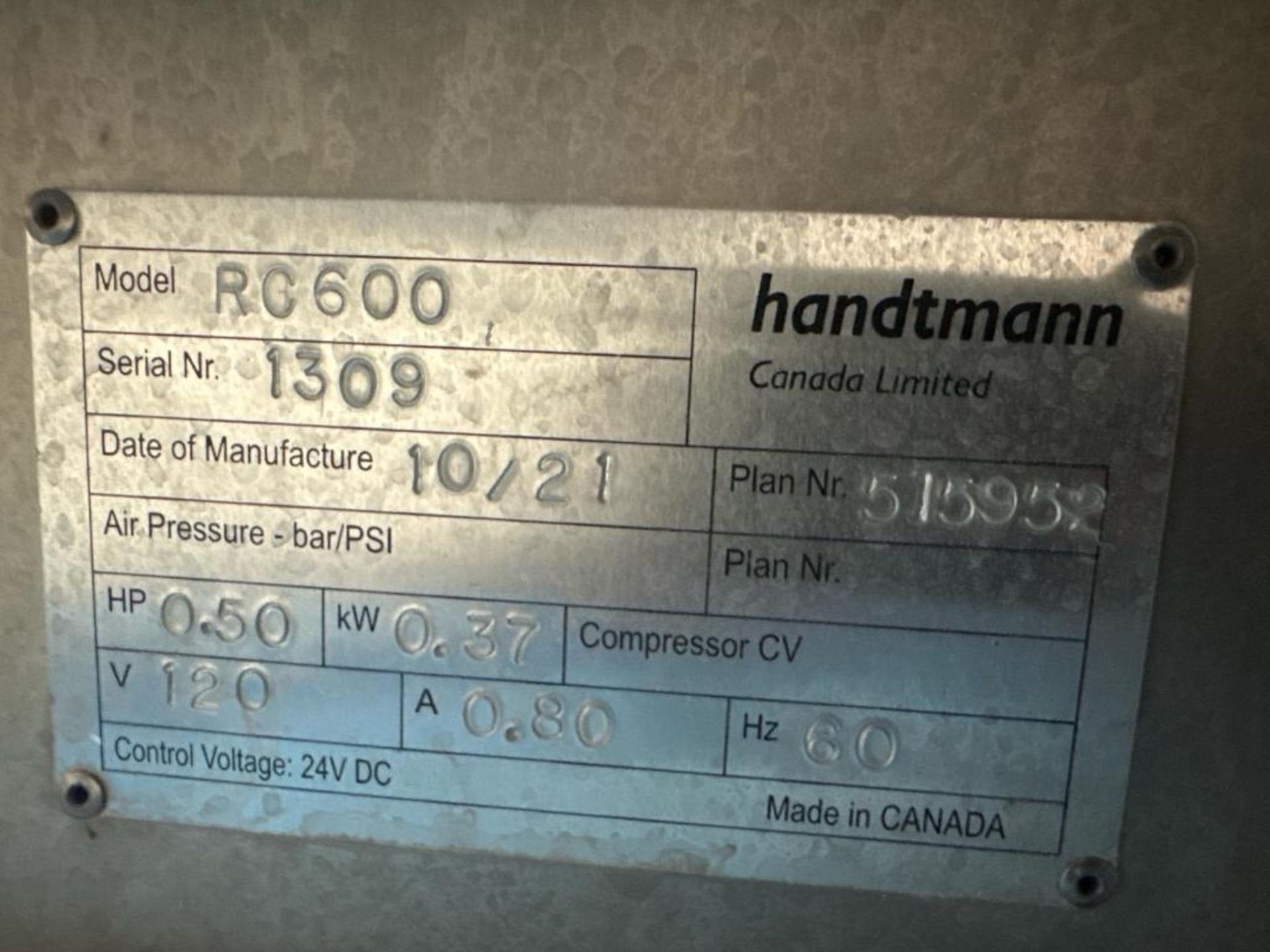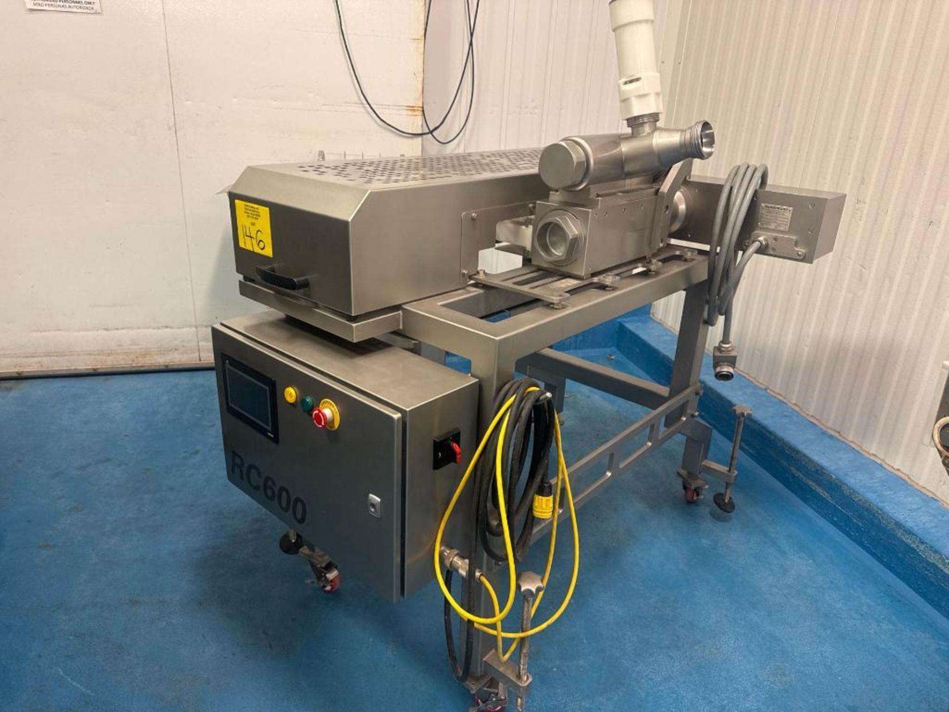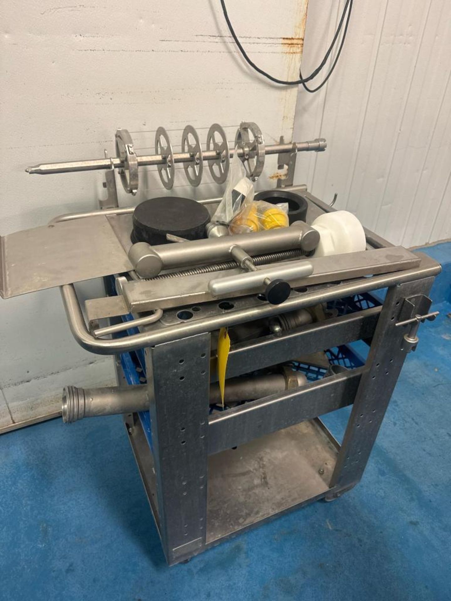 HANDTMANN RC 600 KIBBLE FORMER. 115V/1PH/60HZ. Includes parts cart with additional cutting heads, OD: 60″ x 40″ x 62″.