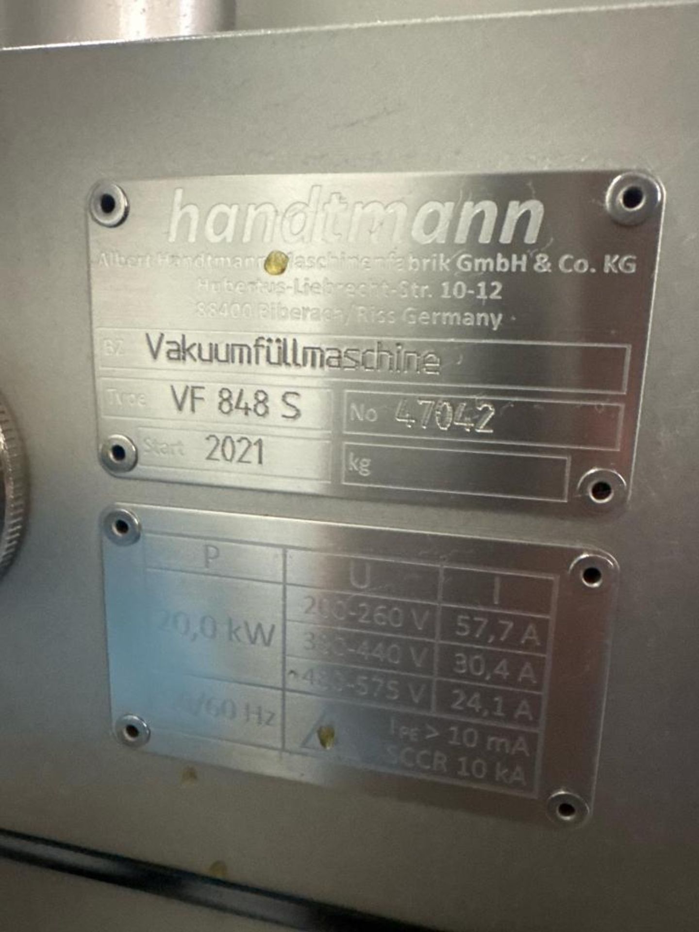 HANDTMANN VF 848S VACUUM STUFFER. 317 Hours of Use, Includes built-in loader, OD 84″ x 64″ x 83″.