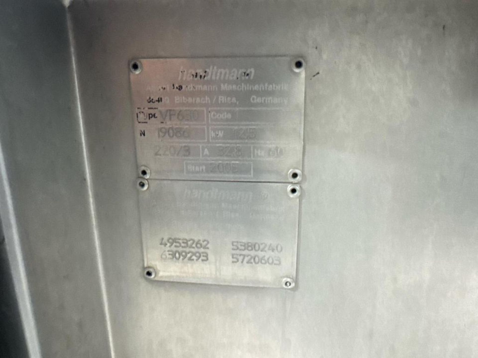 HANDTMANN VF630 VACUUM STUFFER. Includes built-in loader, 220V/3PH/60HZ. OD: 75″ x 52″ x 82″.