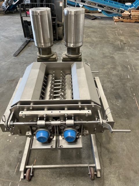 Heglar Creek Electric Jerky Spreader Line. All stainless steel construction, Includes Vat dumper, Feeding hopper, and Jerky Spreader.