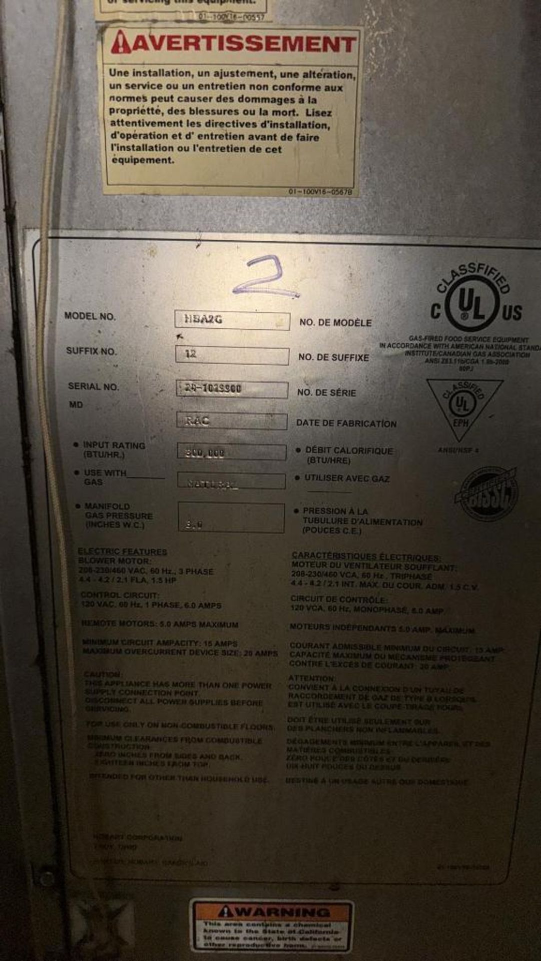 HOBART HBA2G BAKERY OVEN. Converted to propane, OD: 92″ deep x 72″ wide x 104″ tall.