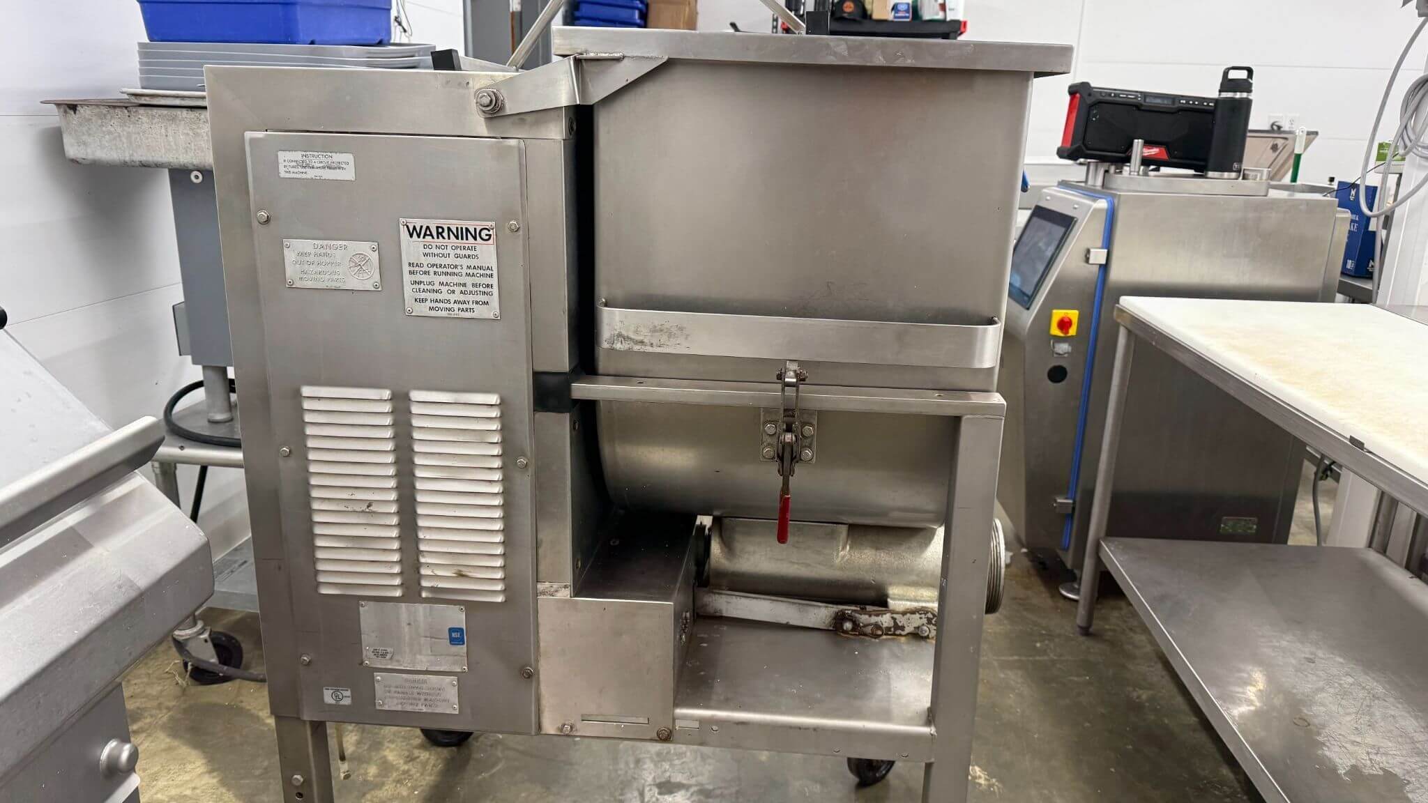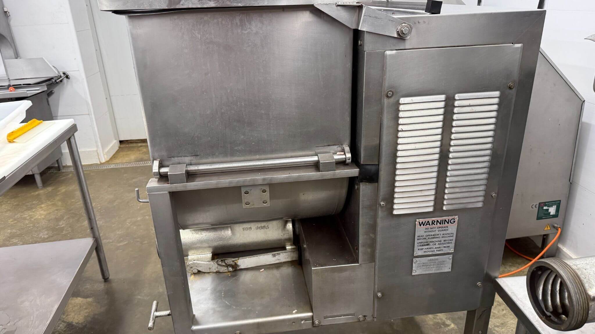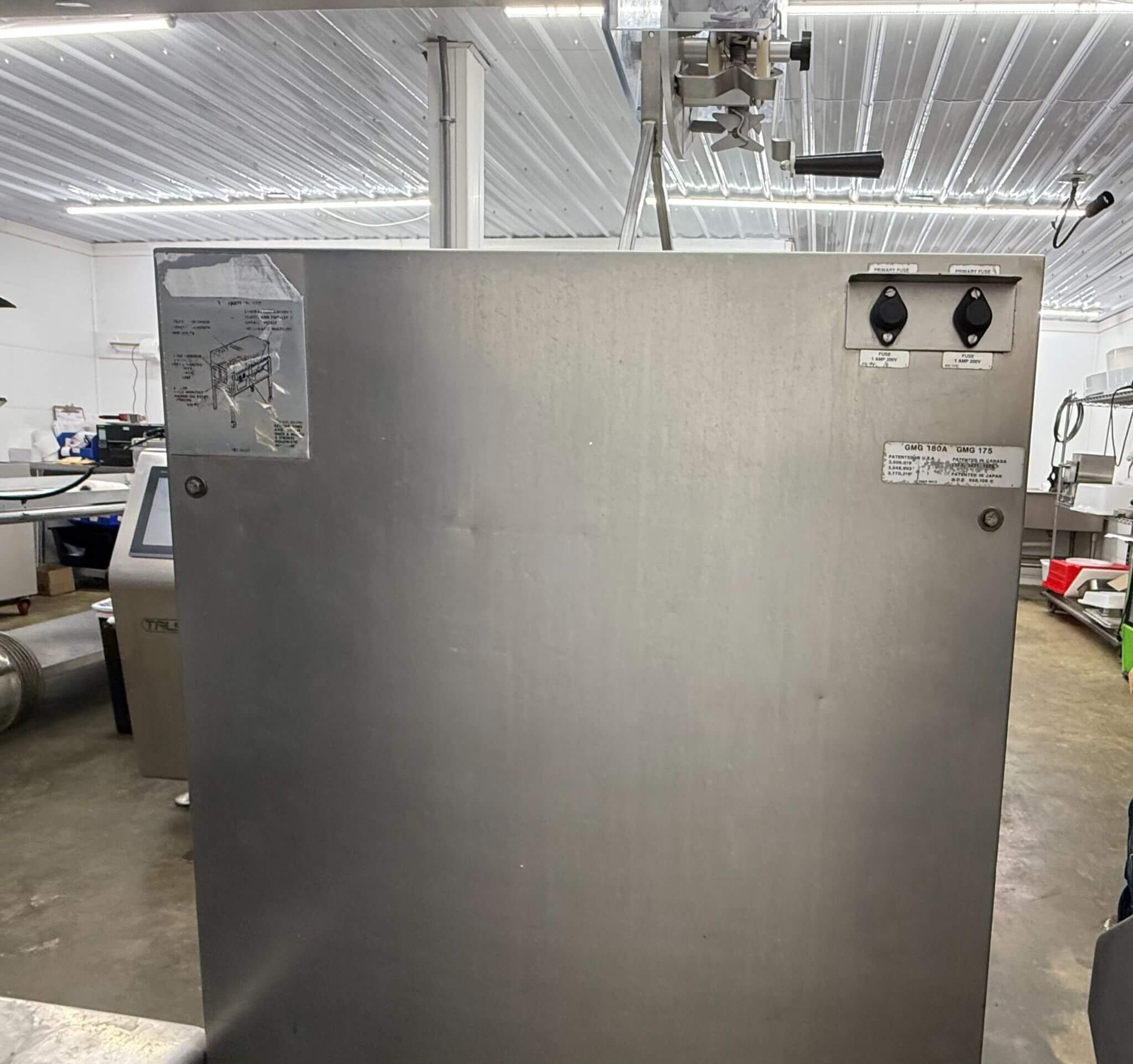 HOLLYMATIC 180A GRINDER. 200# Capacity hopper, up to 1,700 to 2,400 lbs./hour. Size 52 Tinned cut group, 10hp motor, 220V/3PH/60HZ, 31 Amps.