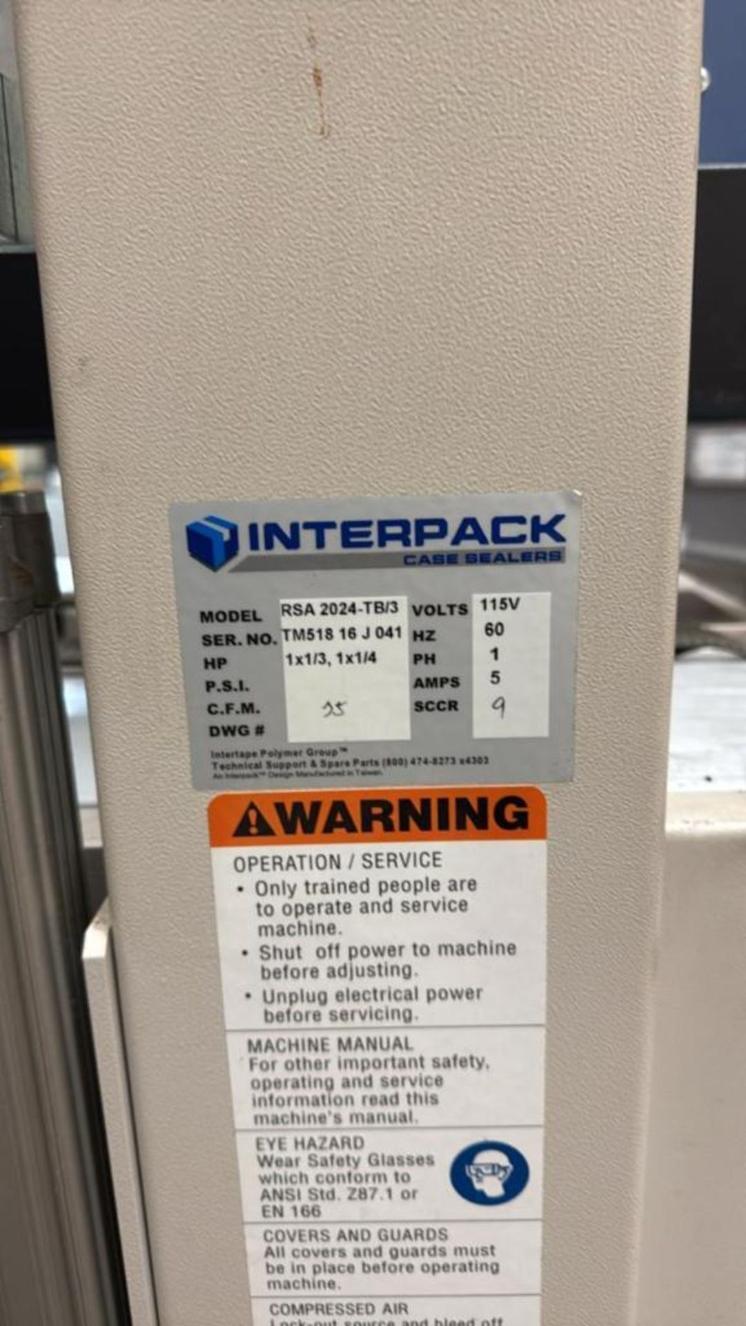 INTERPACK RSA2024-TB/3 TOP AND BOTTOM BOX TAPER. 110V/1PH/60HZ. OD: 64″ x 40″ x 64″.