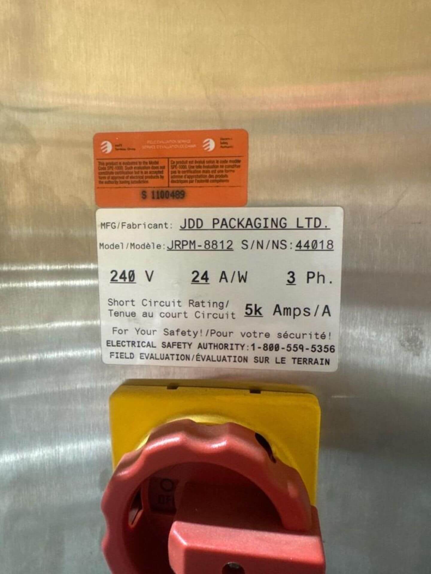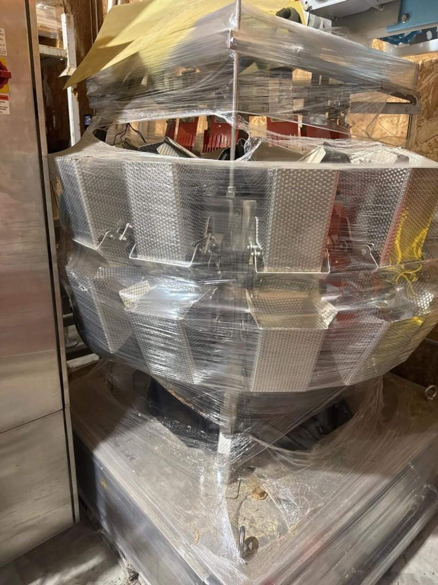 JDD PACKAGING JRPM-8812 TRIANGLE PREMADE POUCH BAGGER. Includes Eriez product shaker, weighhead scale system, mezzanine, 240V/3Ph/60Hz.