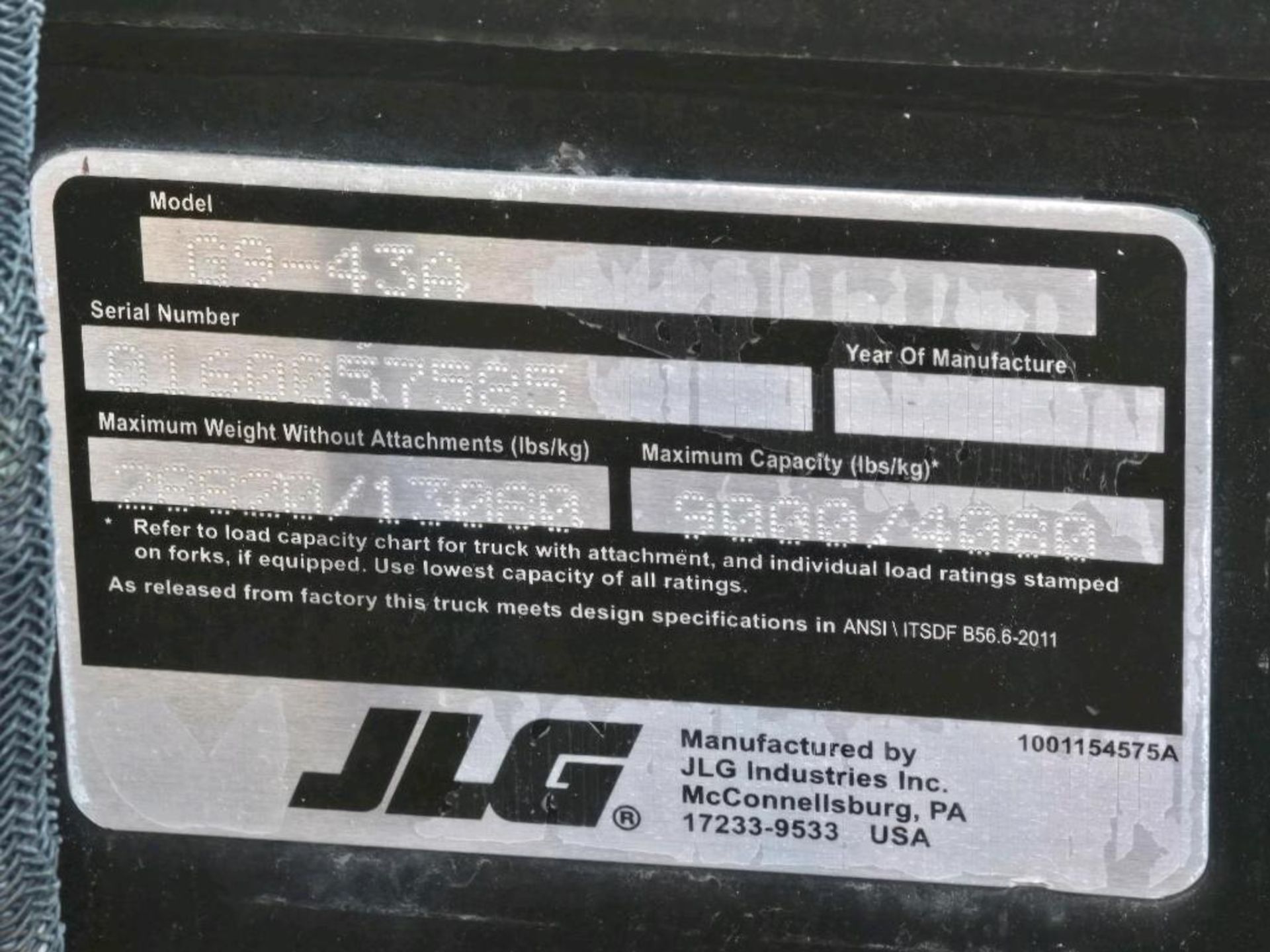 JLG G9-43A TELESCOPIC FORKLIFT. Maximum Load Capacity: 28,820 Lbs. The item will be ...