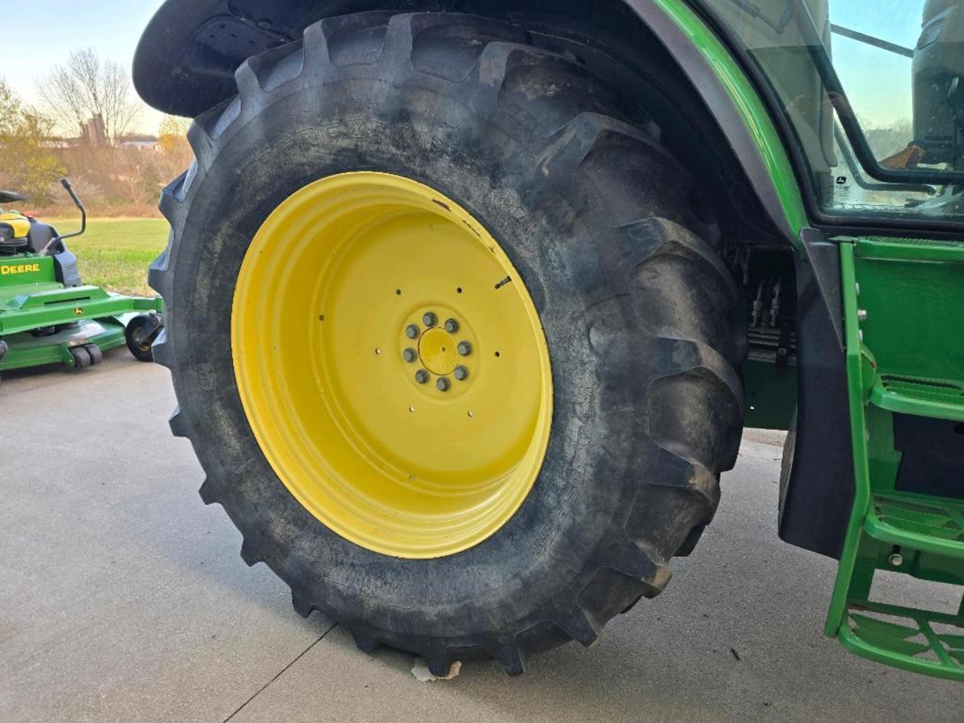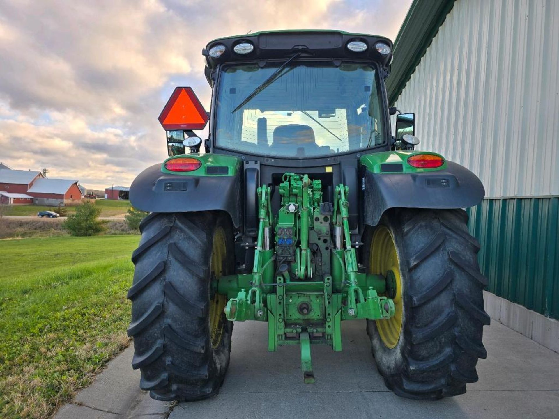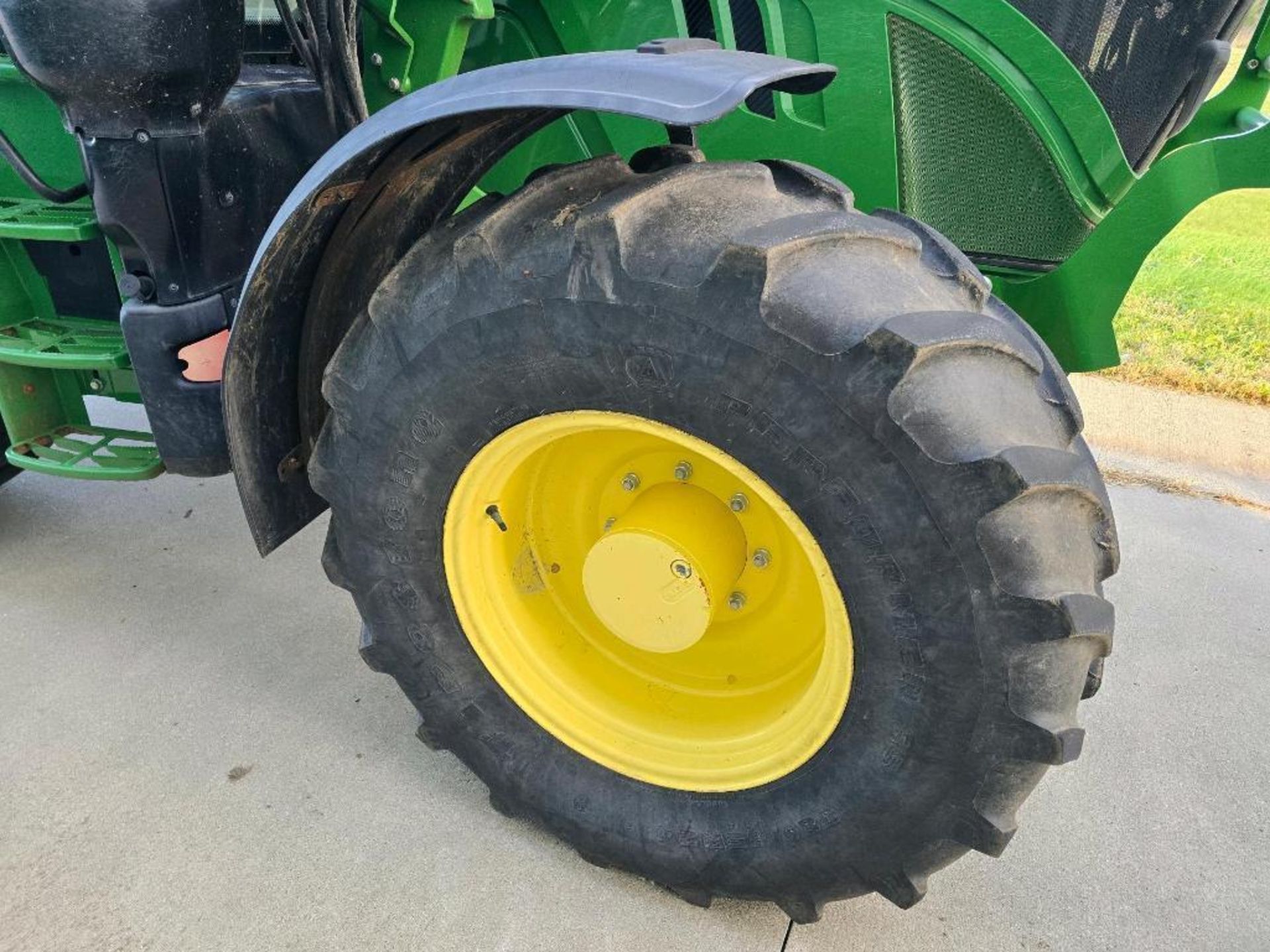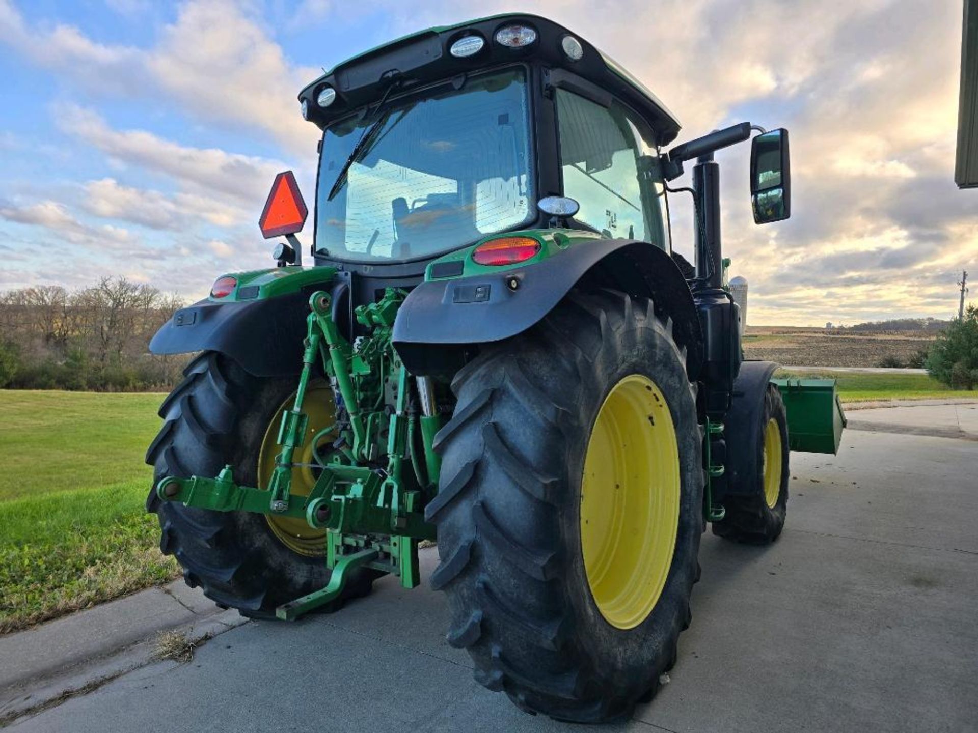 JOHN DEERE 6130R TRACTOR. Product ID: 1L06130RHHN887581. Includes 620R loader bucket and forklift attachment, approximately 1527 hrs.