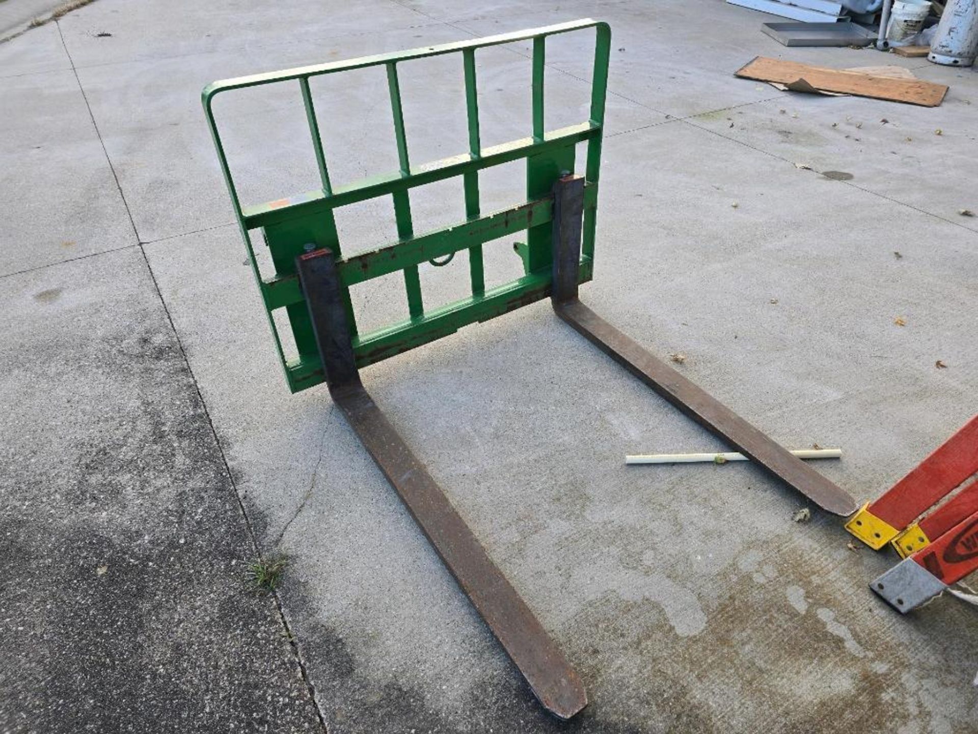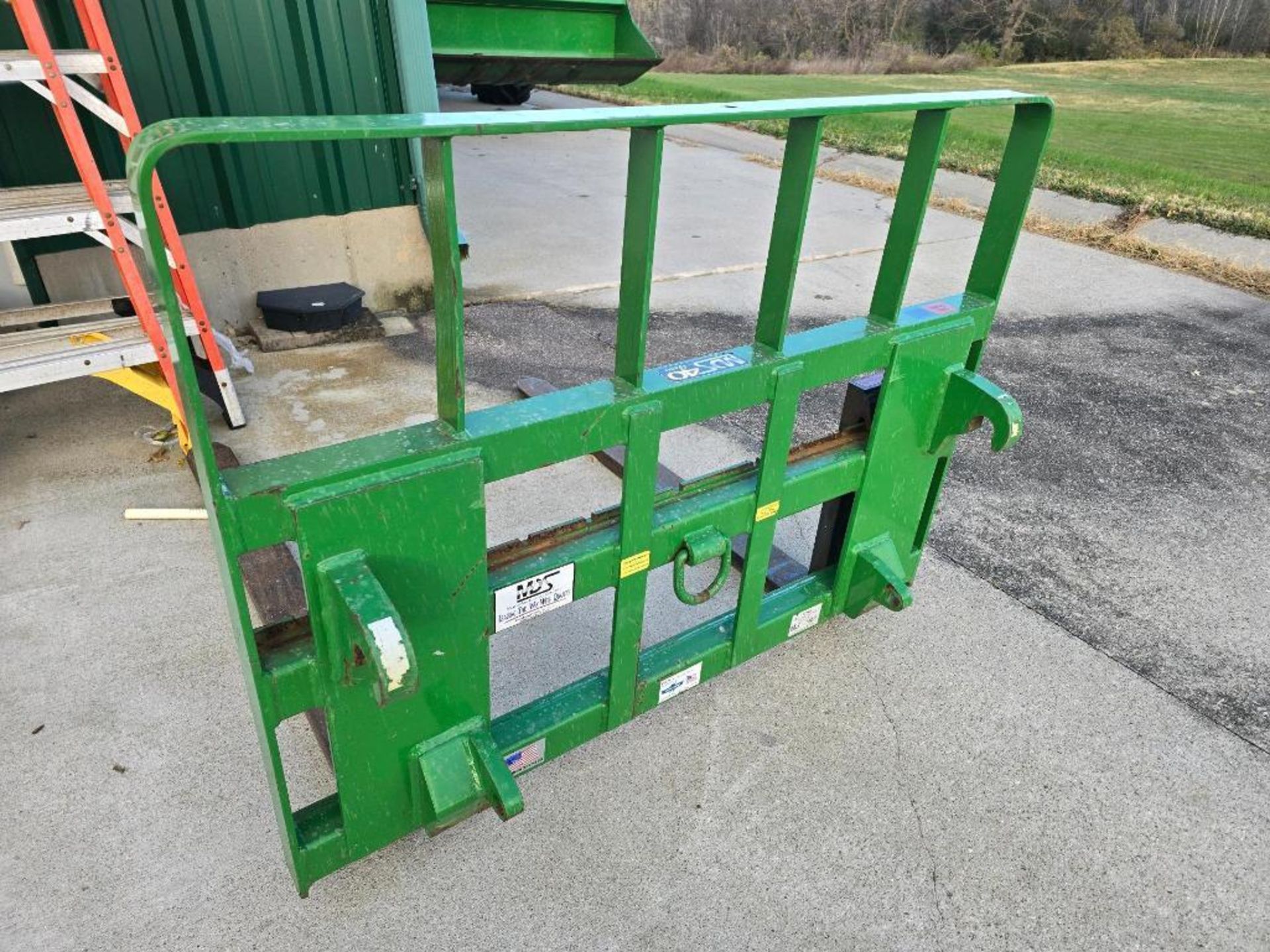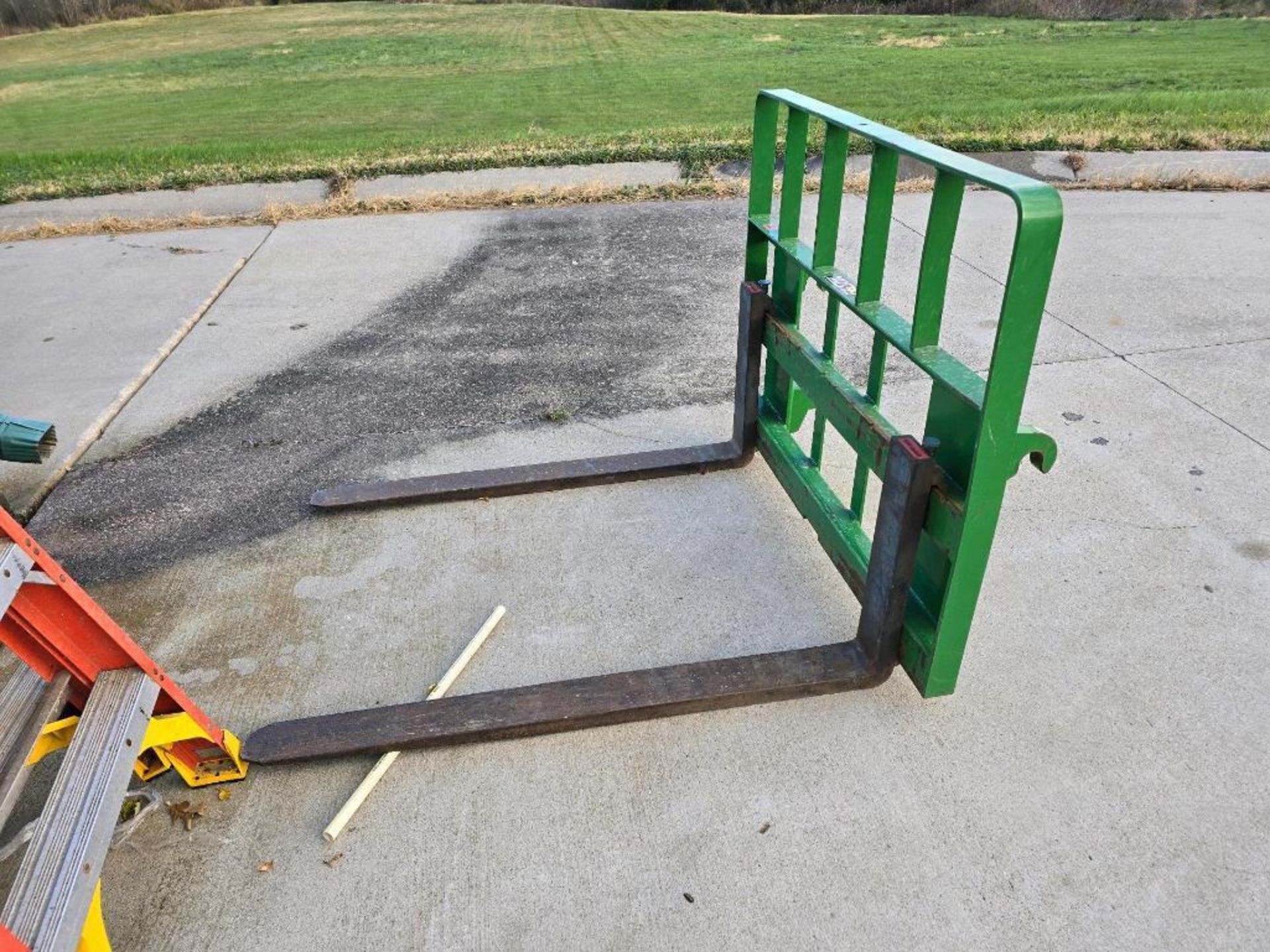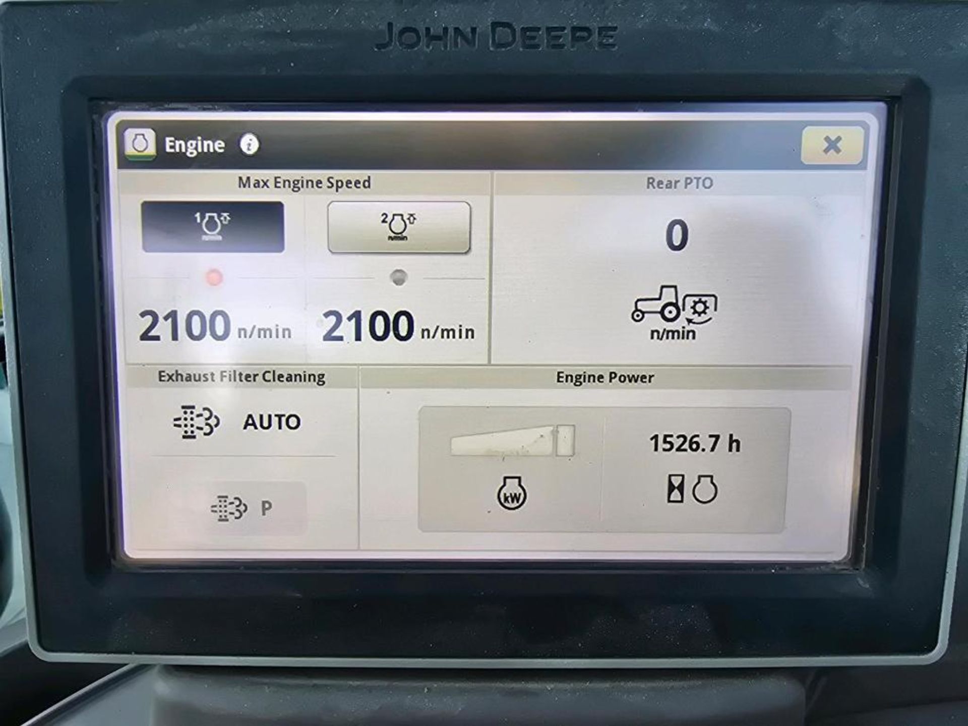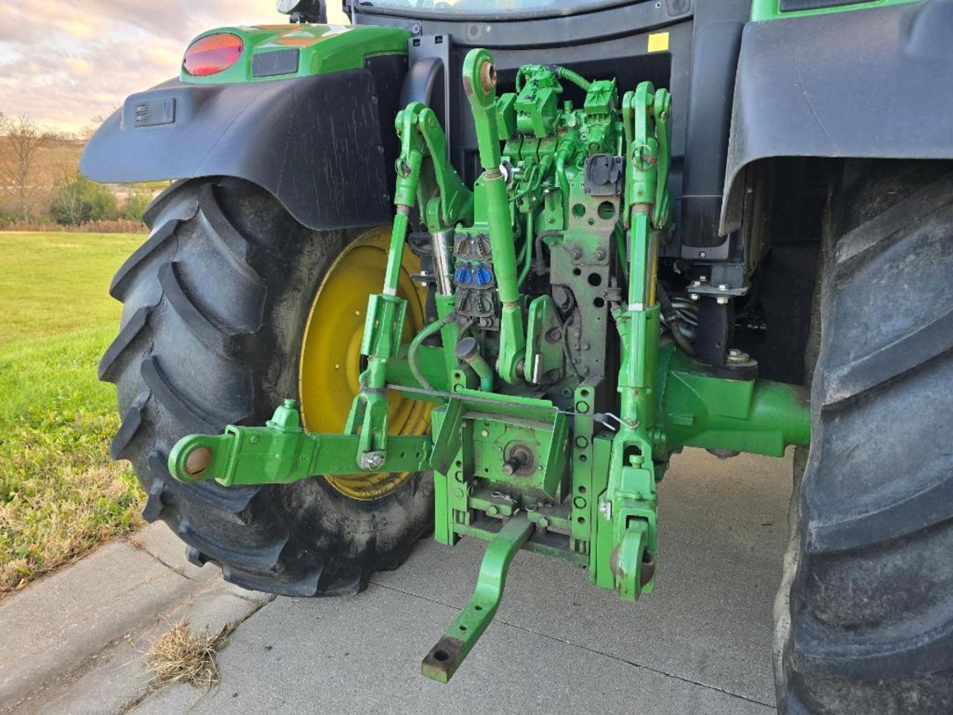 JOHN DEERE 6130R TRACTOR. Product ID: 1L06130RHHN887581. Includes 620R loader bucket and forklift attachment, approximately 1527 hrs.