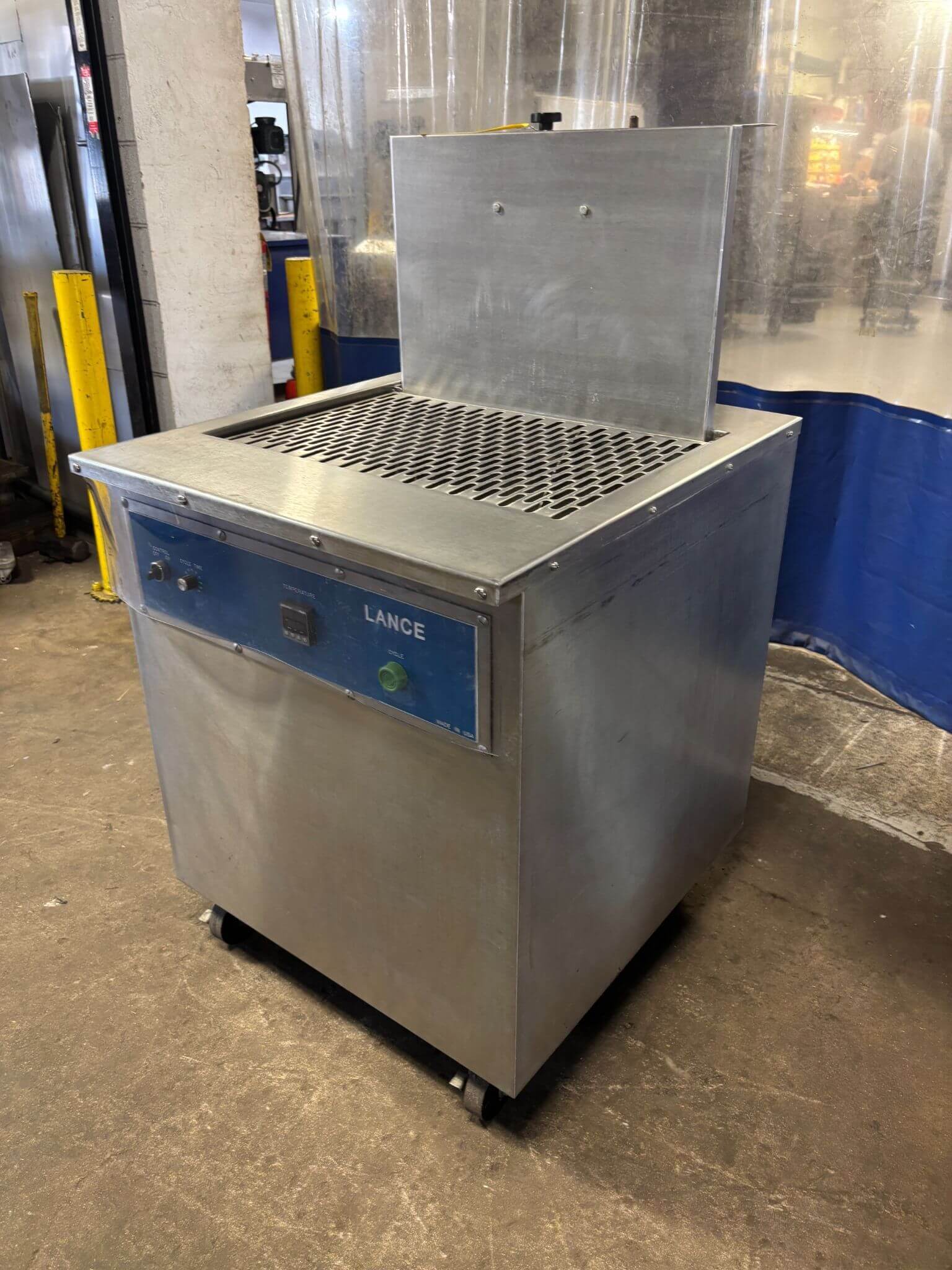 Lance LST-20 Shrink Tank. All stainless steel tank, Digital temperature control, water level switch to prevent element burnout, insulated tank, full port ball valve drain, port to plumb in water supply if desired. 35″ working height, 16″ x 24″ platform size, max product size of 10″ x 16″ x 24″. 220V/3PH/60HZ, 40 A.