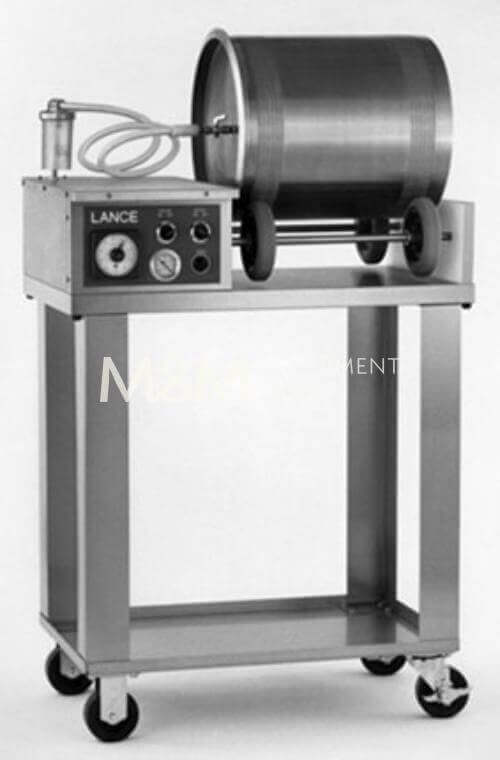 Lance LT-5 massage vacuum tumbler, 50 lbs capacity bench top machine, features all Stainless Steel construction, removable drum for easy loading, unloading and cleaning, internal vacuum pump, waterproof mounted control panel, variable speed controls and digital timer.