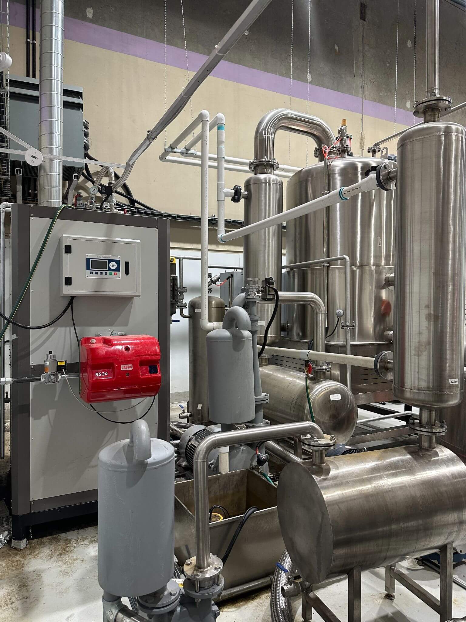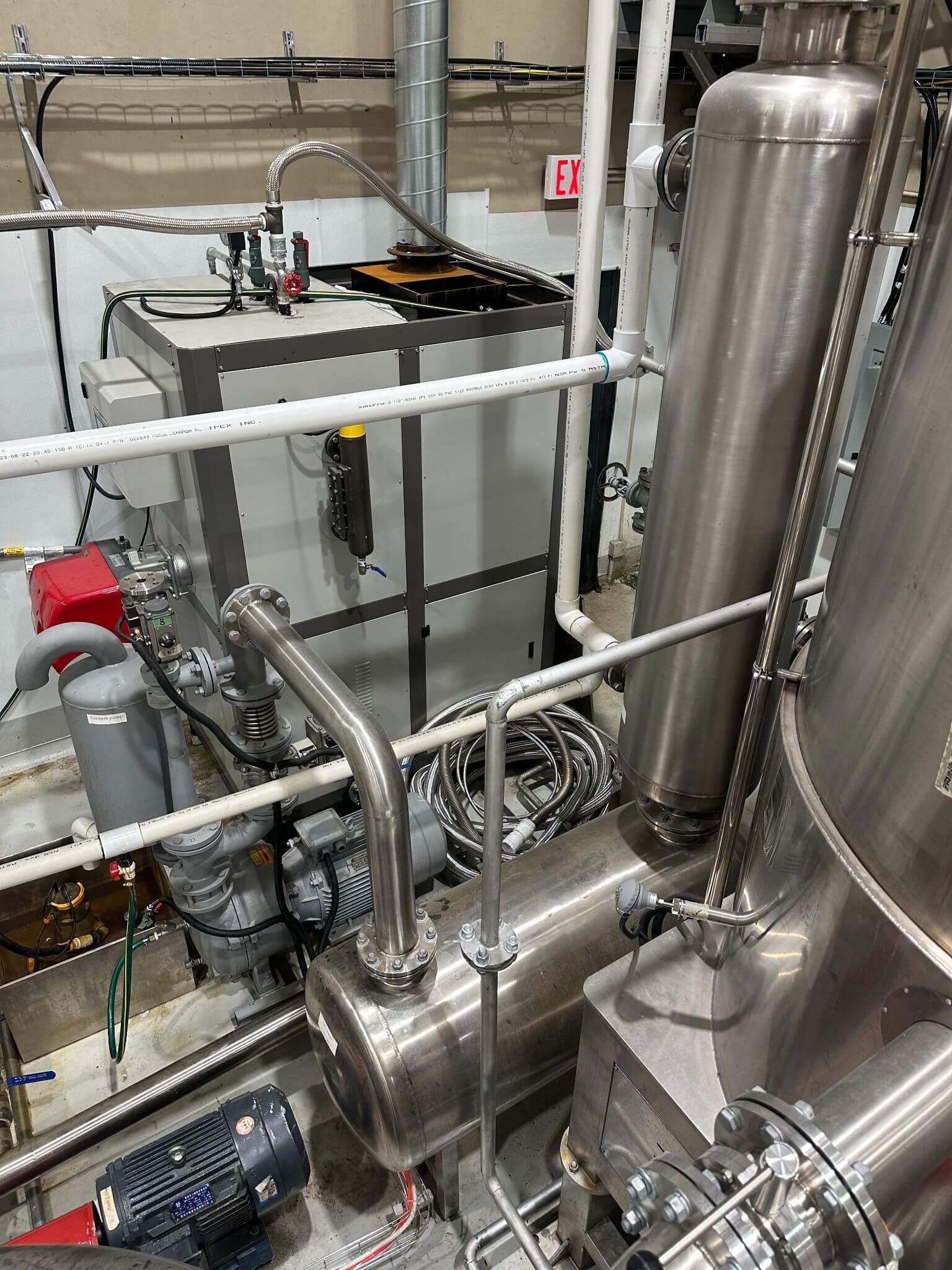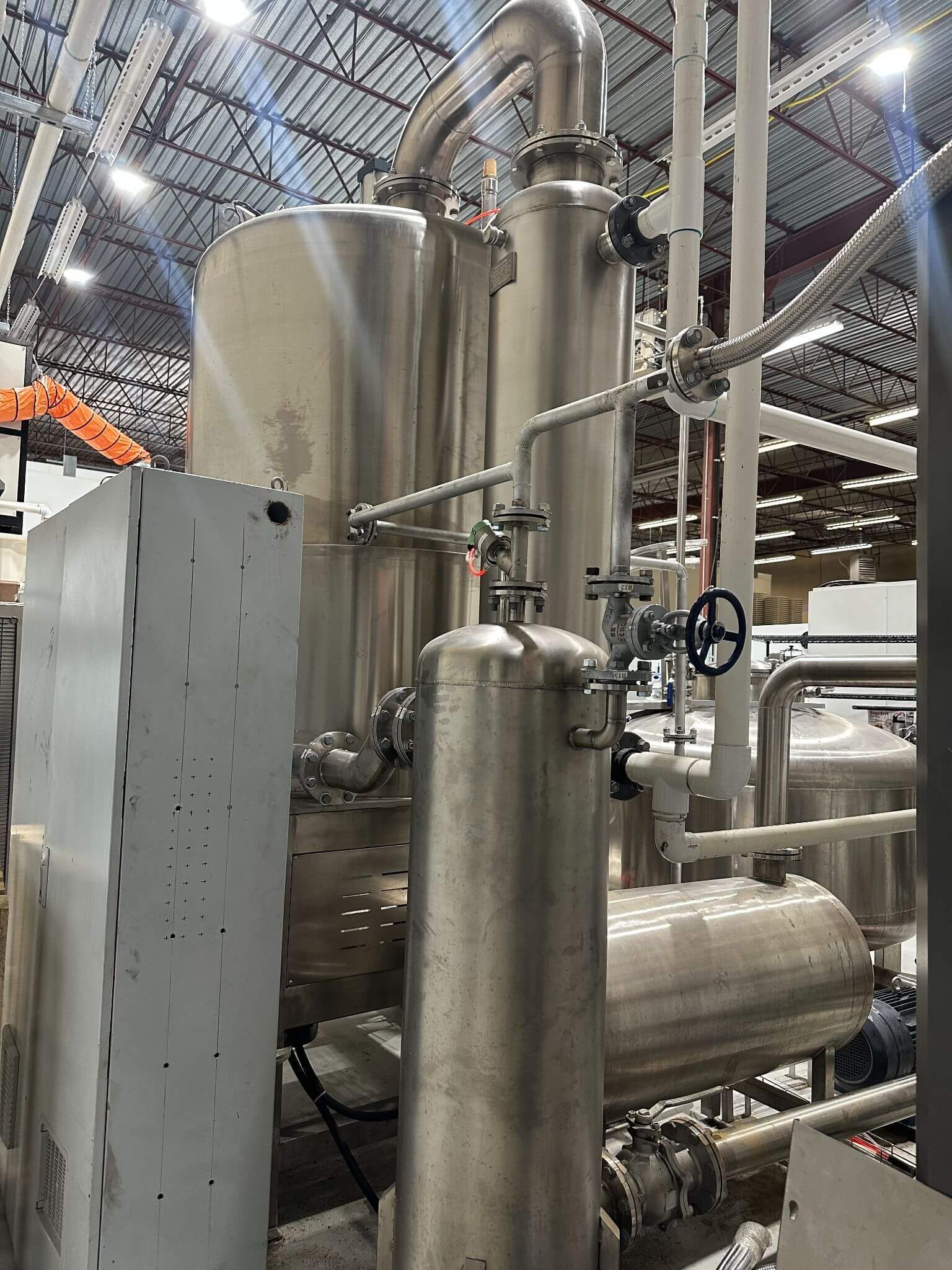 LXZK 300 Continuous Vacuum Fryer. Year: 2023, All stainless steel construction, Machines Included (4 Major Parts): LXZK 300 Vacuum Low Temperature Frying Machine, Vacuum Washing Oil Tank, Steam Generator, Tilting Device, Frying Tank Volume: 630 L, Loading Capacity (per batch): 260–300 kg, Operating Vacuum: –0.092 to –0.098 MPa (~–13.3 to –14.2 psi), Temperature Range: 80–120 °C (176–248 °F), Total Power Consumption: 28 kW, Vacuum Pump Power: 11 kW + 3 kW (totaling 14 kW), Heating Method: Steam-based heating system, Basket Size: 1,200 × 580 mm (~47.2″ × 22.8″), 220V/3PH/60HZ.