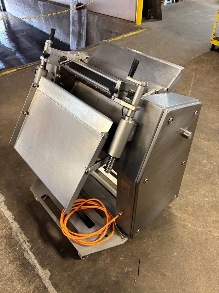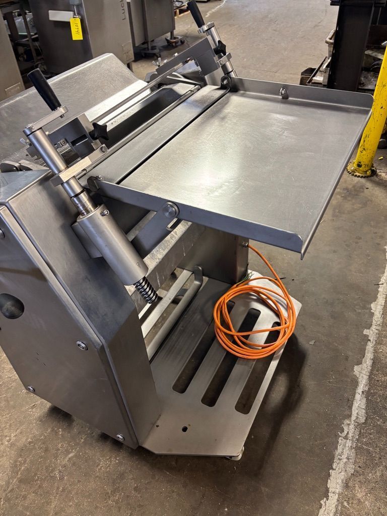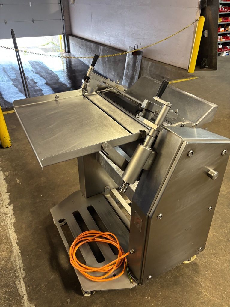 Maja ESM 4550 Fat Skinner. All stainless steel construction, For manual (open) derinding of round-shaped cuts, 554 mm (≈ 21.8 in), Standard work table straight, 1HP motor, 230V/3PH/60HZ.