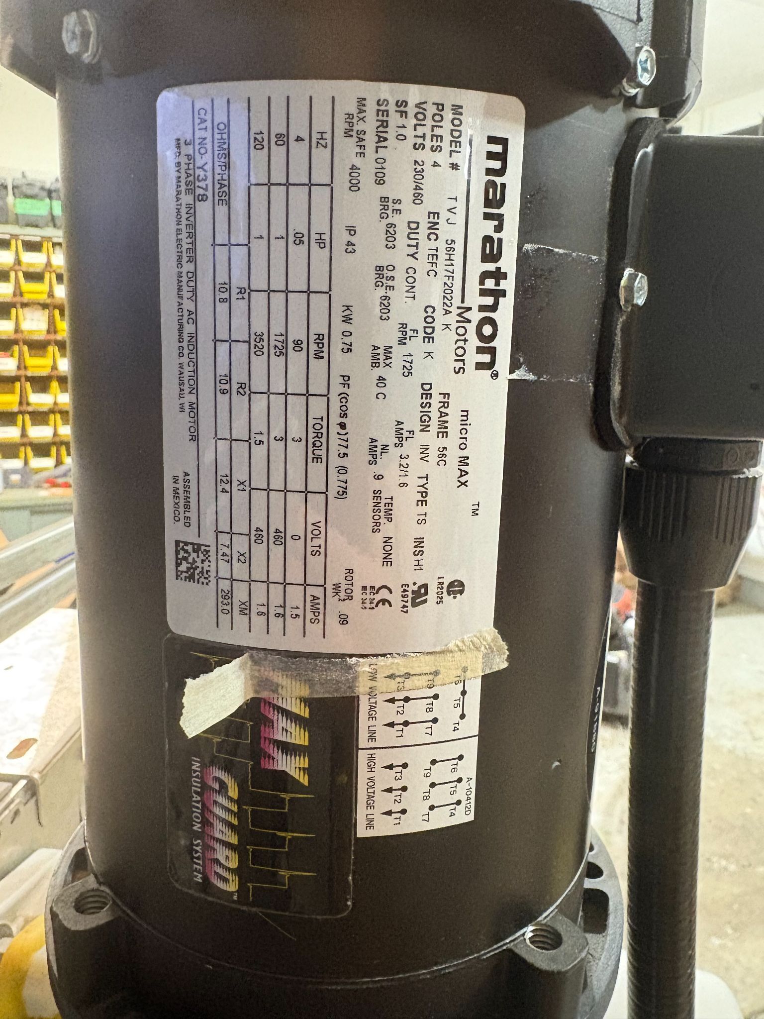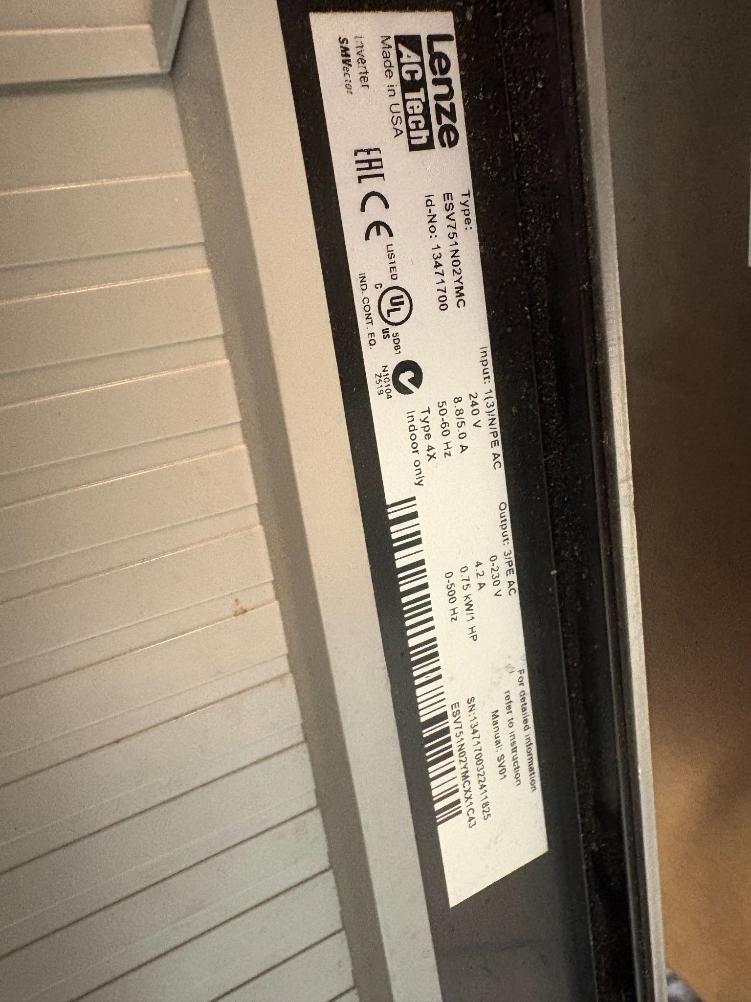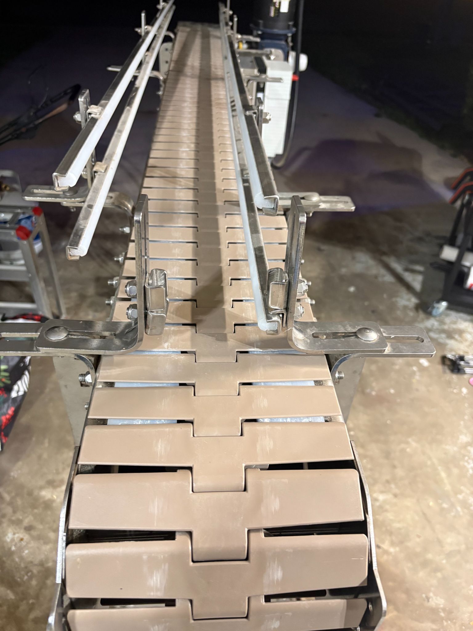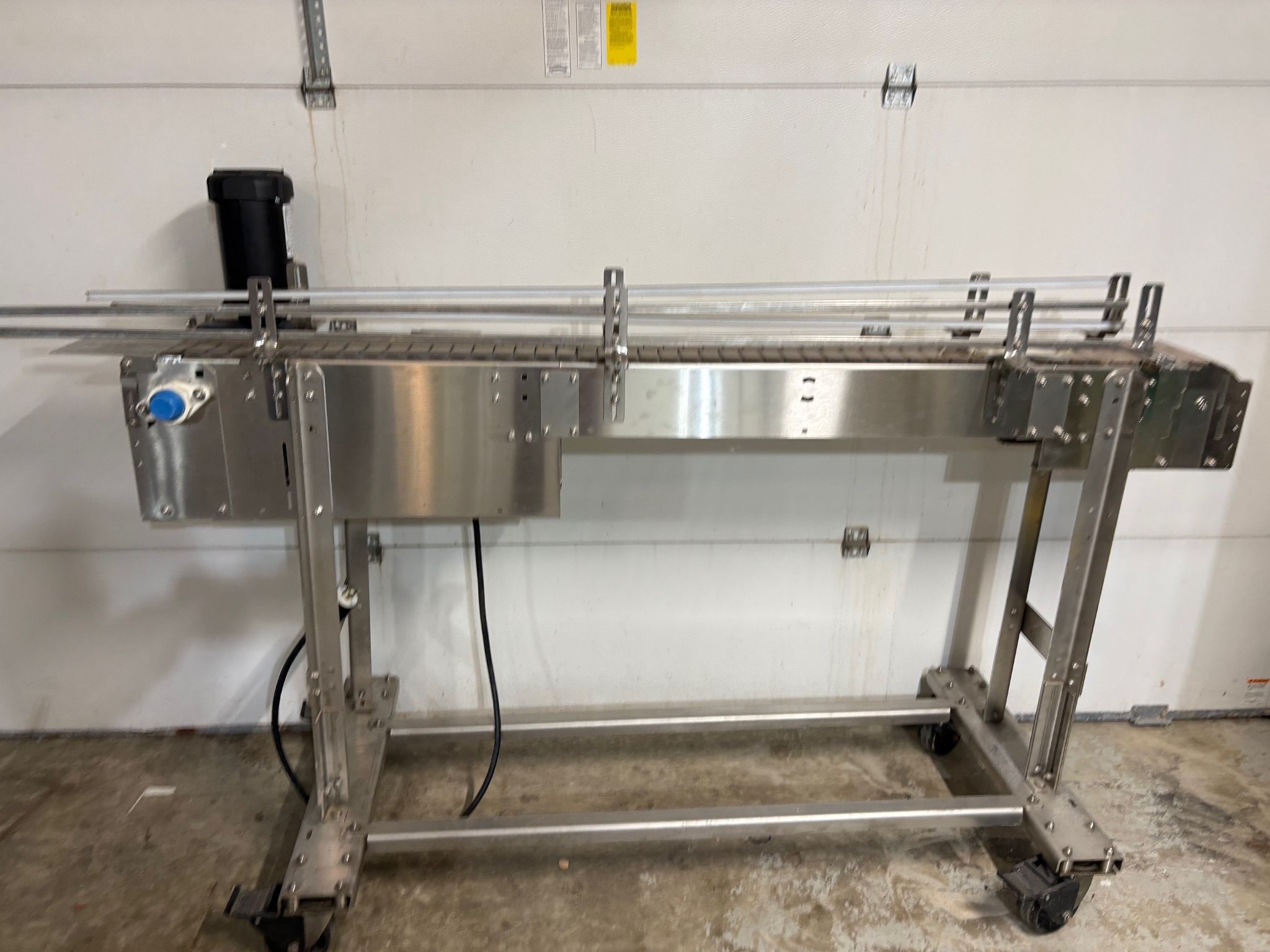 MCE 618 TECHMASTER CONVEYOR. Stainless steel construction, Includes: control panel and motor, Motor: 1 HP, 7 ft long, Belt width: 7 1/2″, Discharge and In-feed: 45 1/2″, 240V/1PH/60HZ. 5 Amps.