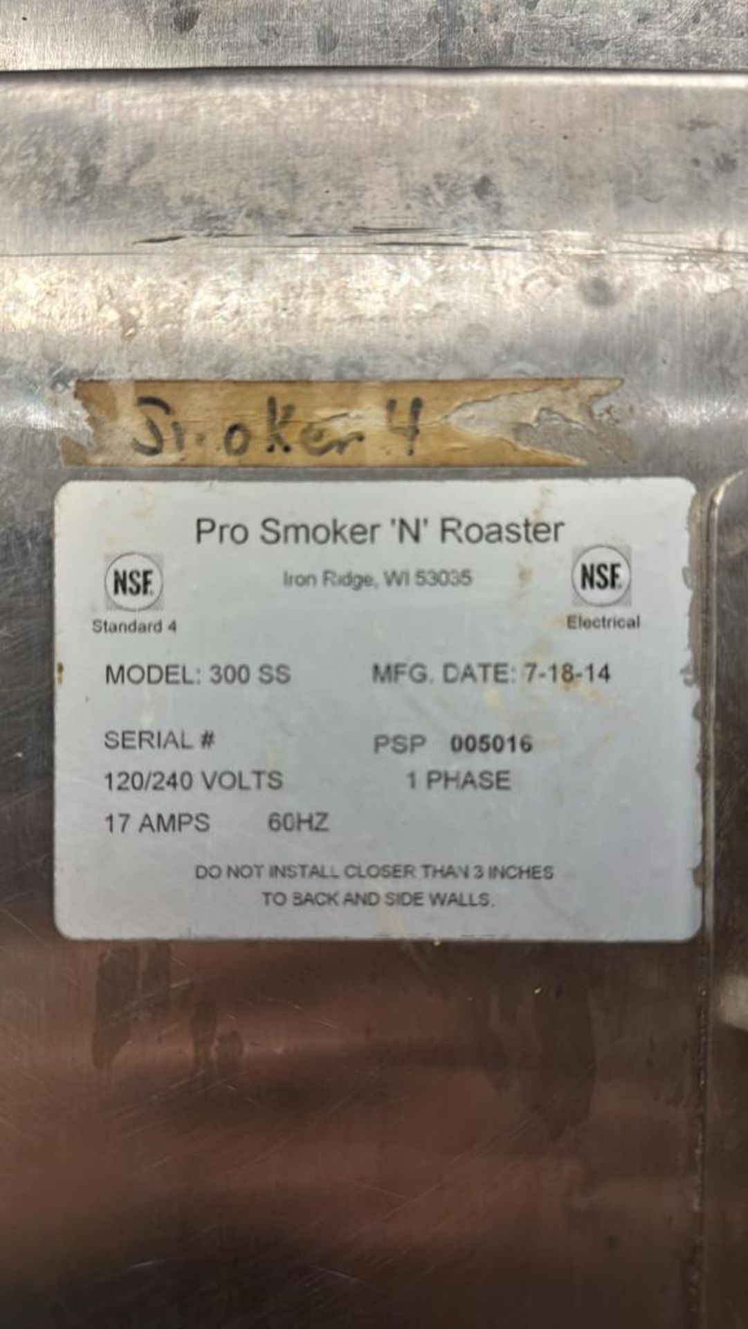 PRO SMOKER 300SS SMOKEHOUSE. 220V/1PH/60HZ. OD: 36″ x 41″ x 80″.