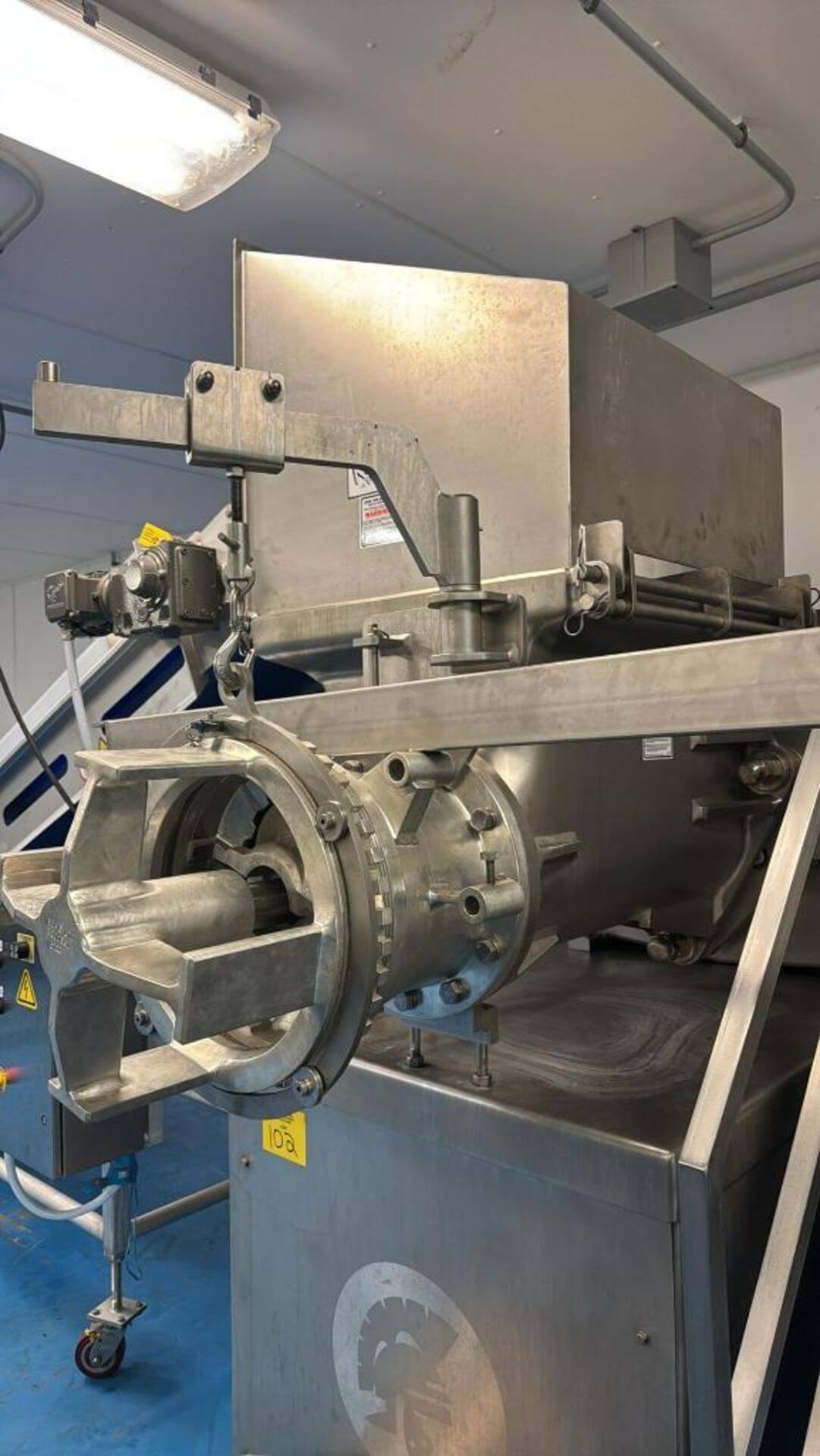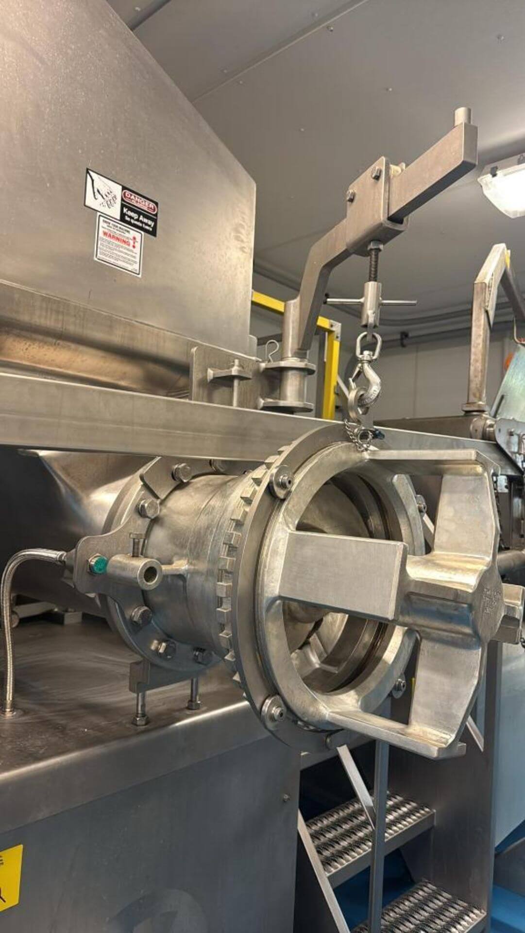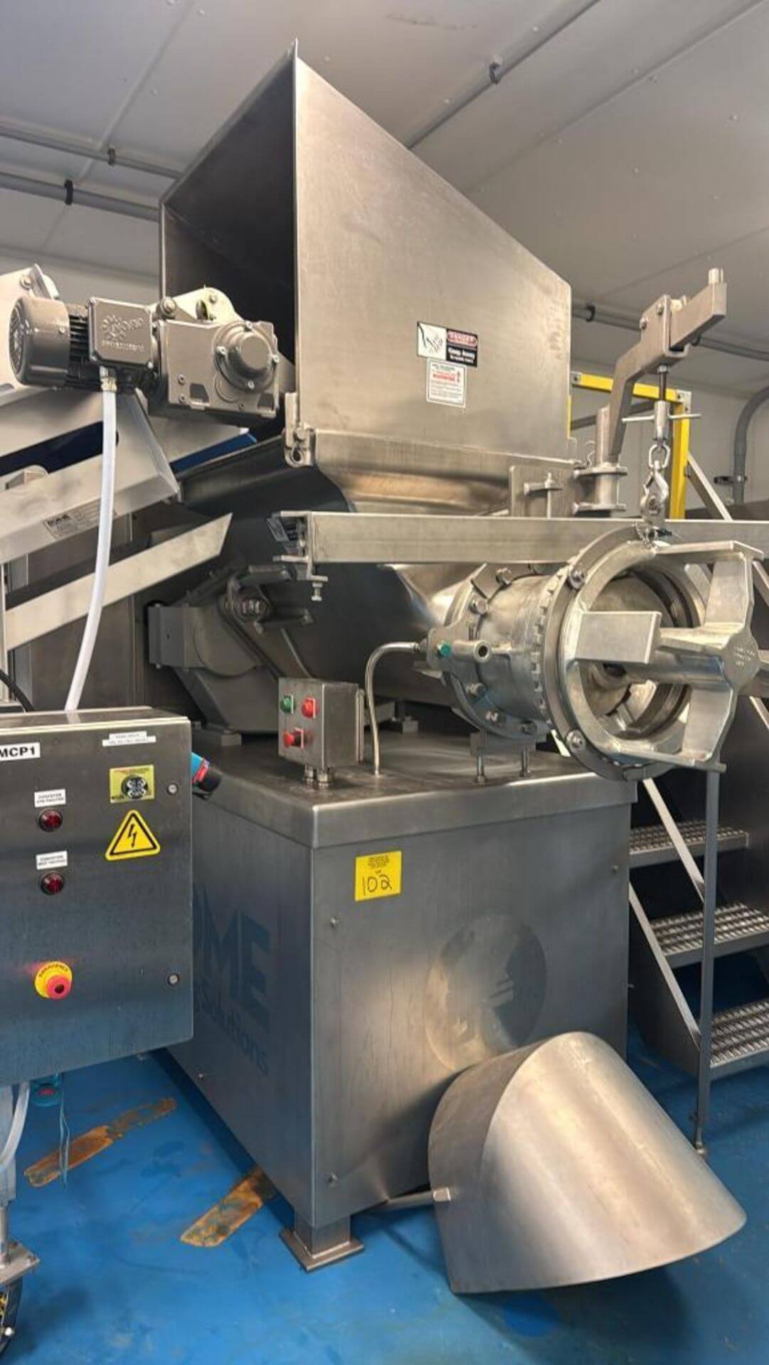 ROME MAXIMUS 16X12 FROZEN BLOCK GRINDER. Stainless steel hopper, tinned barrel, auger, and cross-bridged end ring. Stainless steel block guide and hopper extension, 150HP Motor, 16123-5HC Gearbox, 480V/3PH/60HZ. Includes Rome parts cart, auger puller, and soft start system.