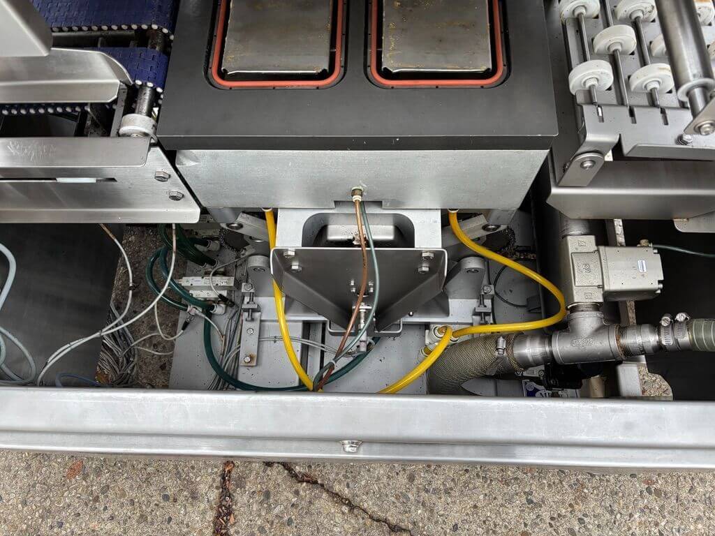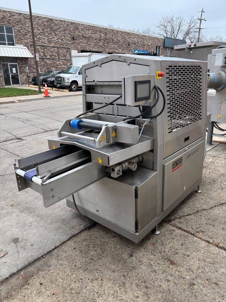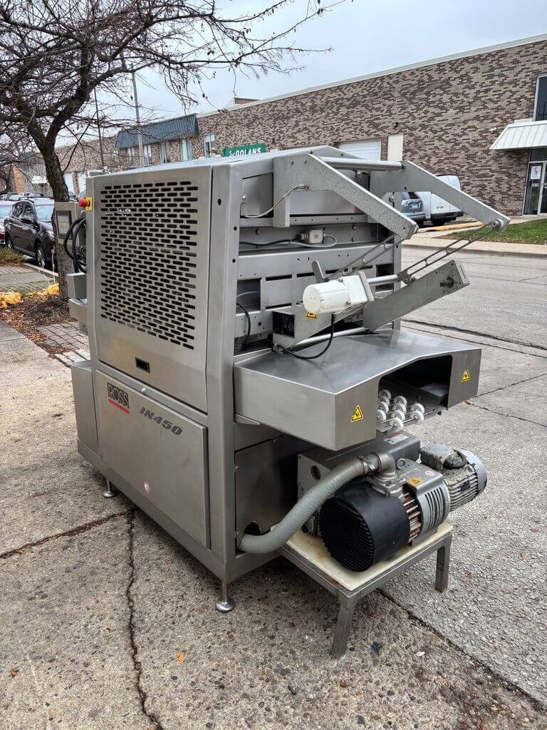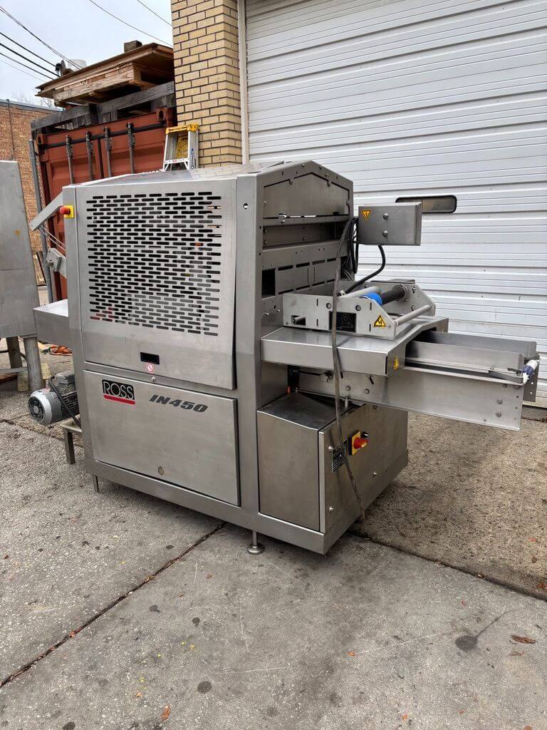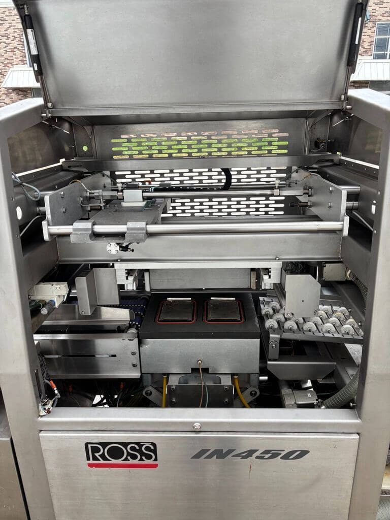 ROSS IN450 TRAY SEALER. All stainless steel construction, Touch screen PLC, 80mm maximum tray depth, infeed and exit conveyors, In feed Conveyor Length: 1.6 meters, Out feed conveyor length: 1 meter, Busch RA 155 Vacuum Pump, 230V/3PH/60HZ. 20 Amps.