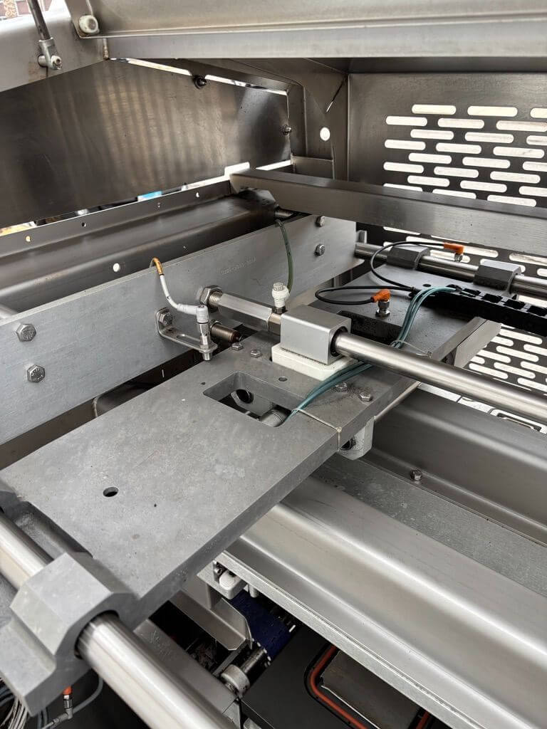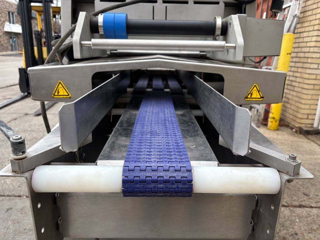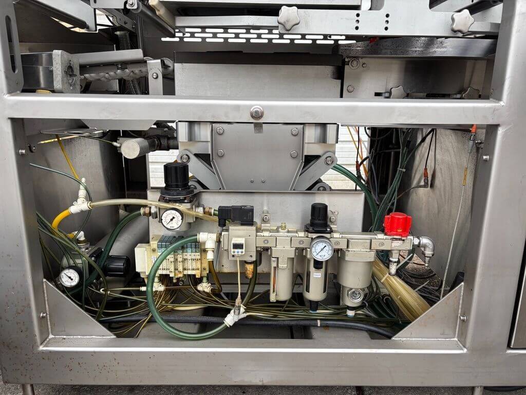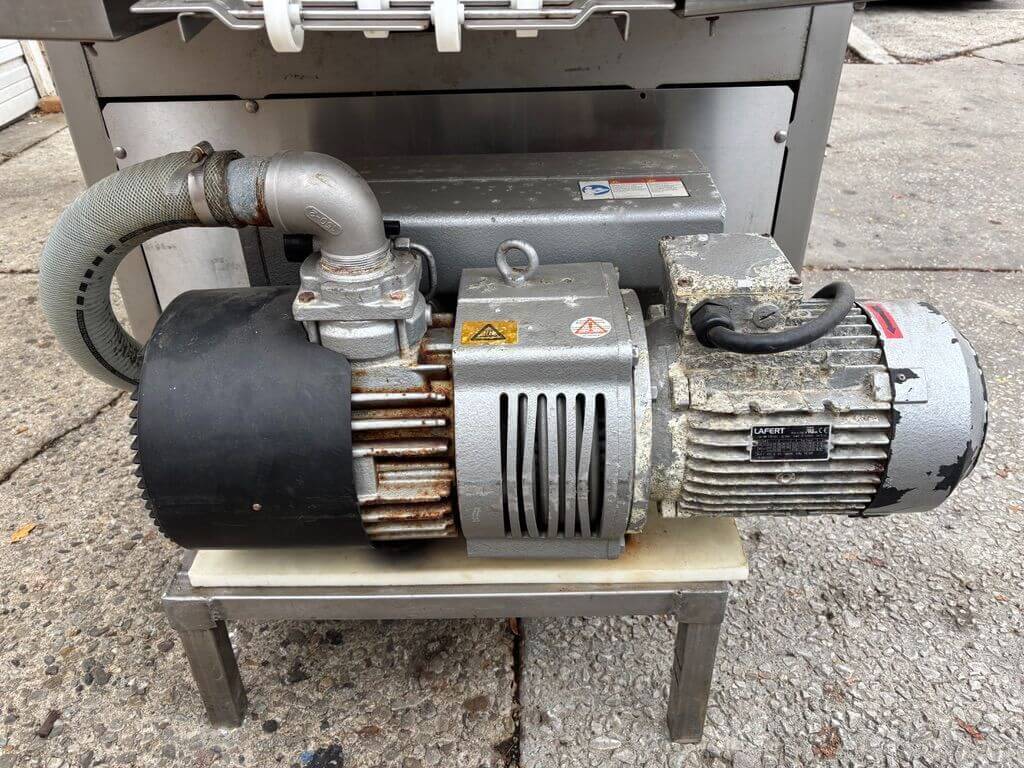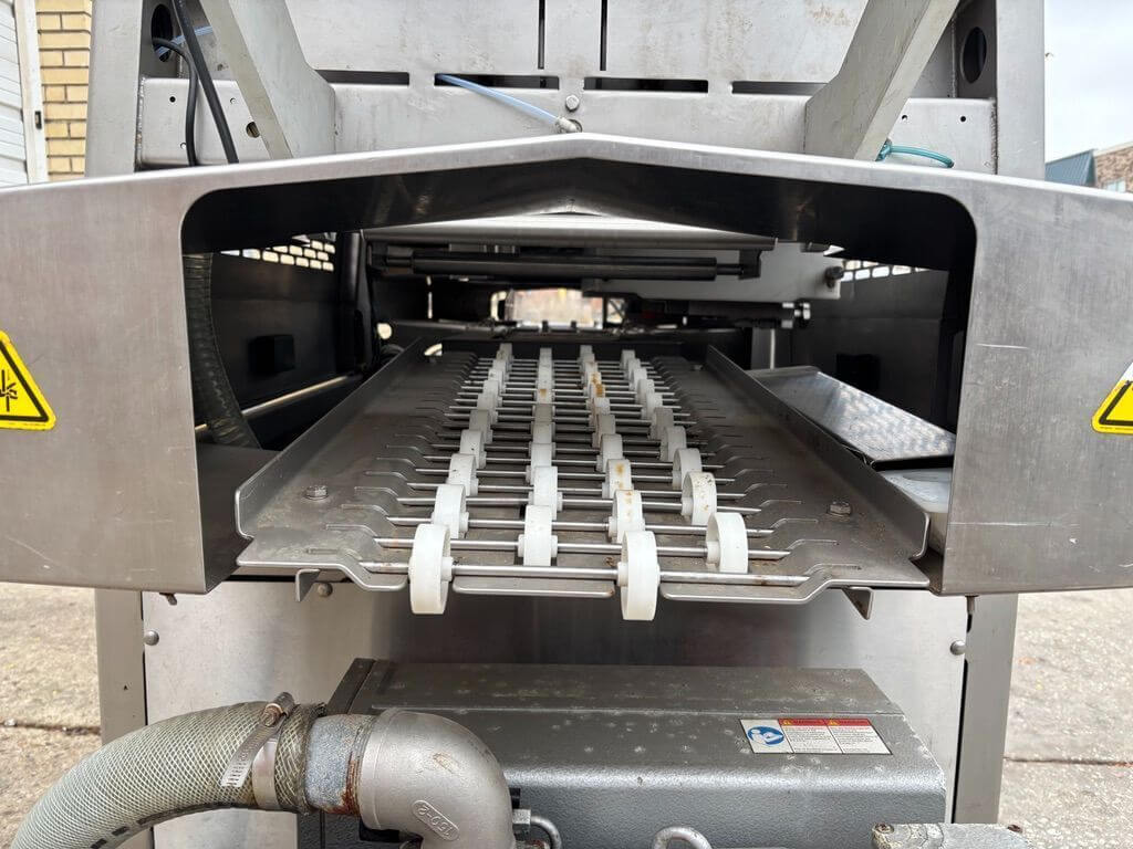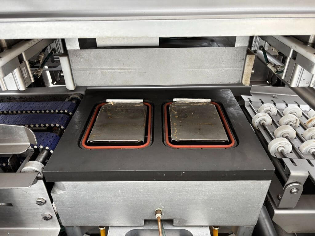 ROSS IN450 TRAY SEALER. All stainless steel construction, Touch screen PLC, 80mm maximum tray depth, infeed and exit conveyors, In feed Conveyor Length: 1.6 meters, Out feed conveyor length: 1 meter, Busch RA 155 Vacuum Pump, 230V/3PH/60HZ. 20 Amps.