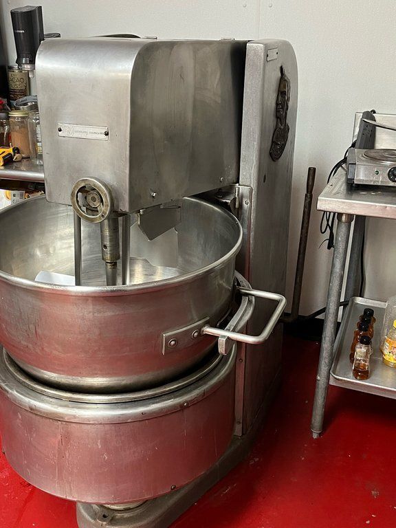 SAVAGE BROS S-48 Fire Mixer. All stainless steel construction, Kettle diameter: 24″, Agitation: Anchor with spring-loaded scrapers, Agitator speed: 30 to 60 RPM, Hydraulic lift mechanism, Variable heat control, Electrically heated: 12,000 W, Push button controls, Motor: 1 HP, 220V/3PH/60HZ.
