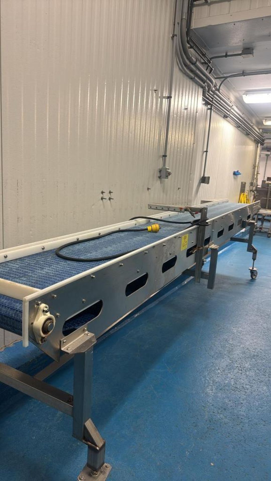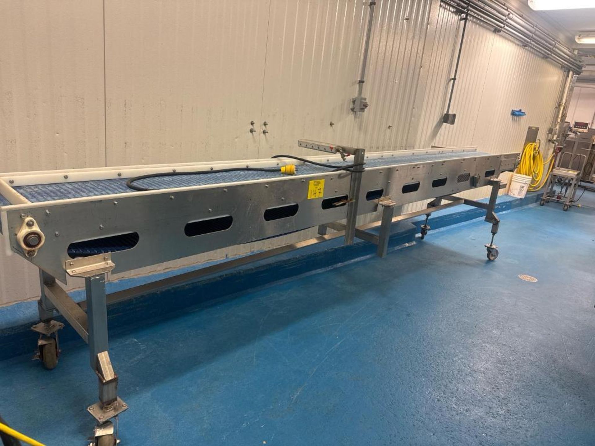 STAINLESS STEEL CONVEYOR. 187″ x 17″ x 42″ with Super Air Knife attachment.