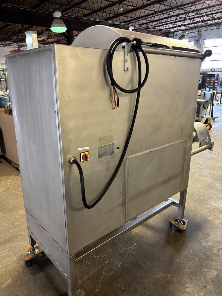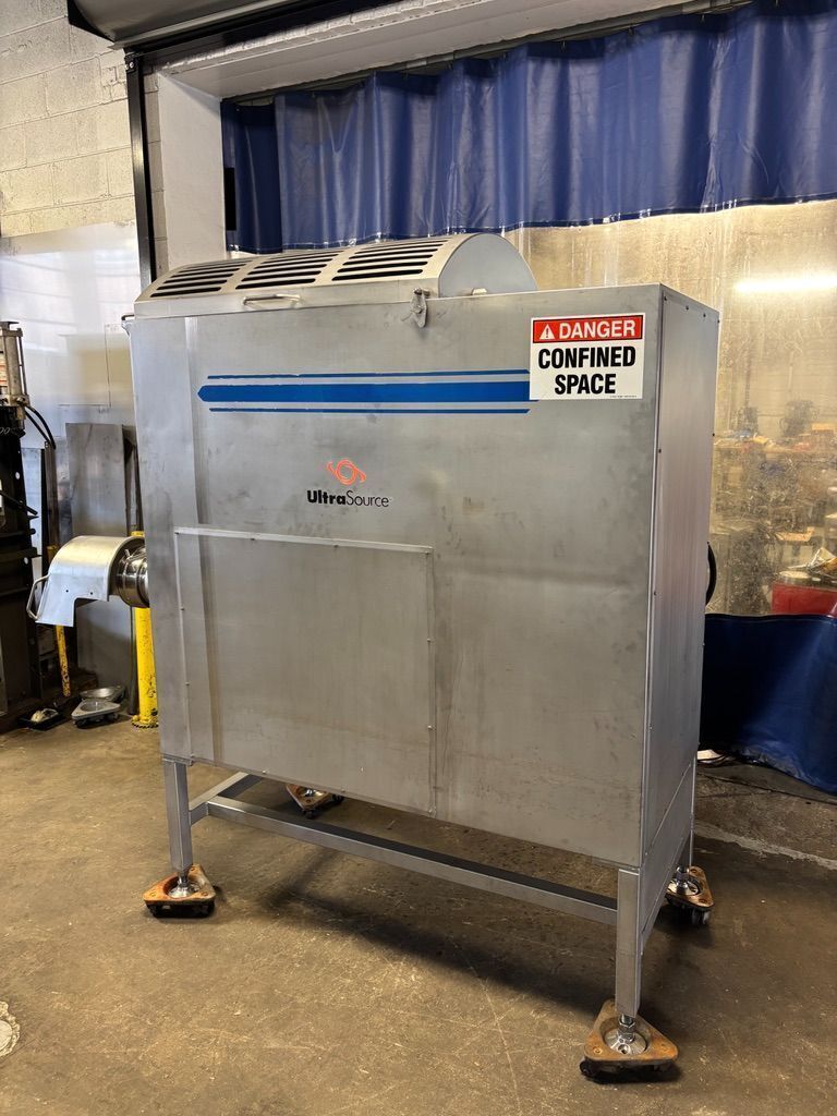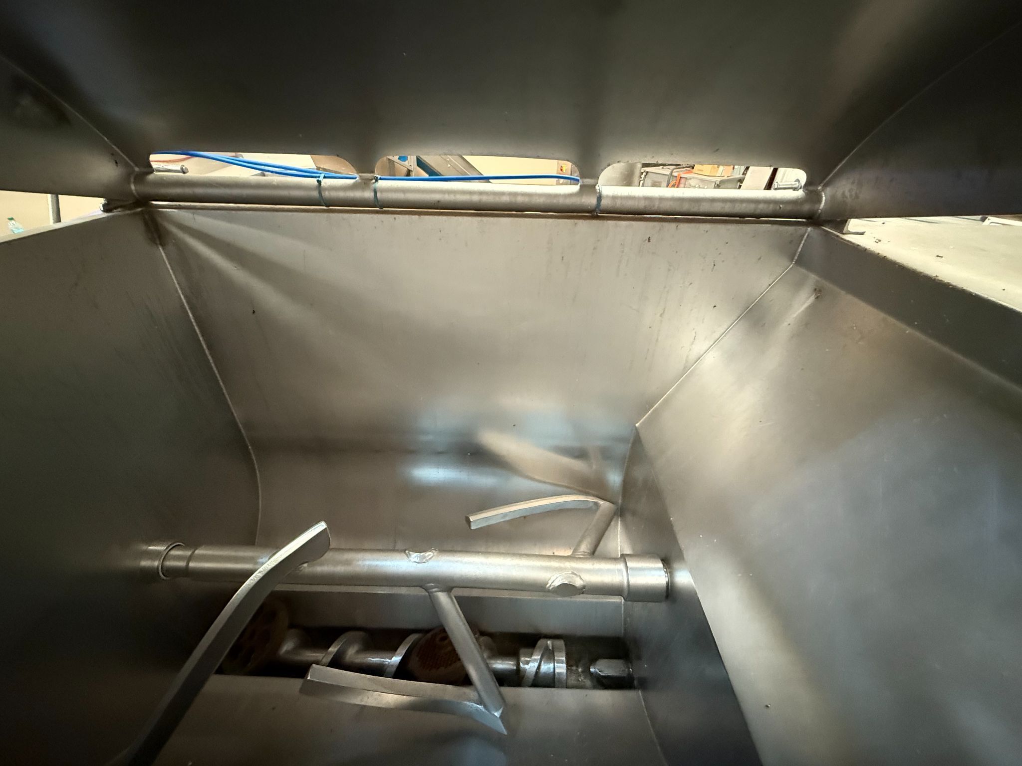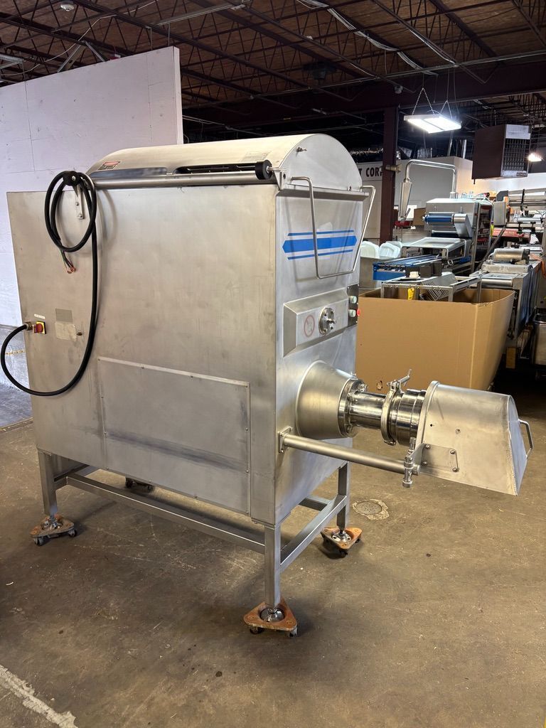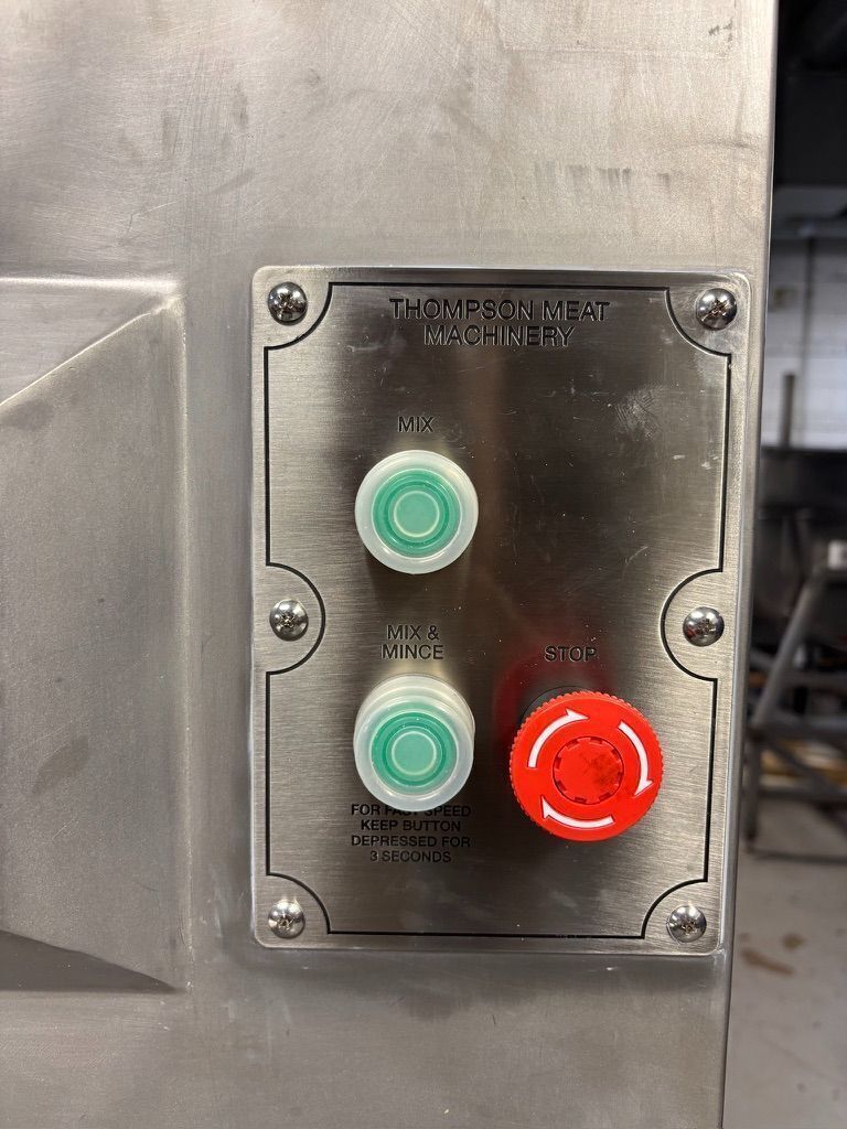 THOMPSON 4200 F MIXER/GRINDER. All stainless steel construction, 160mm head size 350 liter hopper, 441 lbs mixing capacity, up to 6,600 lbs/hr, 5 1/2 hp mix motor, 20 HP grind motor, 220V/3PH/60HZ.