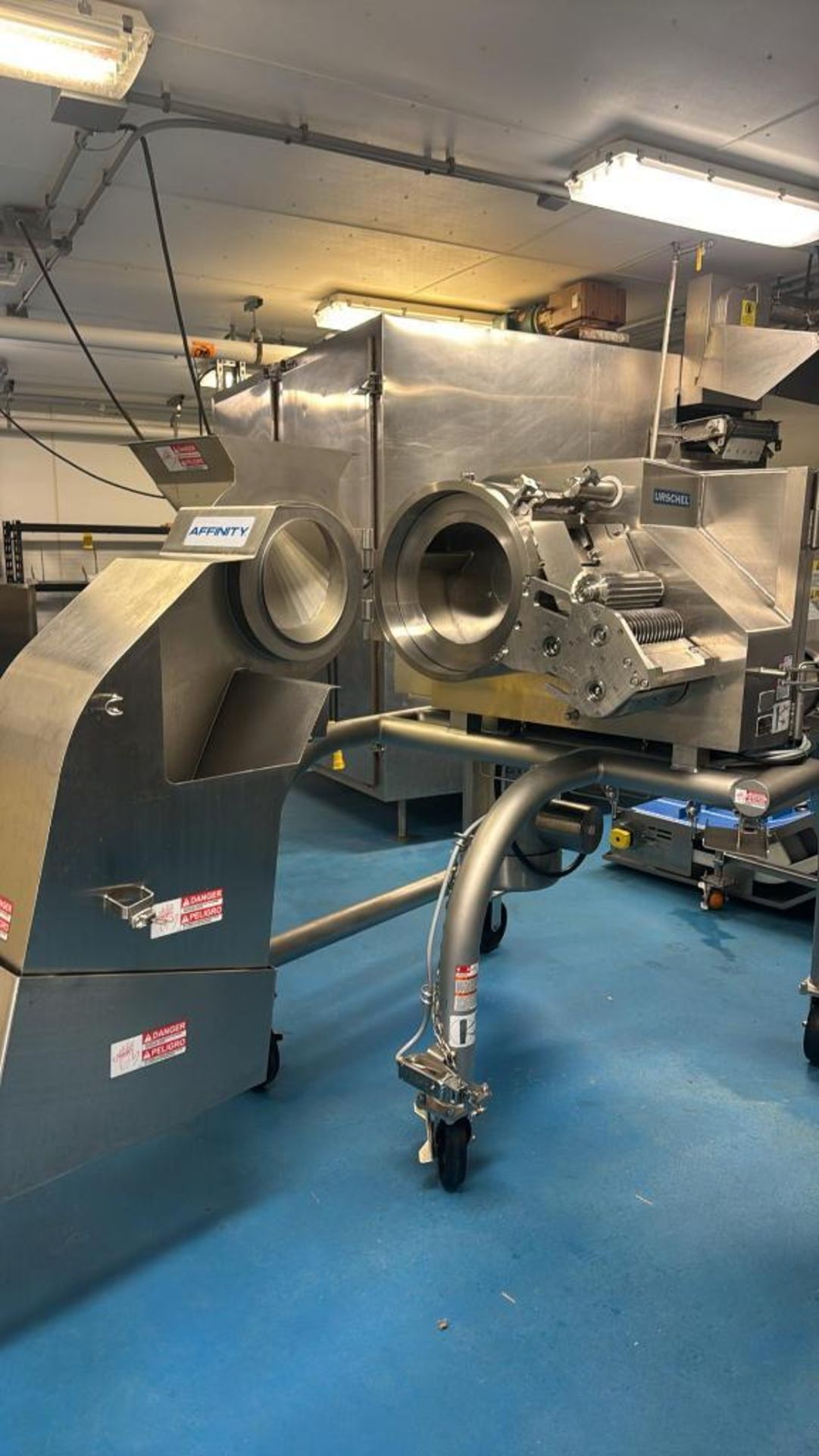 URSCHEL AFFINITY DICER. Currently set up for 3/4″ x 3/4″ dice, 460V/3PH/60HZ. OD: 58″ x 64″ x 72″.