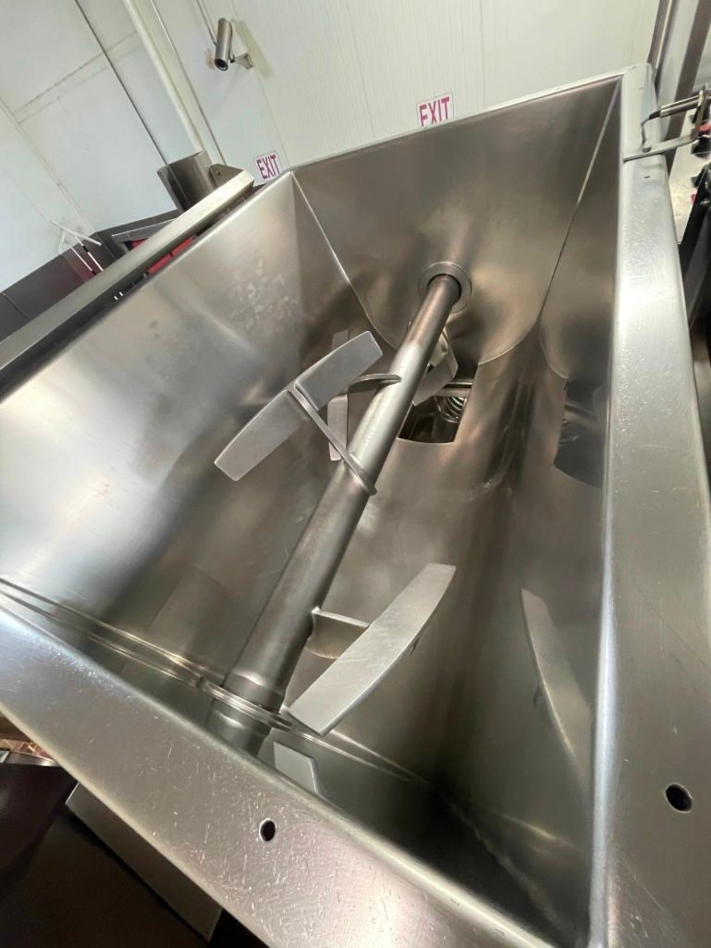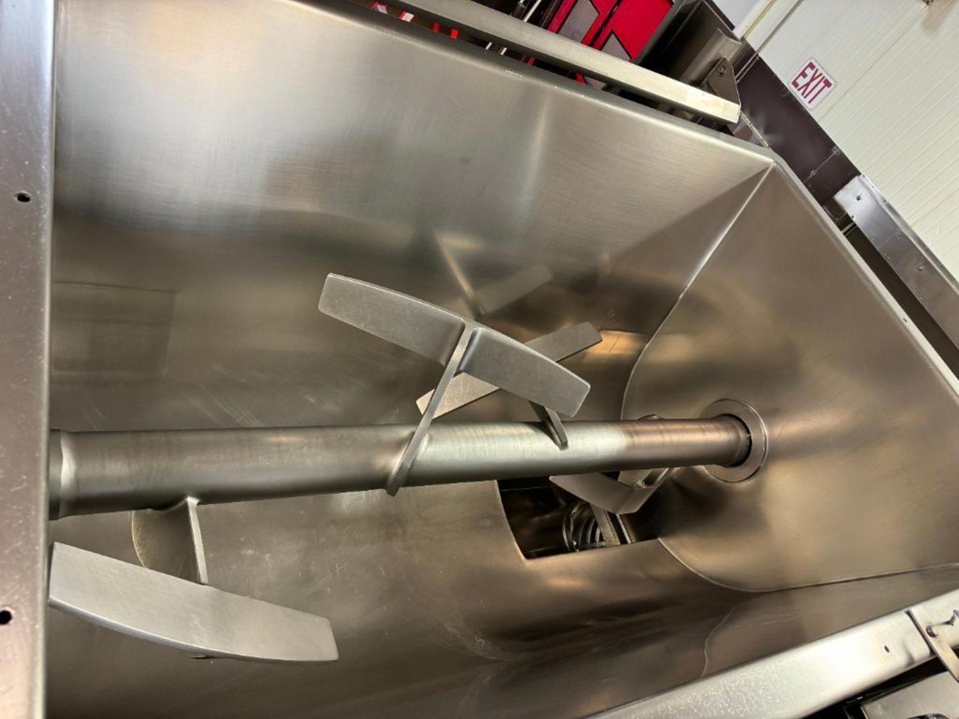 The Weiler 1109 SFG Self-Feeding Grinder is a high-capacity stainless steel system built for demanding further-processing applications, equipped with a heavy-duty 100 HP main motor, a large 50 cubic foot (1677 liter) hopper, and Weiler’s 5 HP self-feeding paddle system that delivers consistent product flow and superior texture. This model features a robust feed screw with drive lugs for maximum torque, spring-loaded knife holders with self-cleaning blade inserts for cooler, cleaner cutting, and an 11-inch plate for efficient high-volume grinding. The 1109 SFG is ideal for processors requiring premium performance and throughput in beef, pork, poultry, and other protein applications.