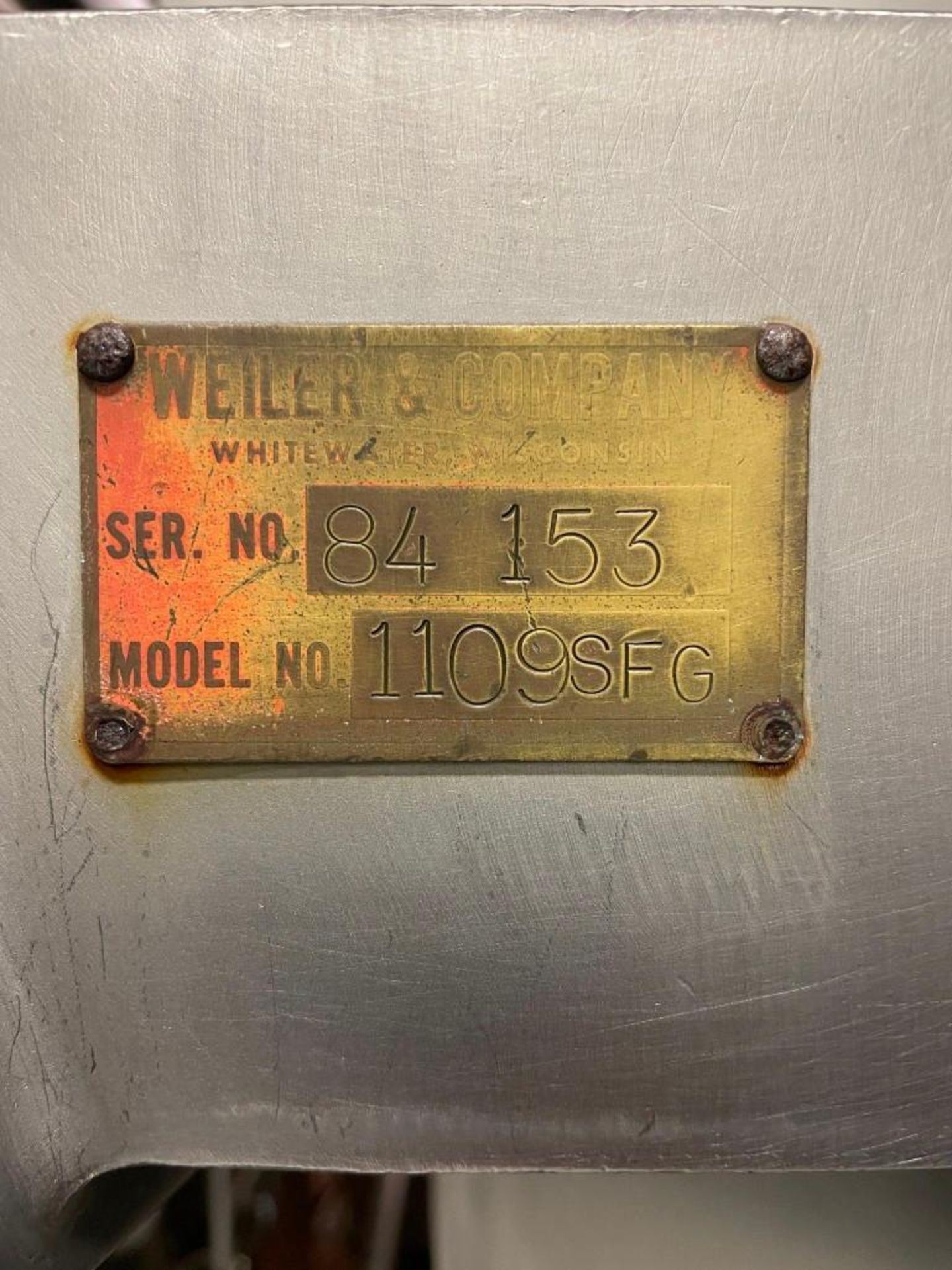 WEILER 1109 SFG GRINDER with FP1000 auger puller, rated maximum capacity up to 18,000lbs per hour, stainless steel construction.