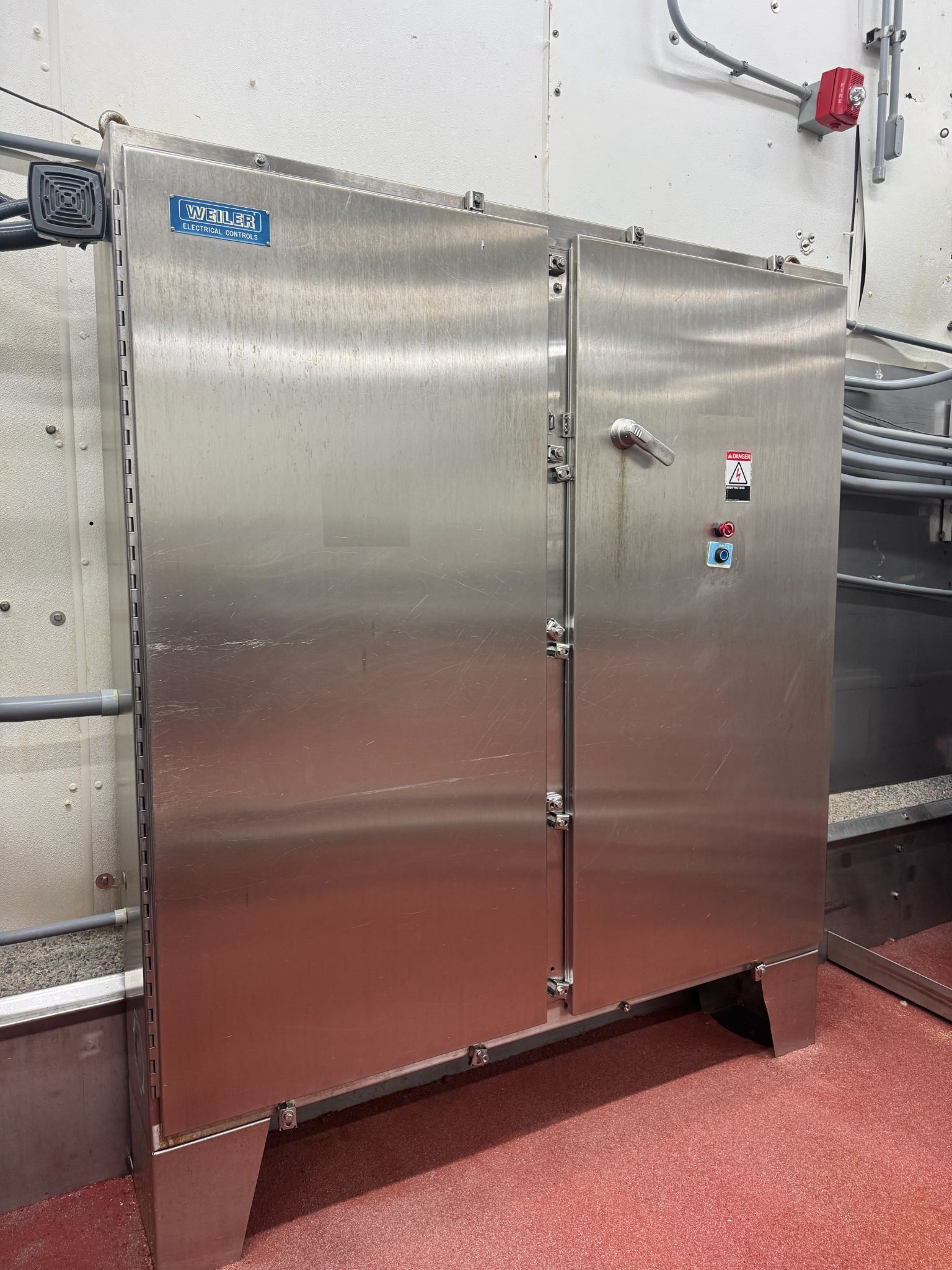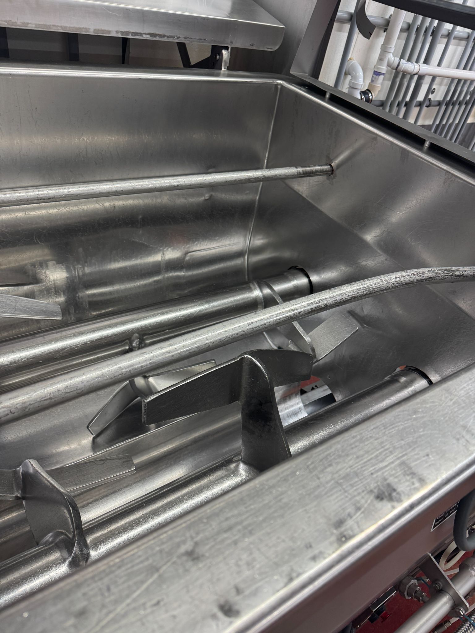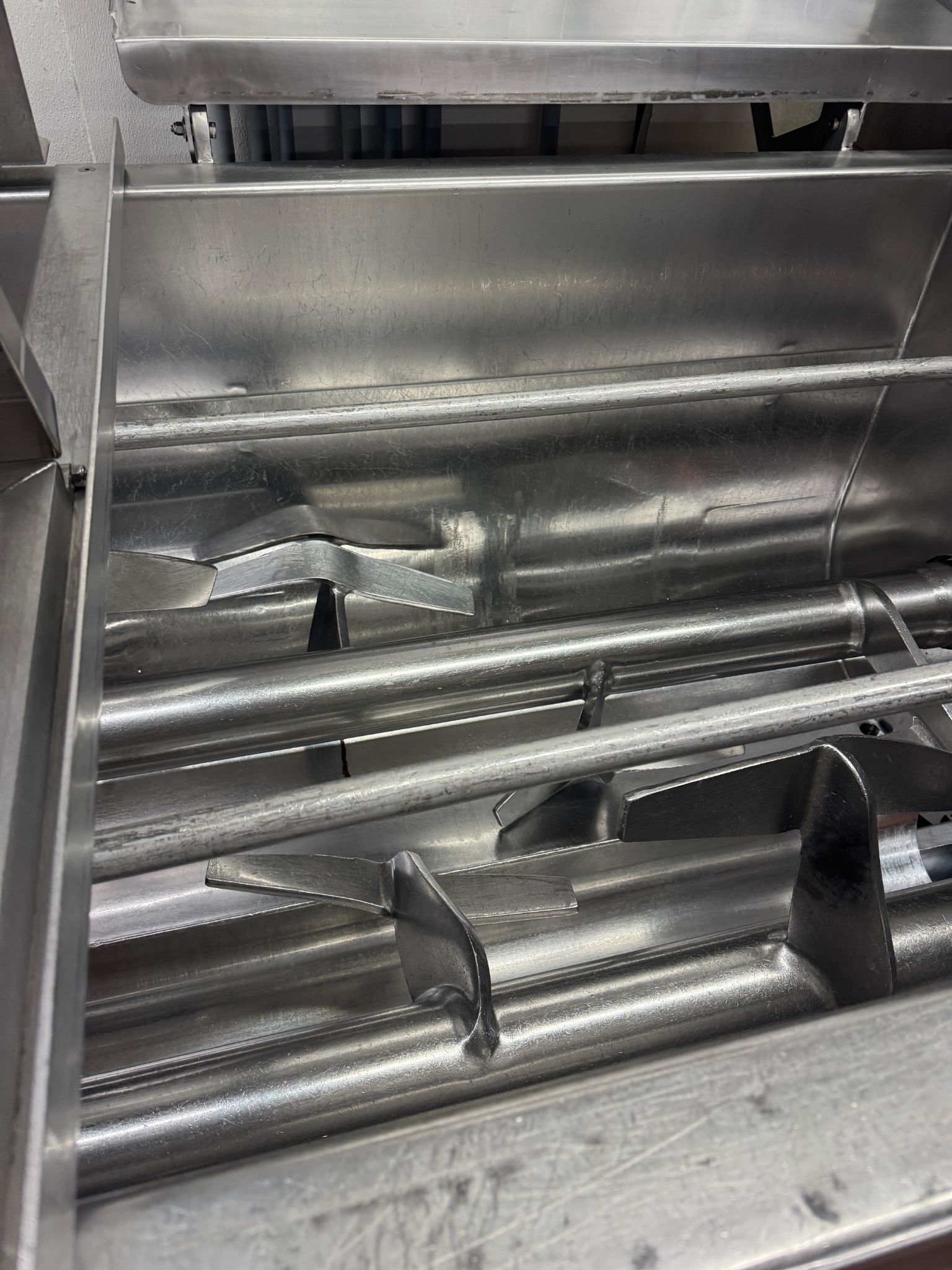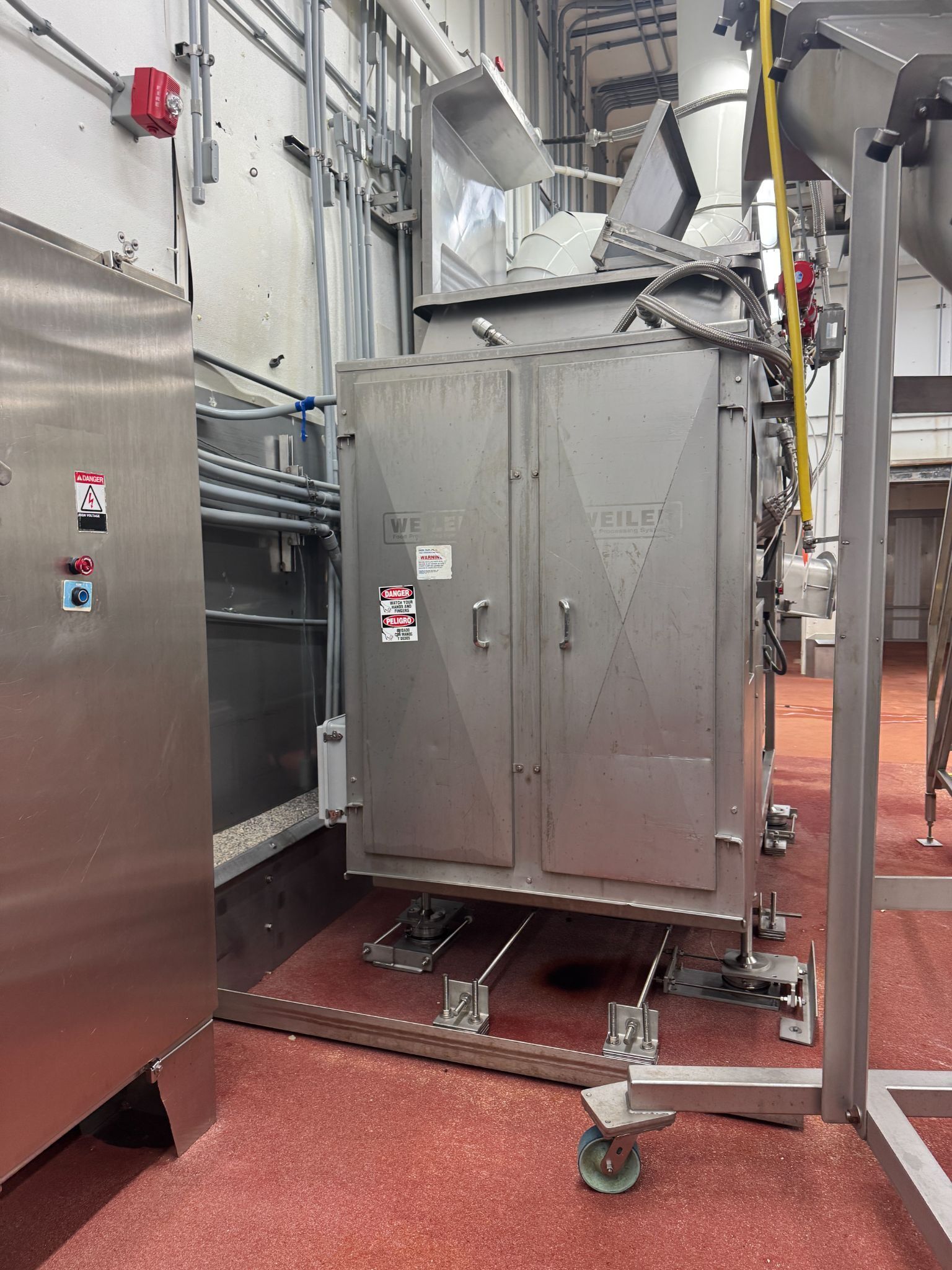 Weiler MG1109 Mixer Grinder with C02, 11″ diameter grind plate, 3,000lb capacity, newly tinned barrel, auger & Ring, 75 HP grind motor, 10 HP mix motor, 7.5HP discharge motor, 59 Cu. Ft. capacity, Includes auger puller and (1) standard plate setup, and all corresponding tools, 480V/3PH/60HZ, safety grate. This machine can be offered as-is or refurbished.