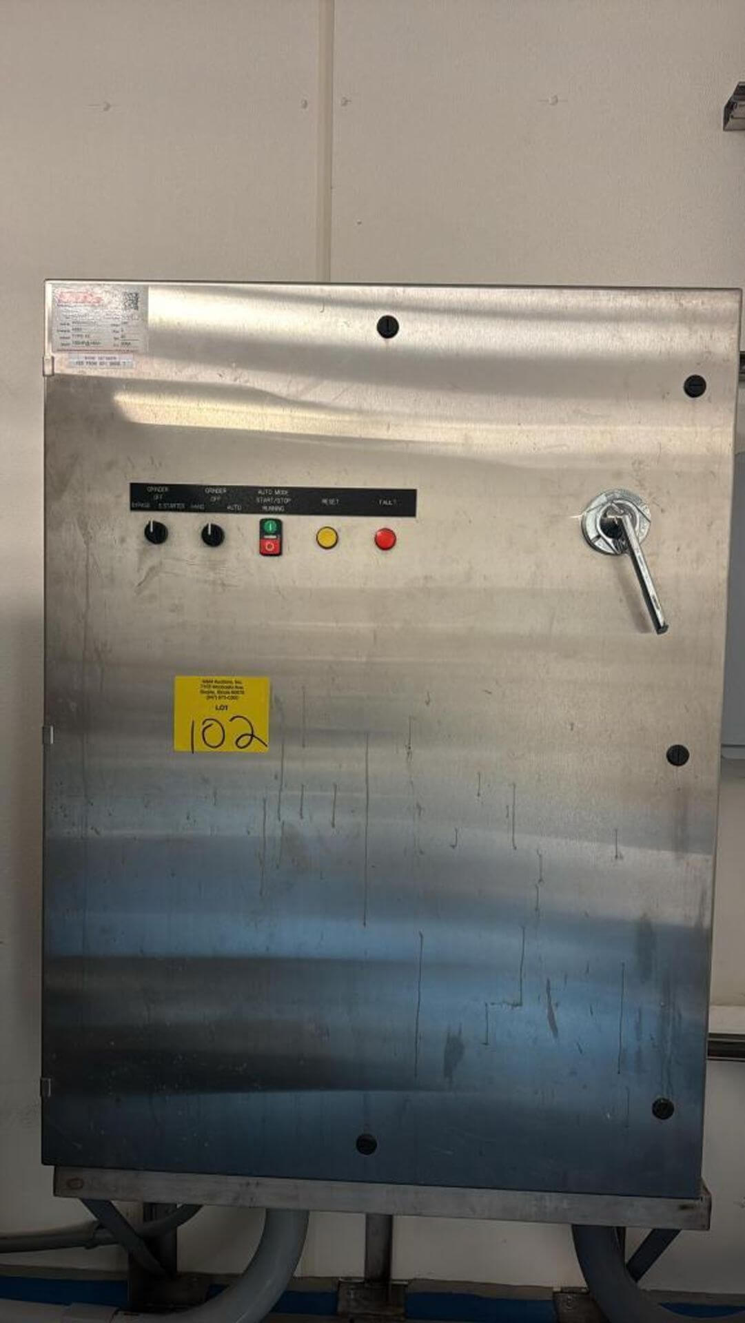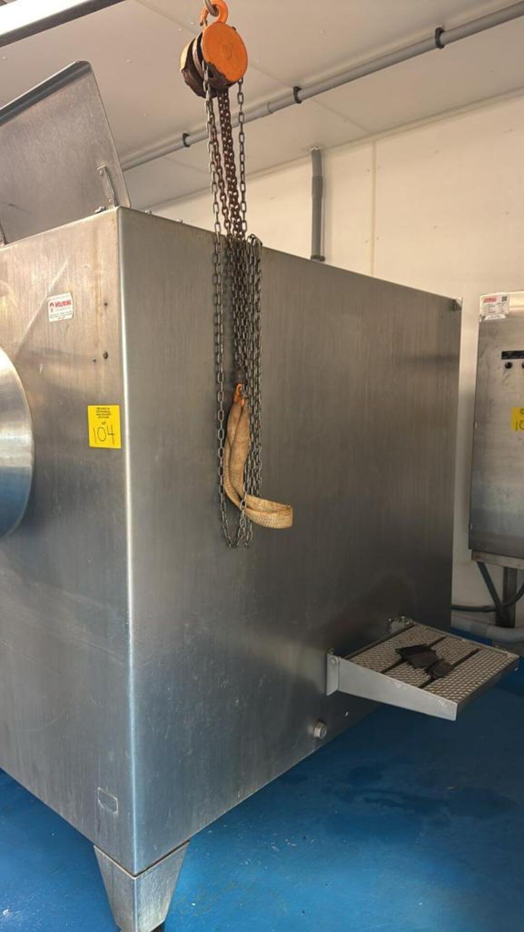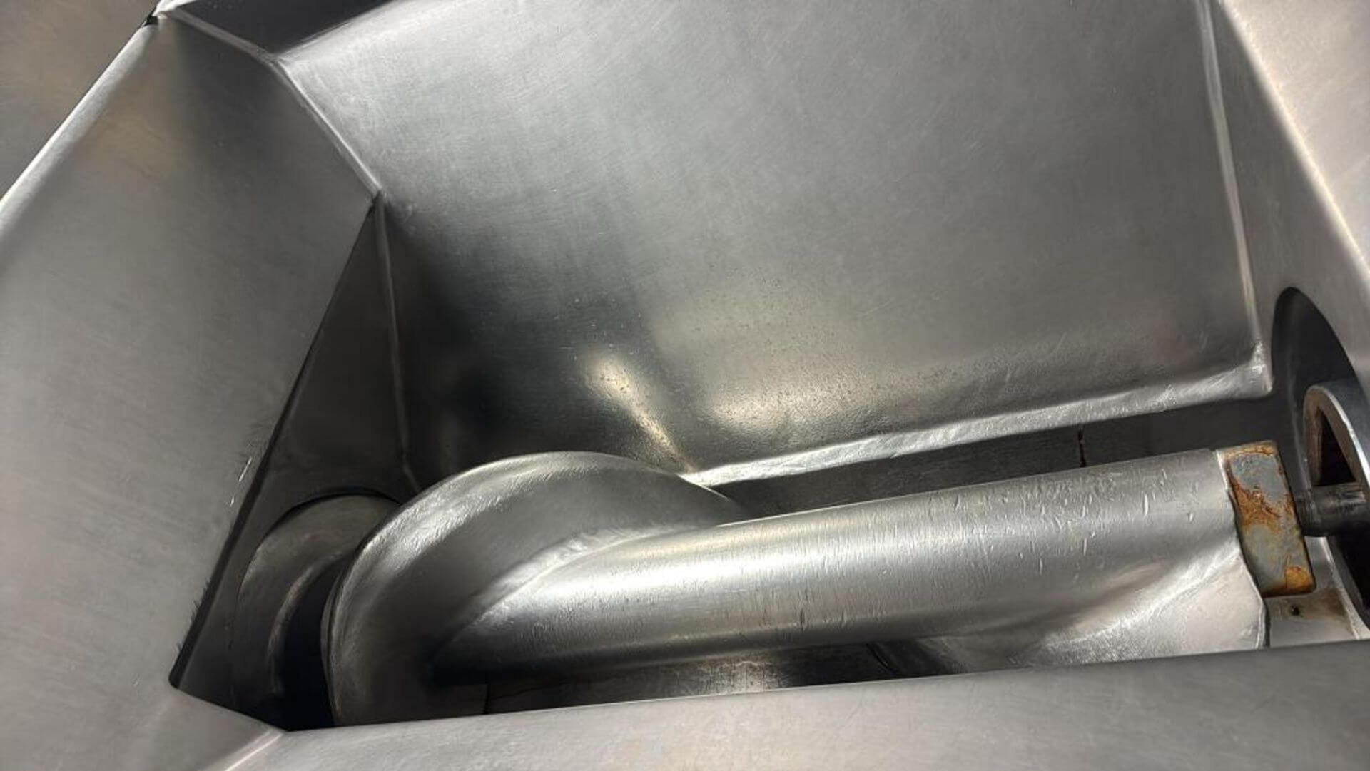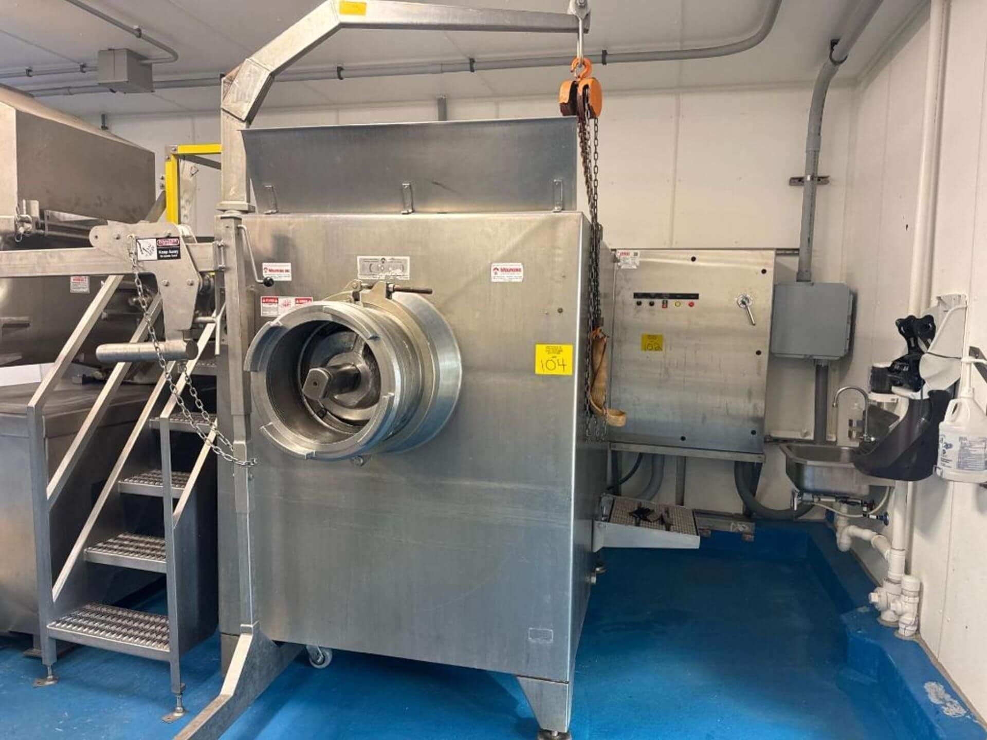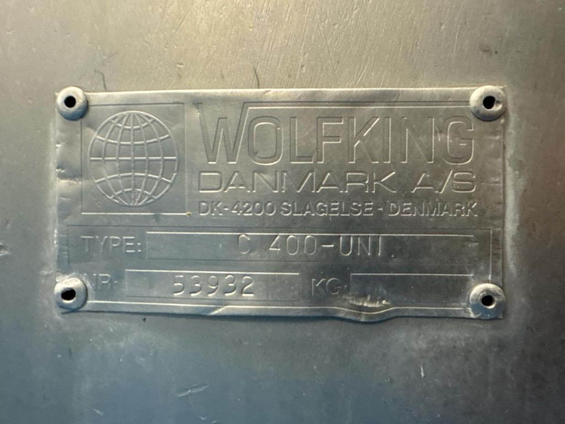 WOLFKING C400 FROZEN BLOCK GRINDER. All stainless steel construction, including auger, barrel and end ring, Includes parts cart with additional plates and knives.