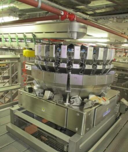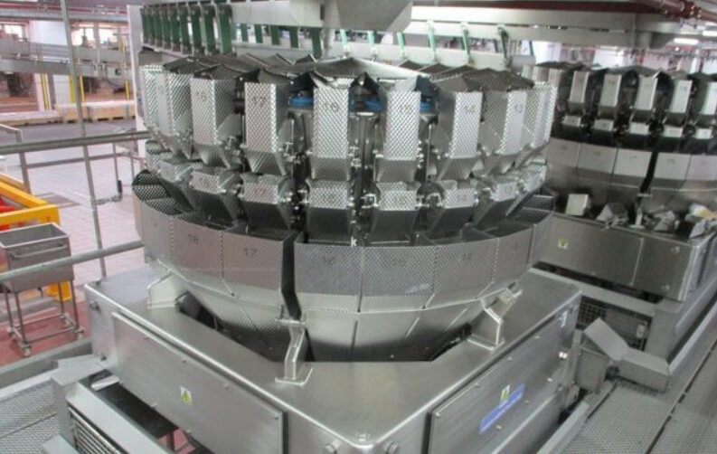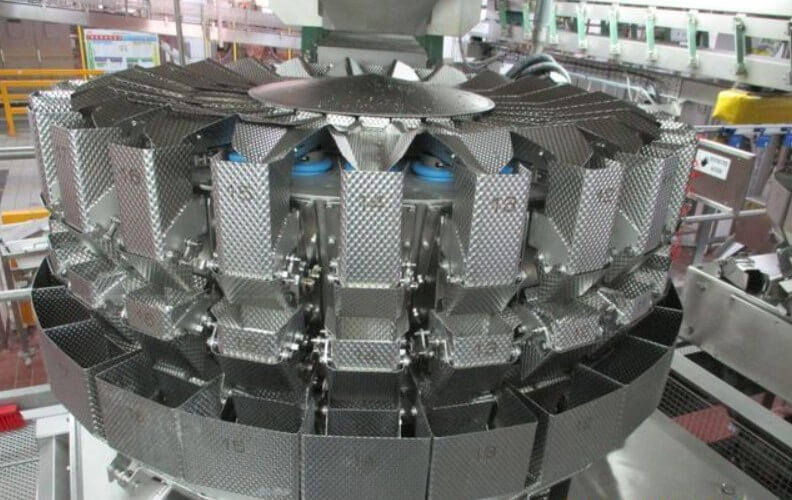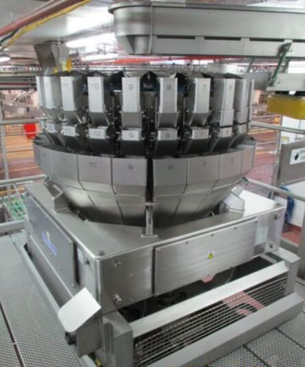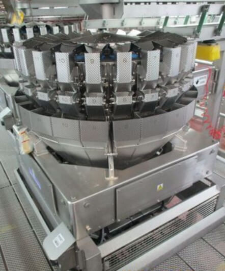 YAMATO ADW-0-0124M 24 HEAD DIMPLED BUCKET SCALE. All stainless steel construction, Weighing Heads: 24 dimpled stainless steel buckets (1 liter each), Weight Range: 4 grams – 500 grams, Booster buckets for optimized product flow, Quad discharge system for increased efficiency, 220V/1PH/60HZ.