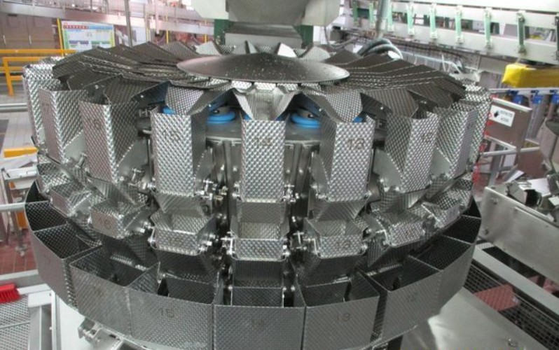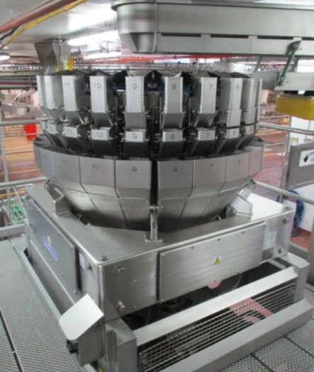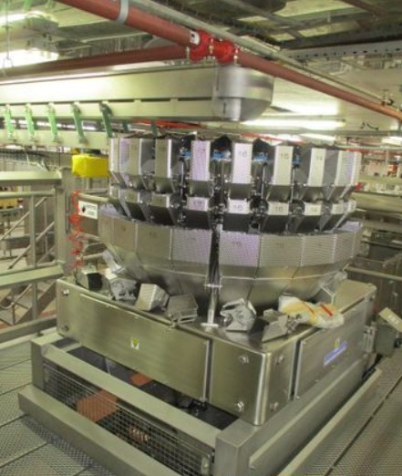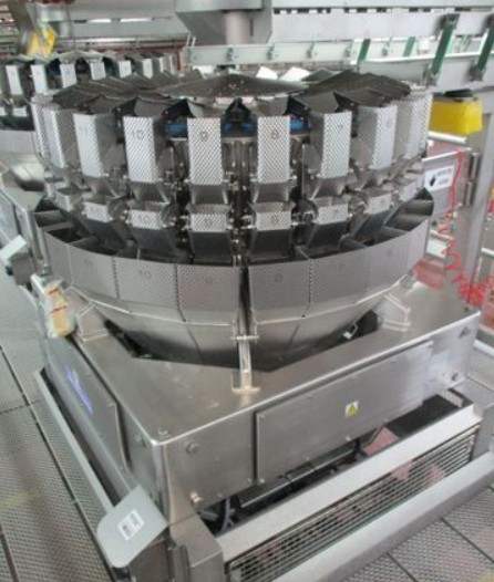 YAMATO ADW-0-0124M 24 Head Dimpled Bucket Scale. All stainless steel construction, Weighing Heads: 24 dimpled stainless steel buckets (1 liter each), Weight Range: 4 grams – 500 grams, Booster buckets for optimized product flow, Quad discharge system for increased efficiency, 220V/1PH/60HZ.
