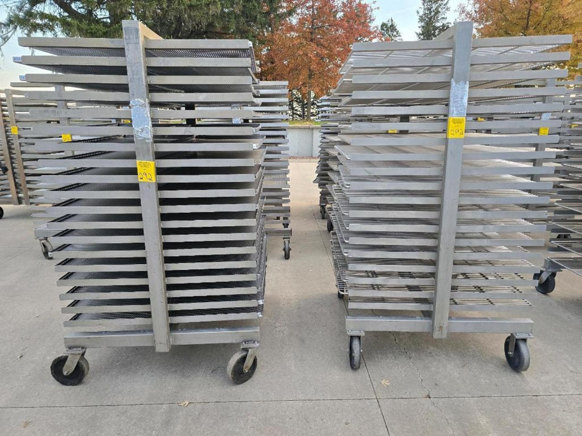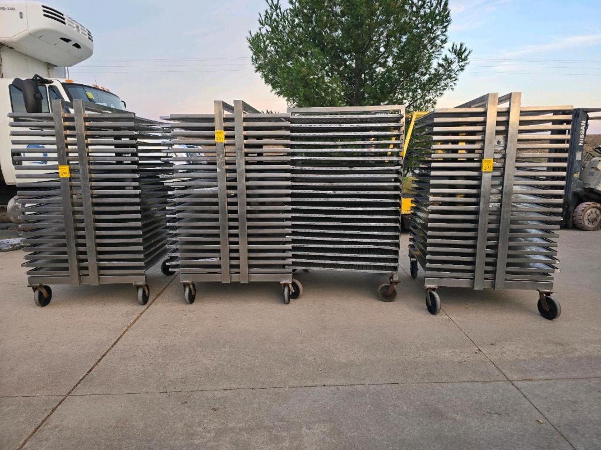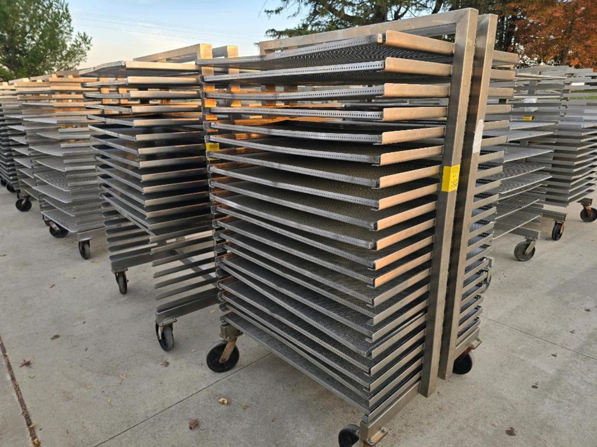 NESTING SMOKEHOUSE TRUCKS. OD: 40.5″ x 44″ x 78″ with 20 shelves s...