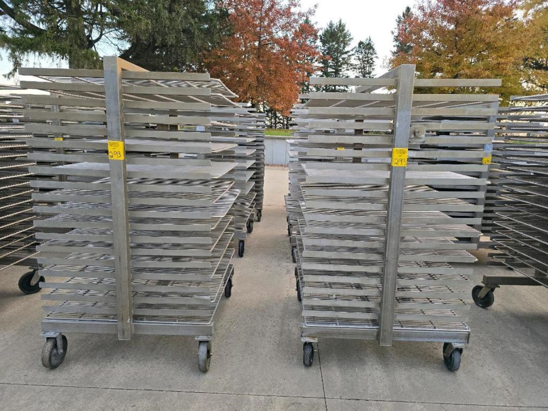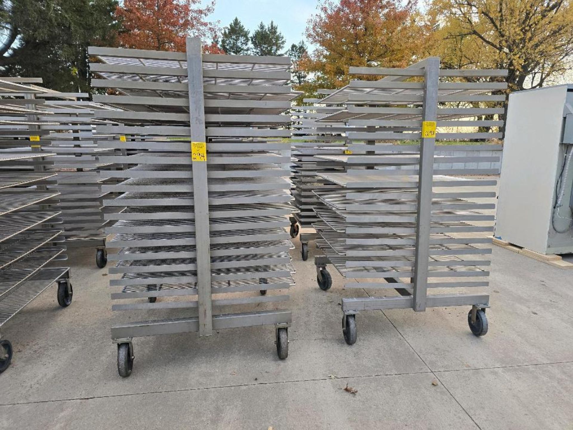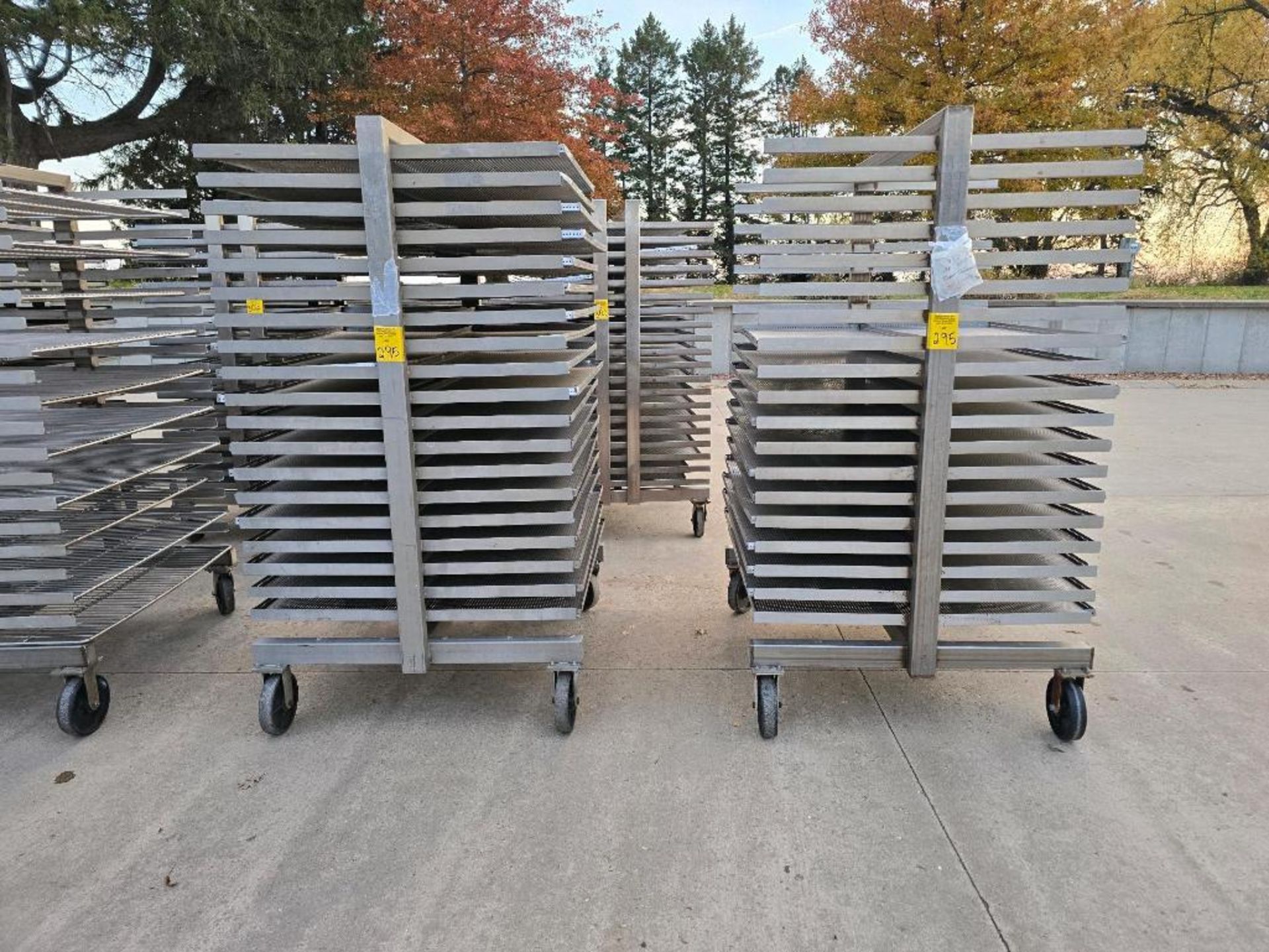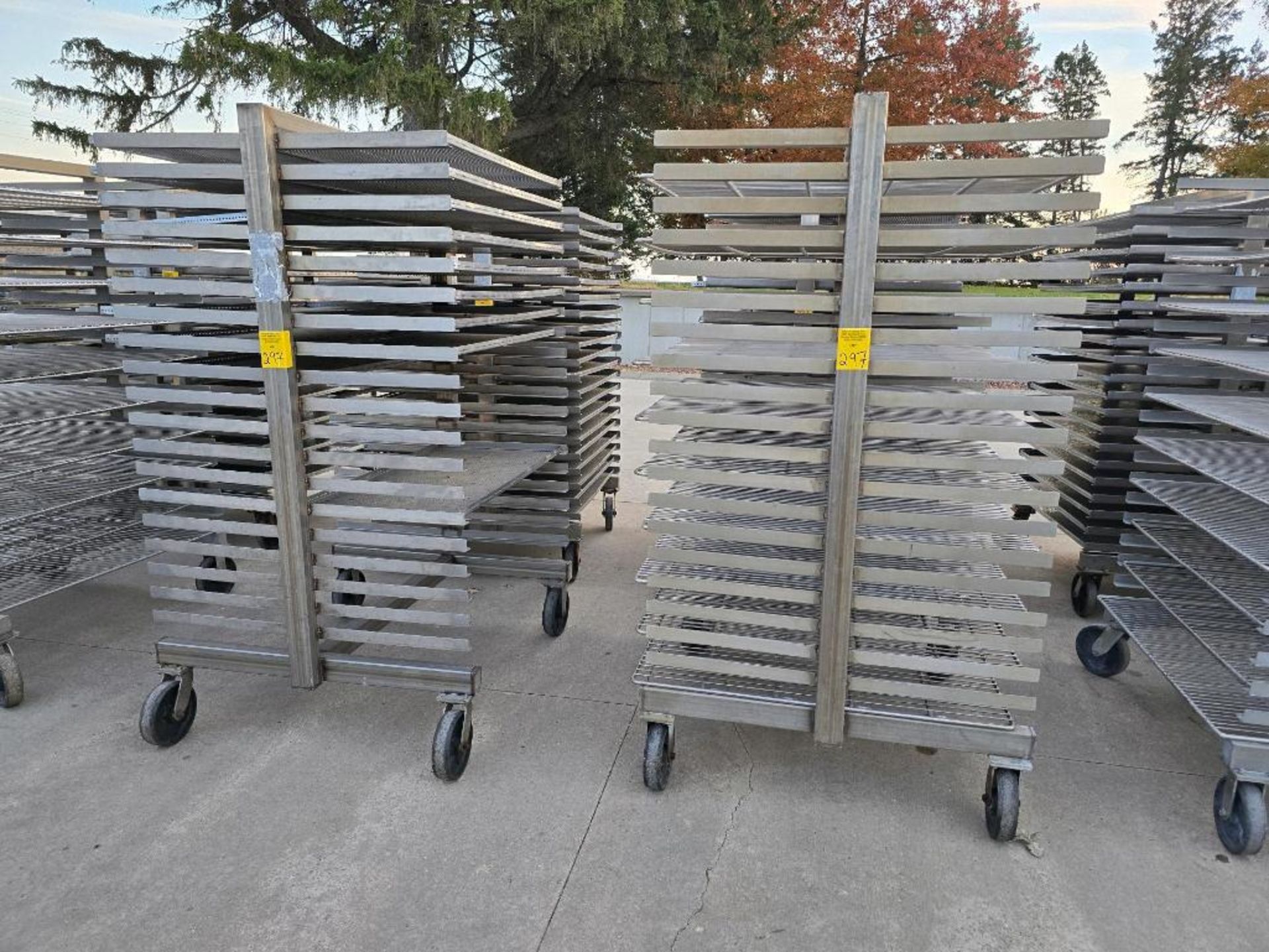 NESTING SMOKEHOUSE TRUCKS. OD: 40.5″ x 44″ x 78″ with 20 shelves s...