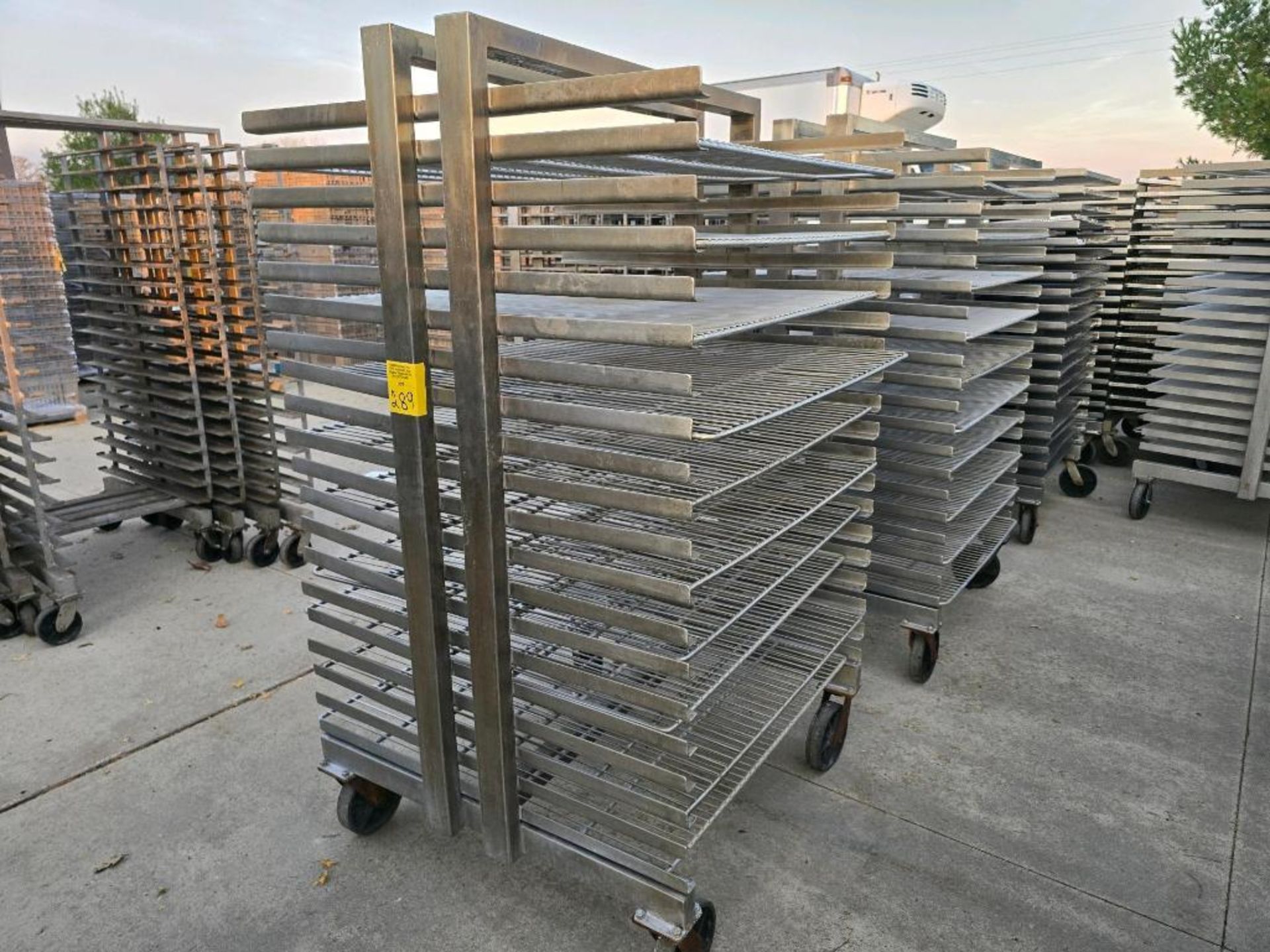 STAINLESS STEEL SMOKEHOUSE TRUCKS. OD: 42″ x 47″ x 75.5″ with 19 s...