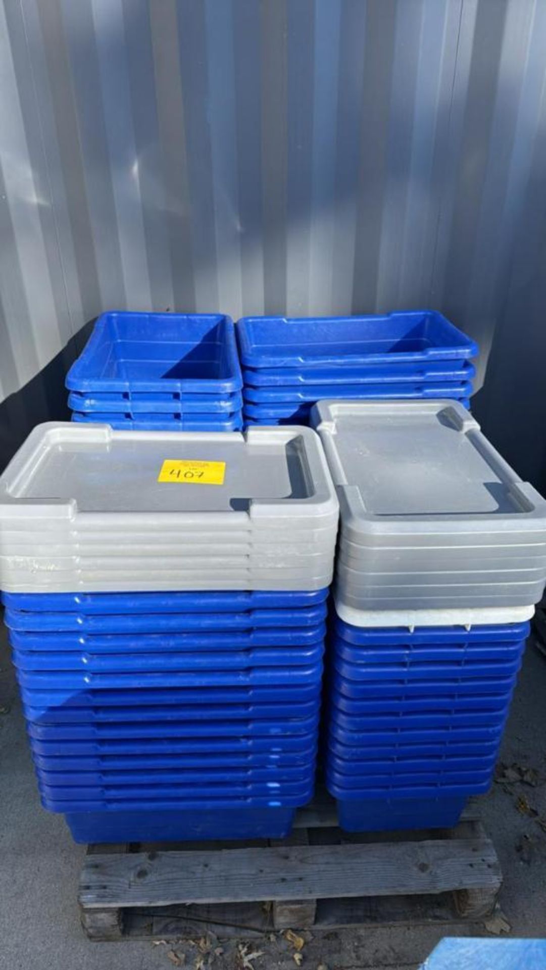 (65) BLUE MEAT LUGS WITH (12) GRAY LIDS. The item will be available for sale in our ...
