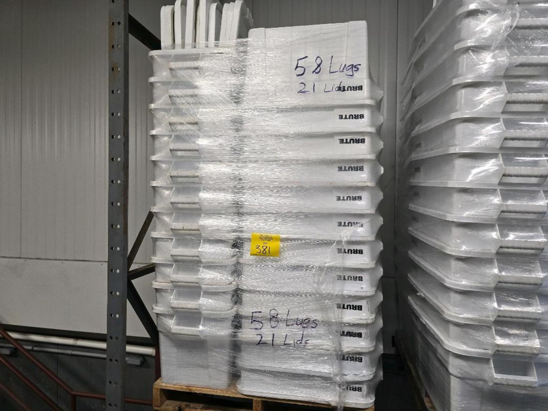 (58)BRUTE POLY STORAGE BINS WITH (21) LIDS. The item will be available for sale in o...