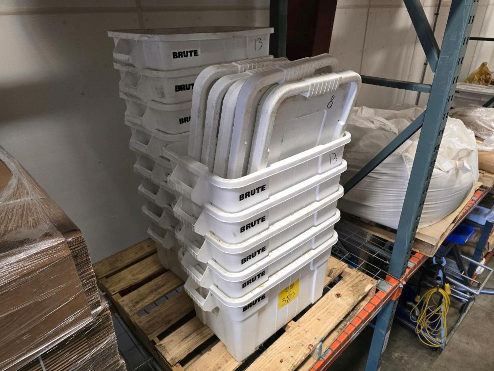 (13) BRUTE POLY STORAGE BINS WITH (8) LIDS. The item will be available for sale in o...